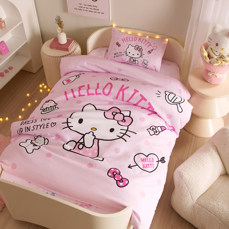 蘭菲 2023新款幼儿园全棉印染三丽鸥全棉大版卡通三件套 甜心kt
