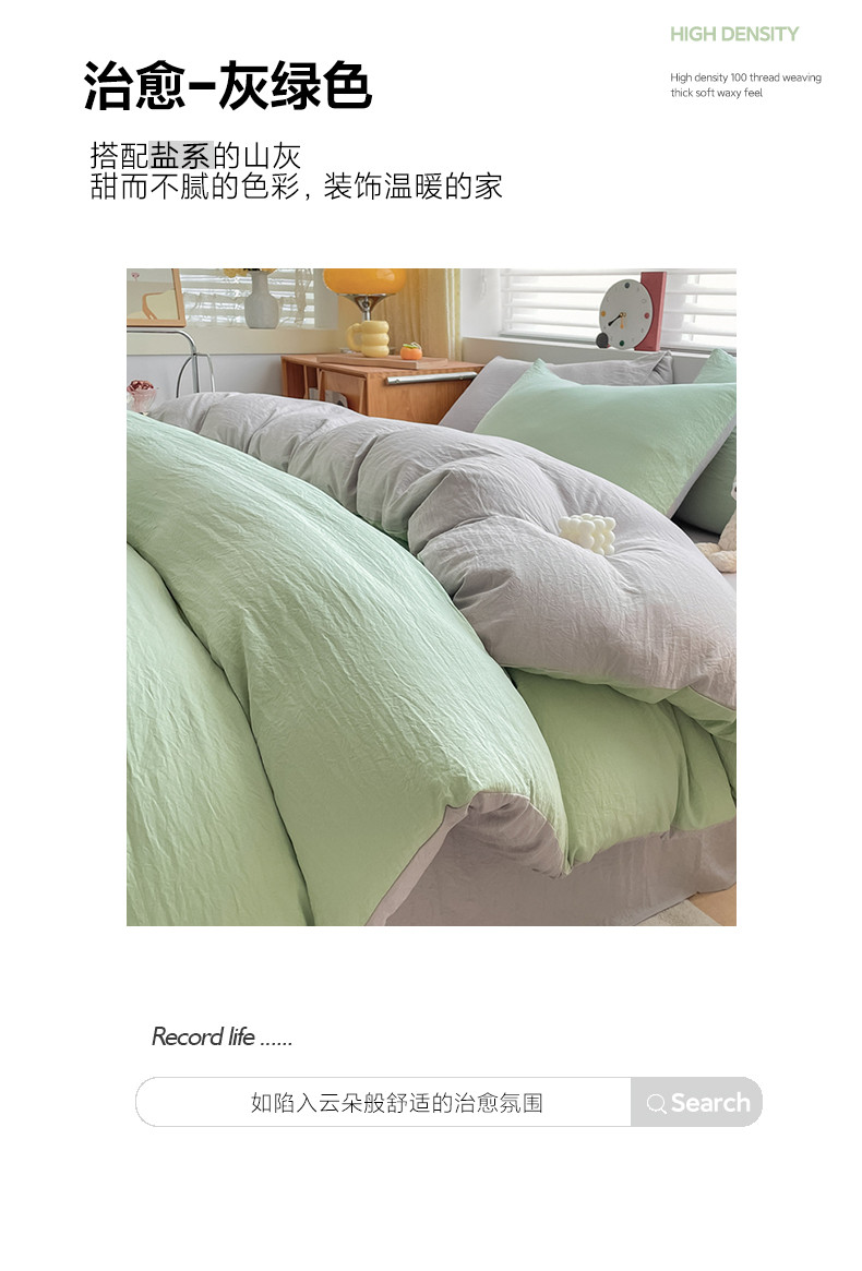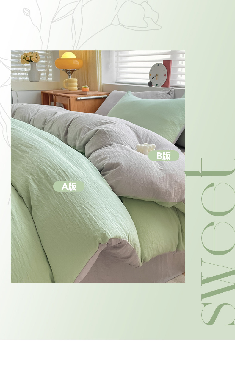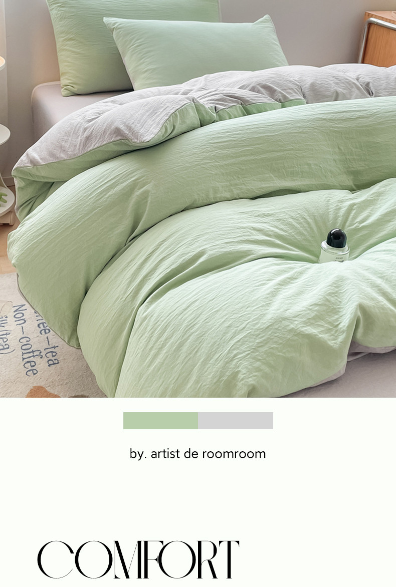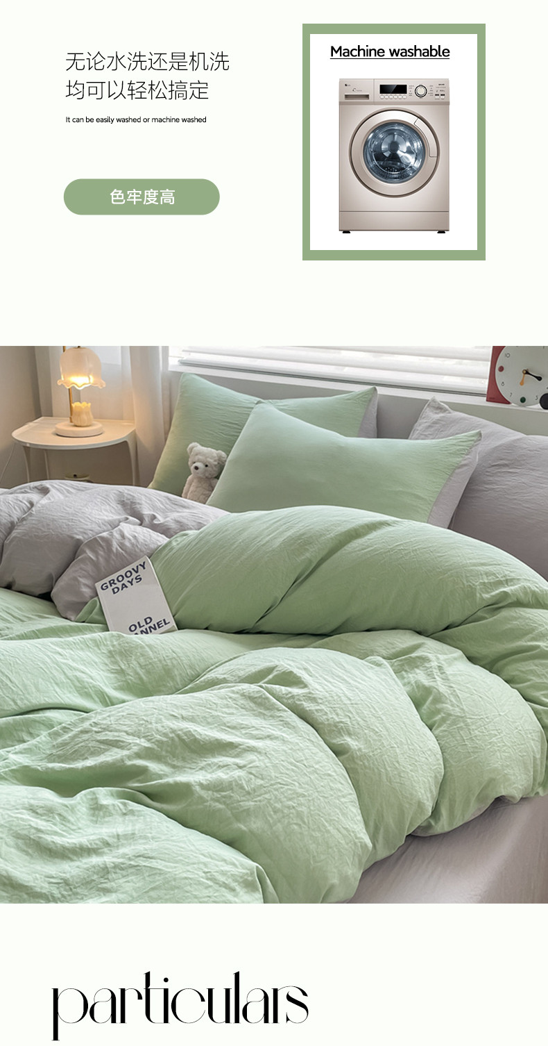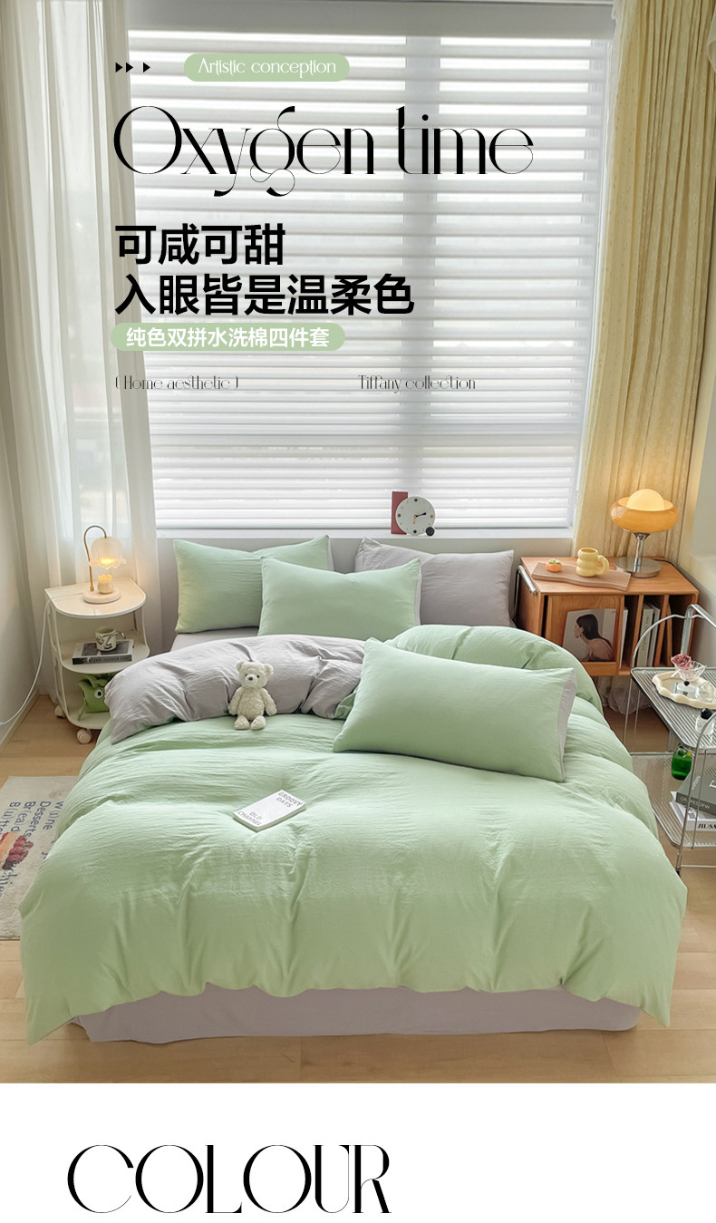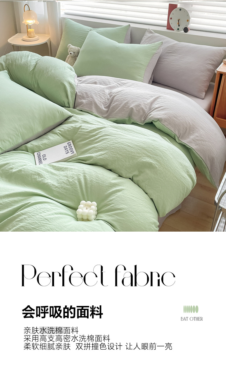 当前位置: 91家纺网 > 商品网购 > 床品套件 > 四件套 > 水洗棉四件套 > 古吉梦 2023新款纯色-双拼水洗棉四件套 纯色-灰绿+山灰