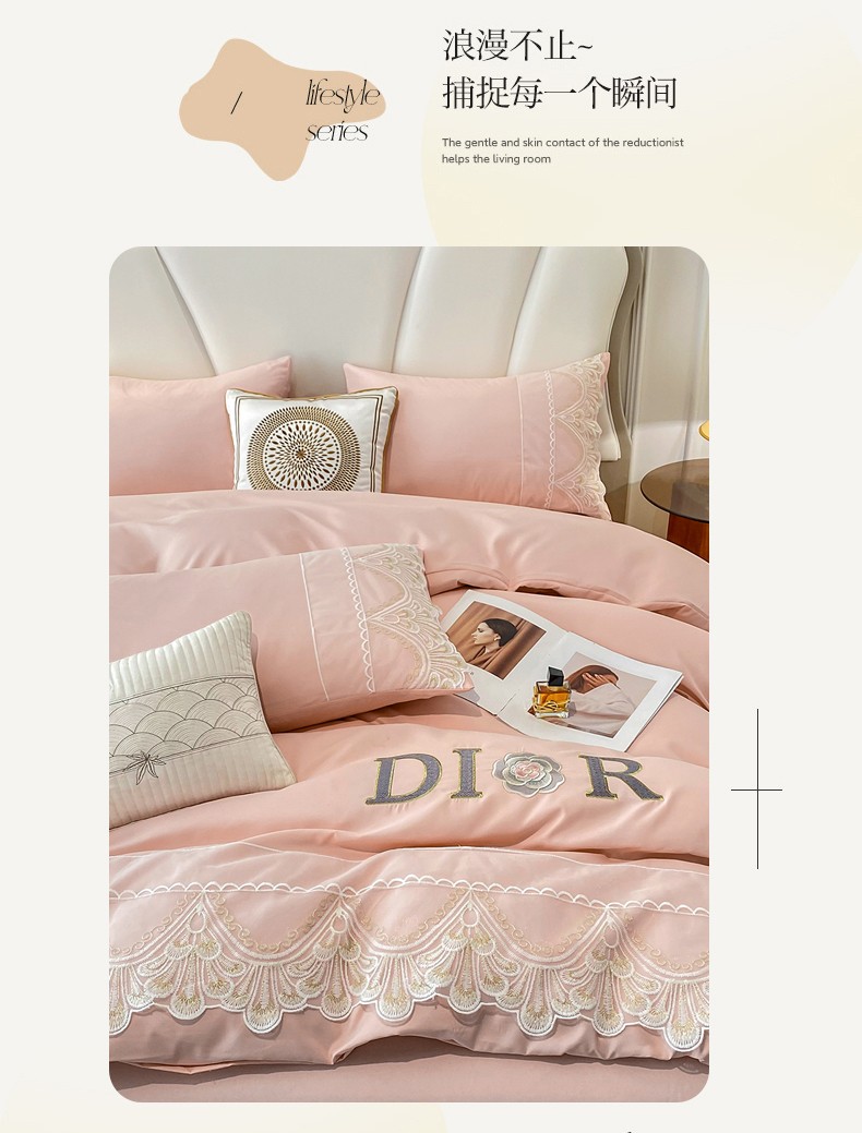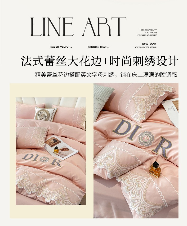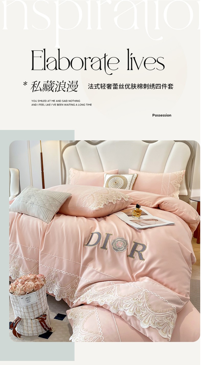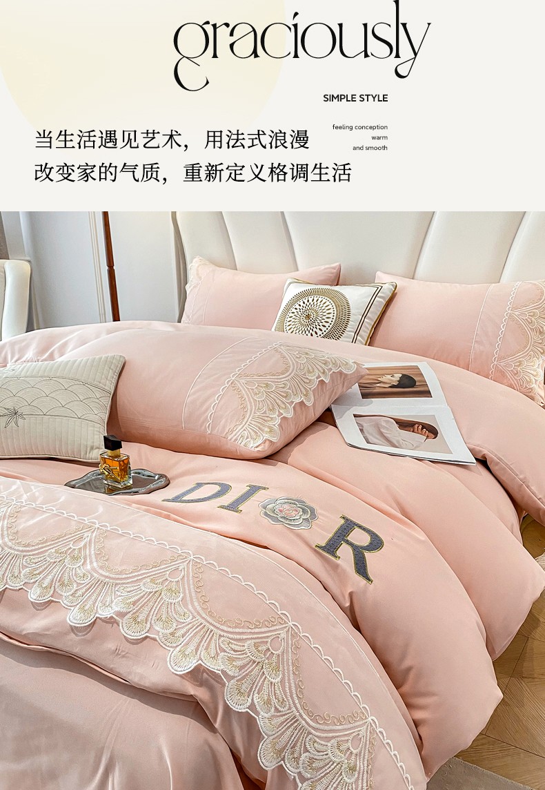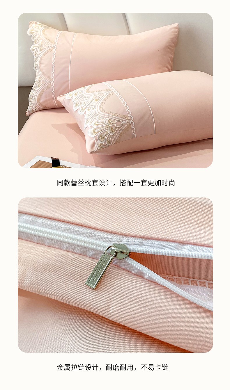 帝菲妮 2025新款法式轻奢大蕾丝刺绣四件套-米奈尔 米奈尔-香妃粉