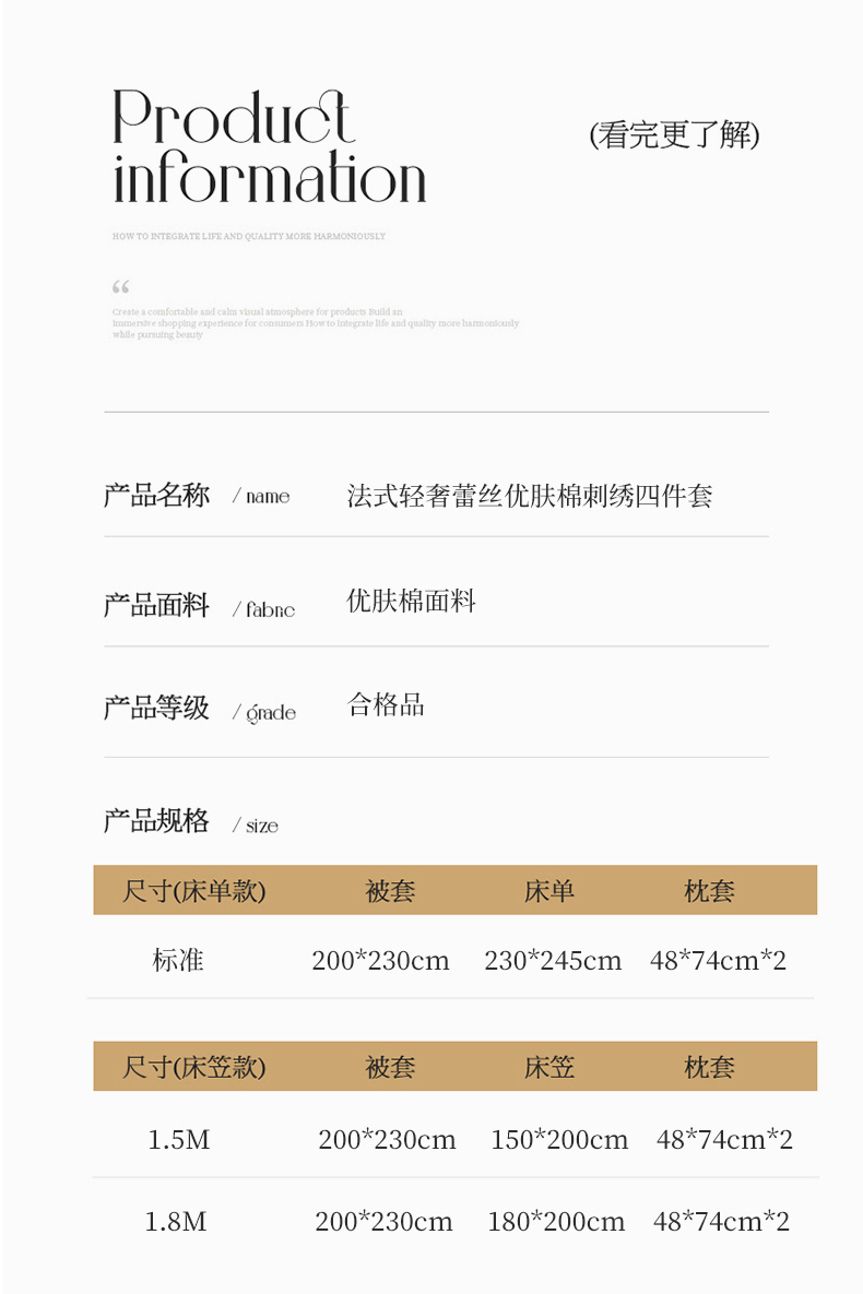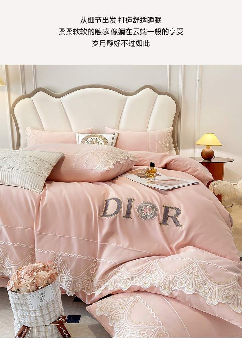 商品名称:帝菲妮 2025新款法式轻奢大蕾丝刺绣四件套-米奈尔 米奈尔-香妃粉