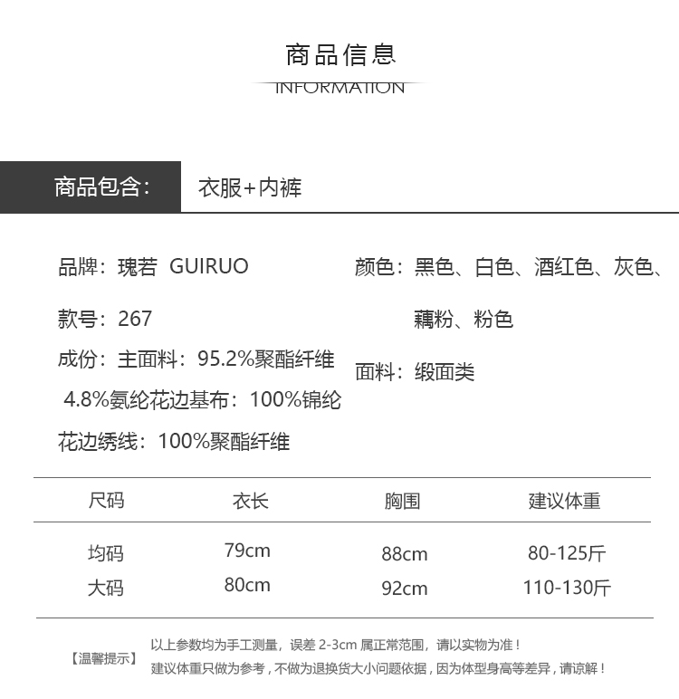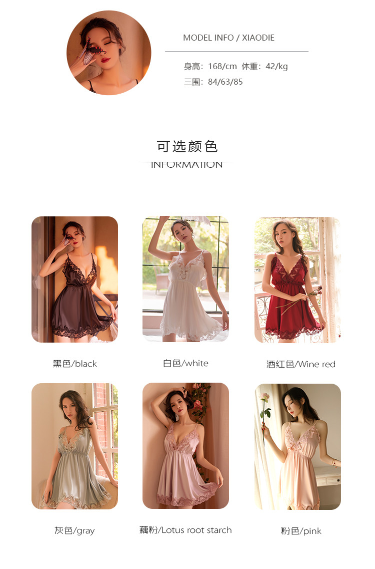 商品名称:洛兰沙 2023新款外贸冰丝蕾丝吊带和两件套-267小蝶