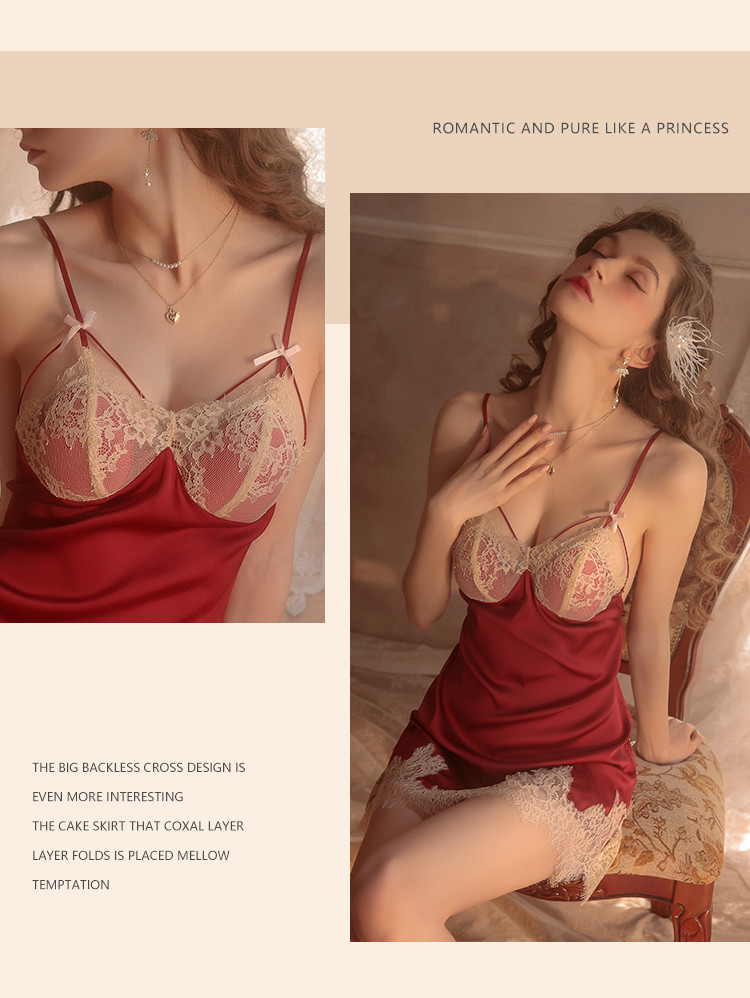 商品名称:洛兰沙 2023新款外贸冰丝蕾丝吊带和两件套-1048欧拉 枣红