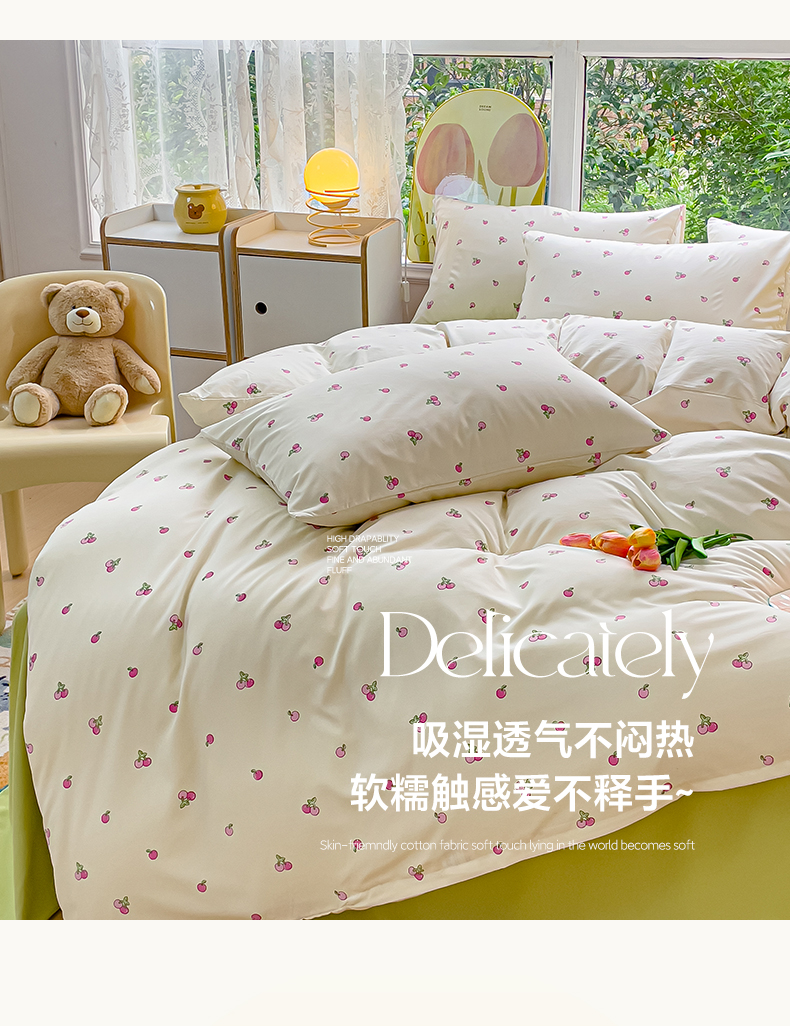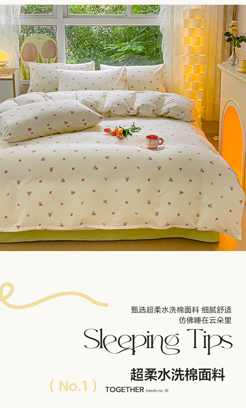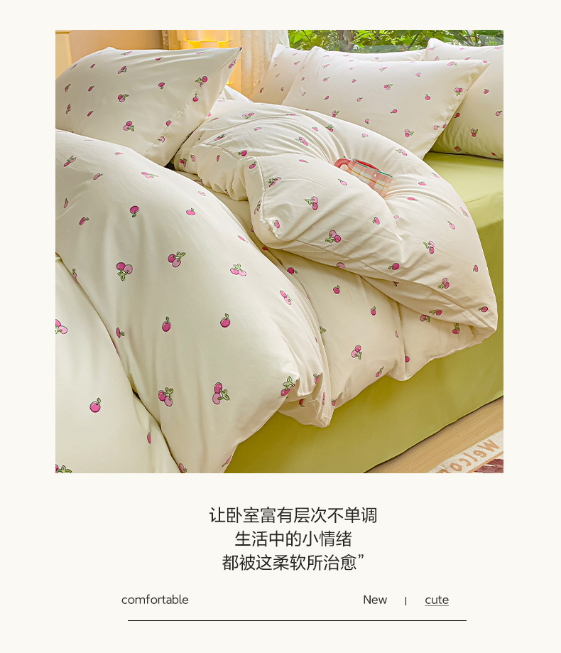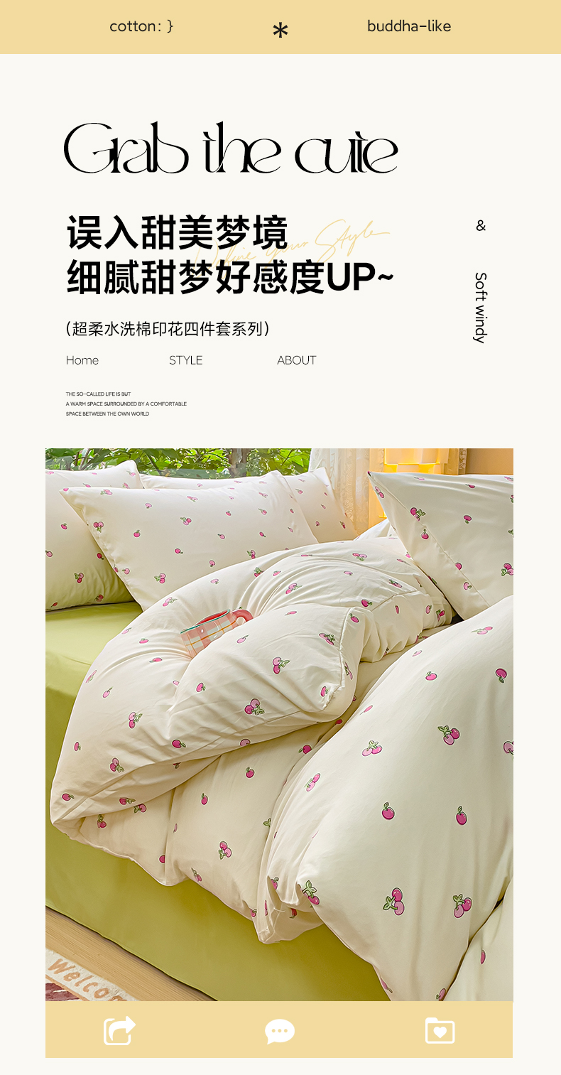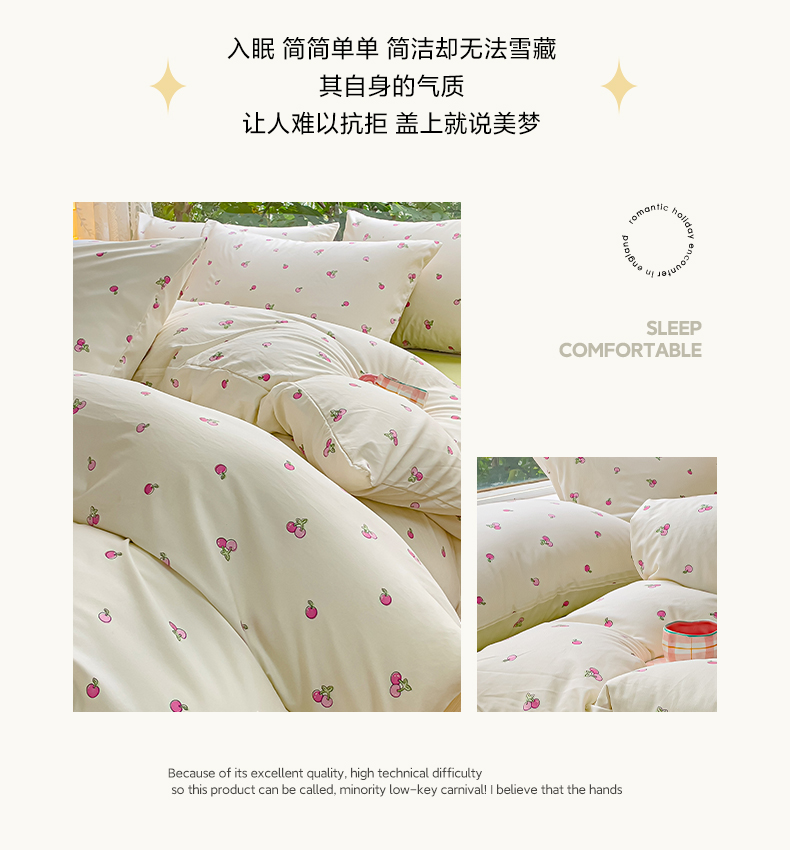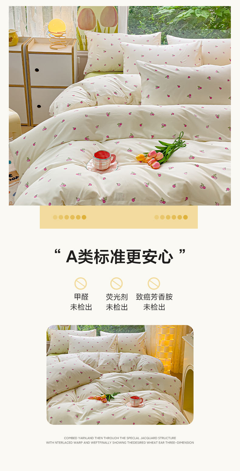 当前位置: 91家纺网 > 商品网购 > 床品套件 > 四件套 > 水洗棉四件套 > 超柔水洗棉双层纱四件套小碎花被套床笠床单学生宿舍三件套 果粒