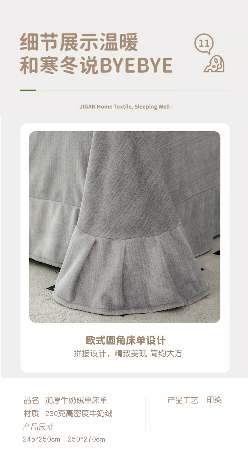 商品名称:新款230克纯色加厚肌理纹牛奶绒单床单 肌理纹绣花-灰