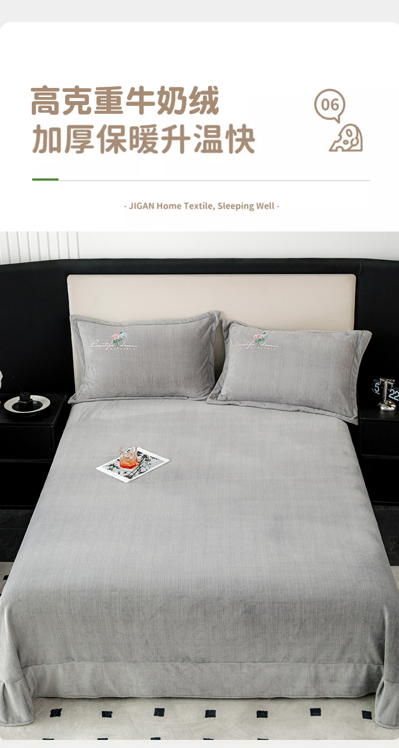 新款230克纯色加厚肌理纹牛奶绒单床单 肌理纹绣花-灰