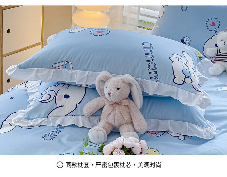 商品名称:桃子 2023新款三丽鸥正版授权韩版花边少女纯棉系列四件套 棉花边-甜点玉桂狗
