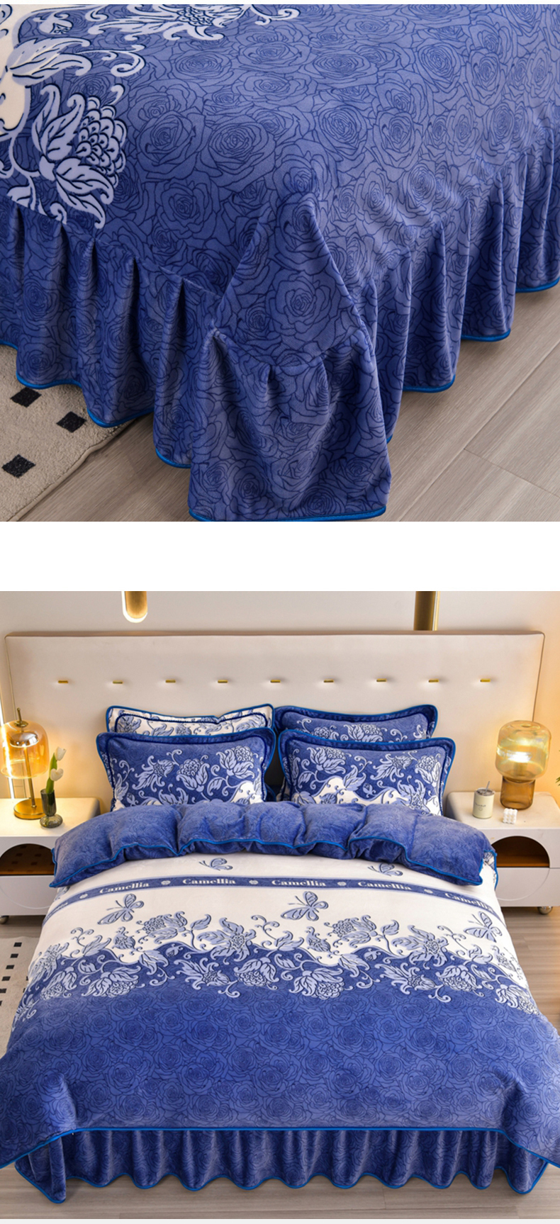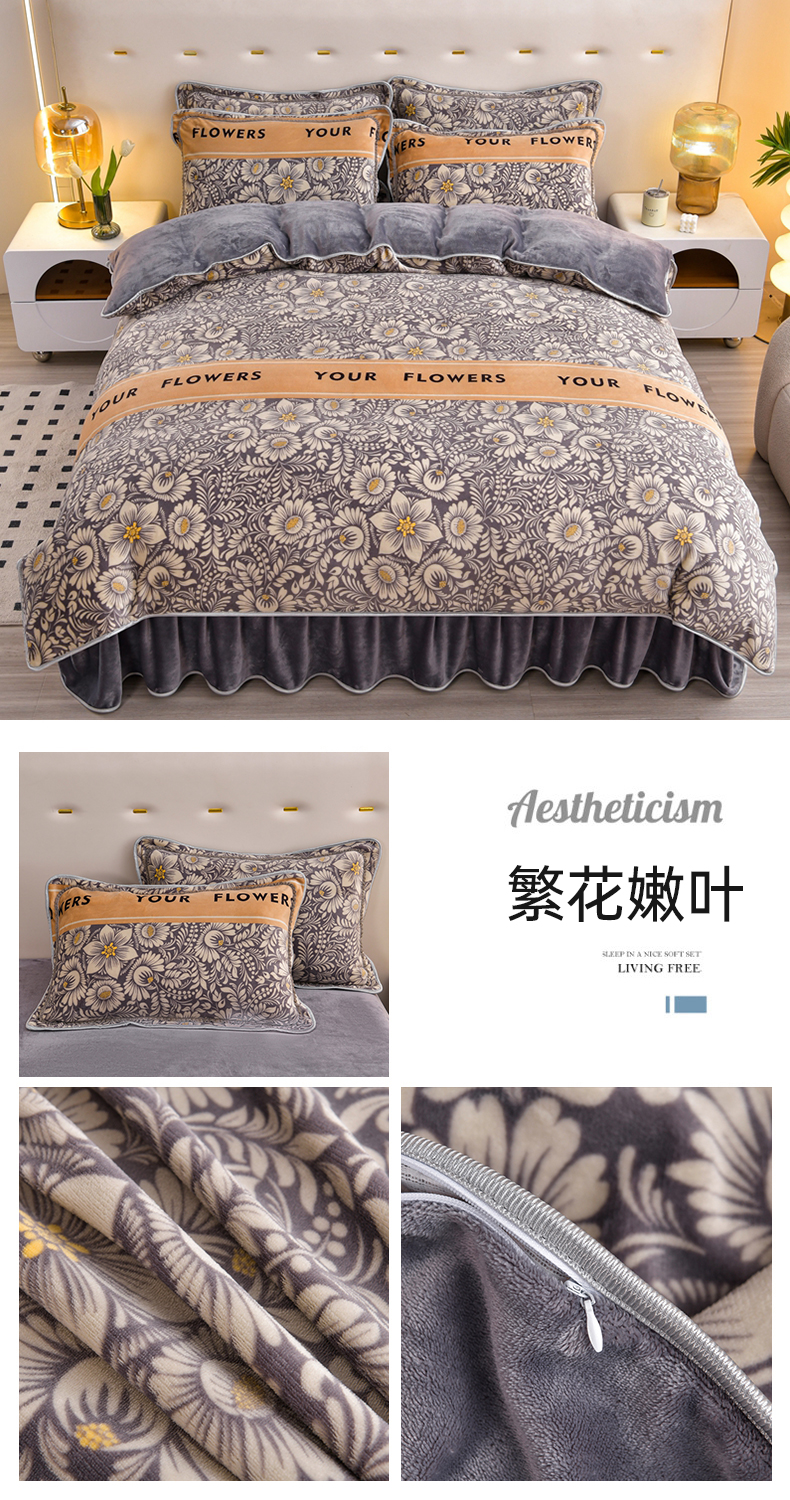 芯诗曼2025新款8.5斤直播热款高克重牛奶绒法莱绒水晶金貂法莱绒四件套花样情怀,花样情怀