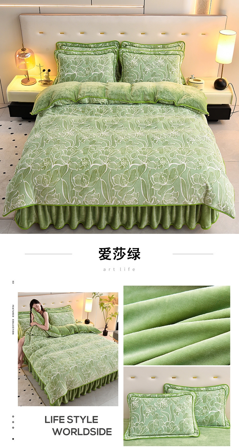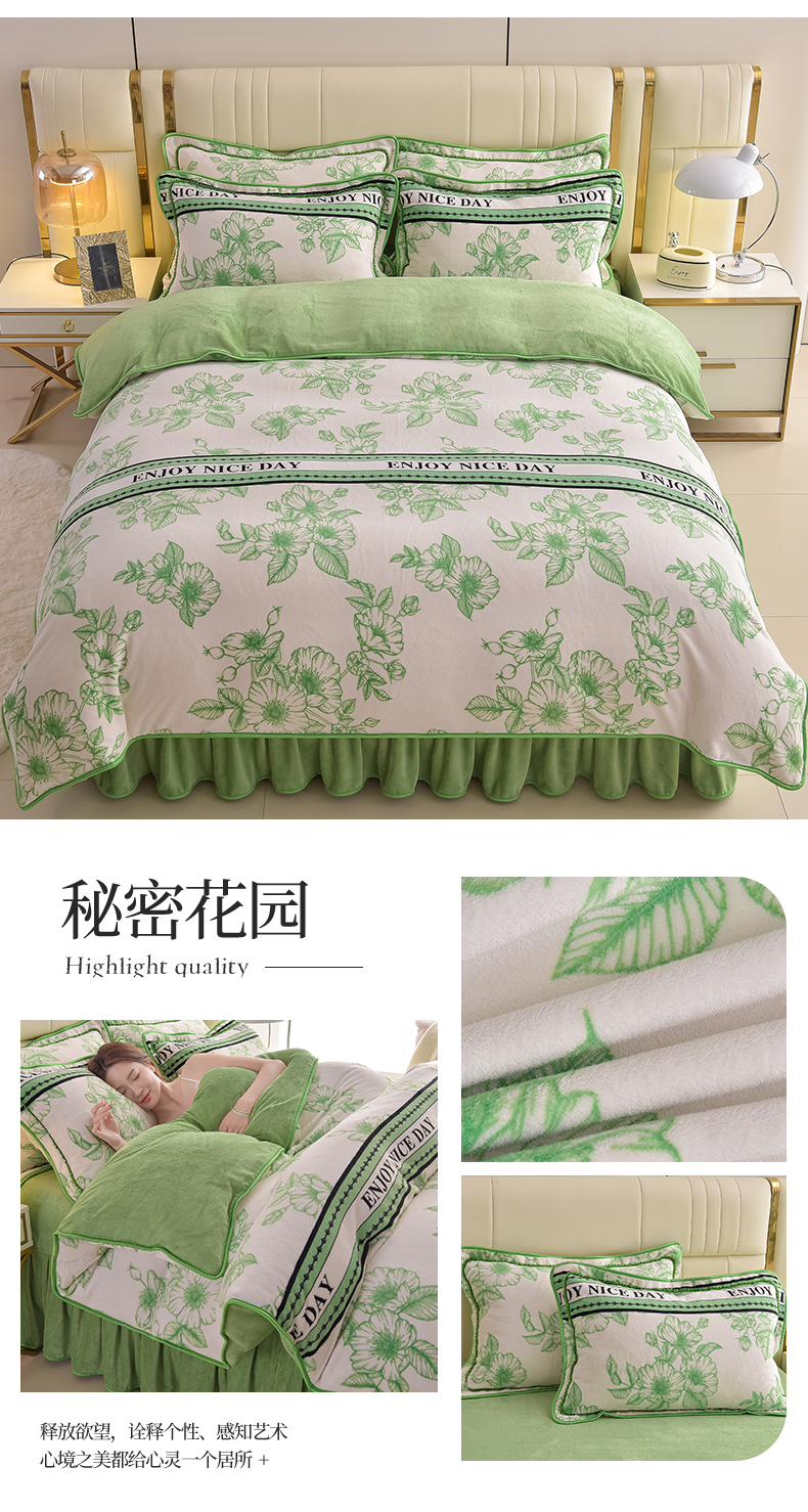 (总)曼尼2025新品高克重直播印花牛奶绒四件套床裙款法莱绒金貂珊瑚绒,牛奶派对,安娜粉,巴黎之约,霸王茶姬,玫瑰庄园,咪ni,秘密花园,逆境,暖暖时光,青花瓷,三生有幸,山茶花,时尚斑马,时尚格,水墨江南,小熊丫丫,叶叶思语,一鹿有你,穿越浪漫,淡雅,花间漫舞,小熊芭比,时尚风情,奇妙花开,迷情方格,艾莎 绿,清新怡人,梦幻花韵,郁金香,晚秋,蓝大格,妙笔生花,小兔吉米,吉祥如意,花开暮色