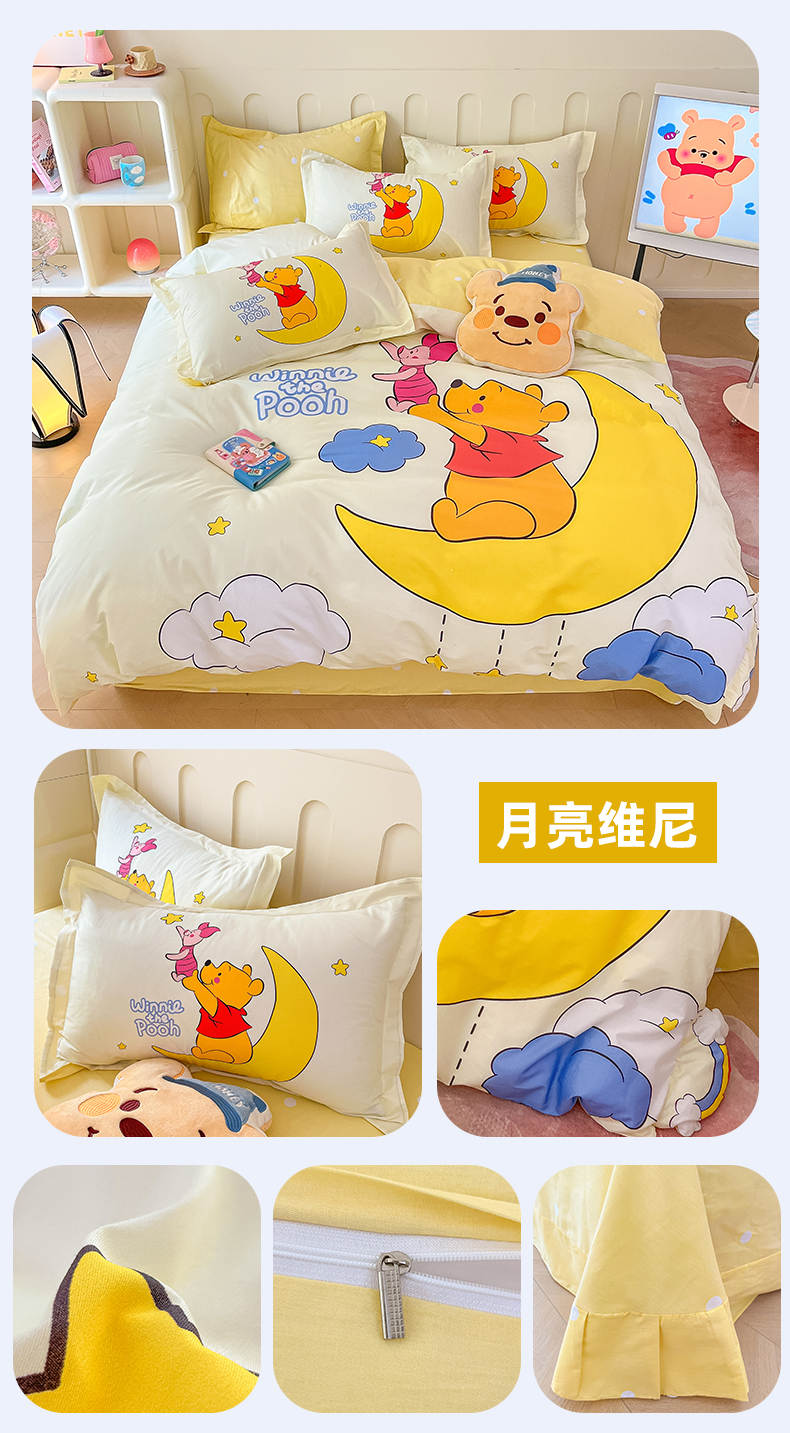 孩子王家纺 2023新款全棉卡通学生活性印花大版工艺款四件套 月亮维尼