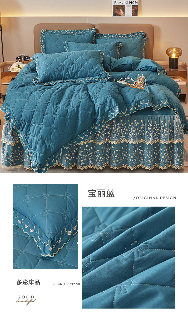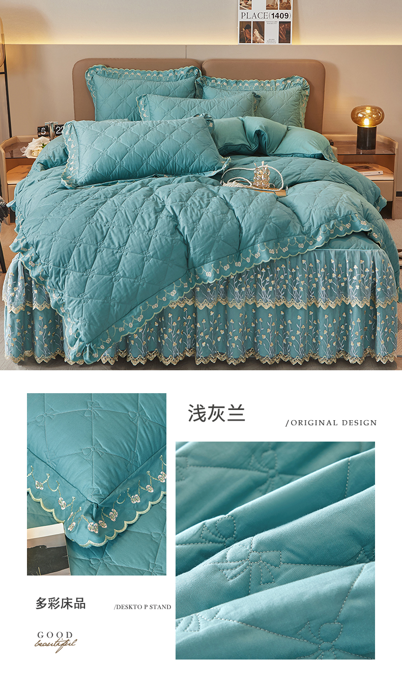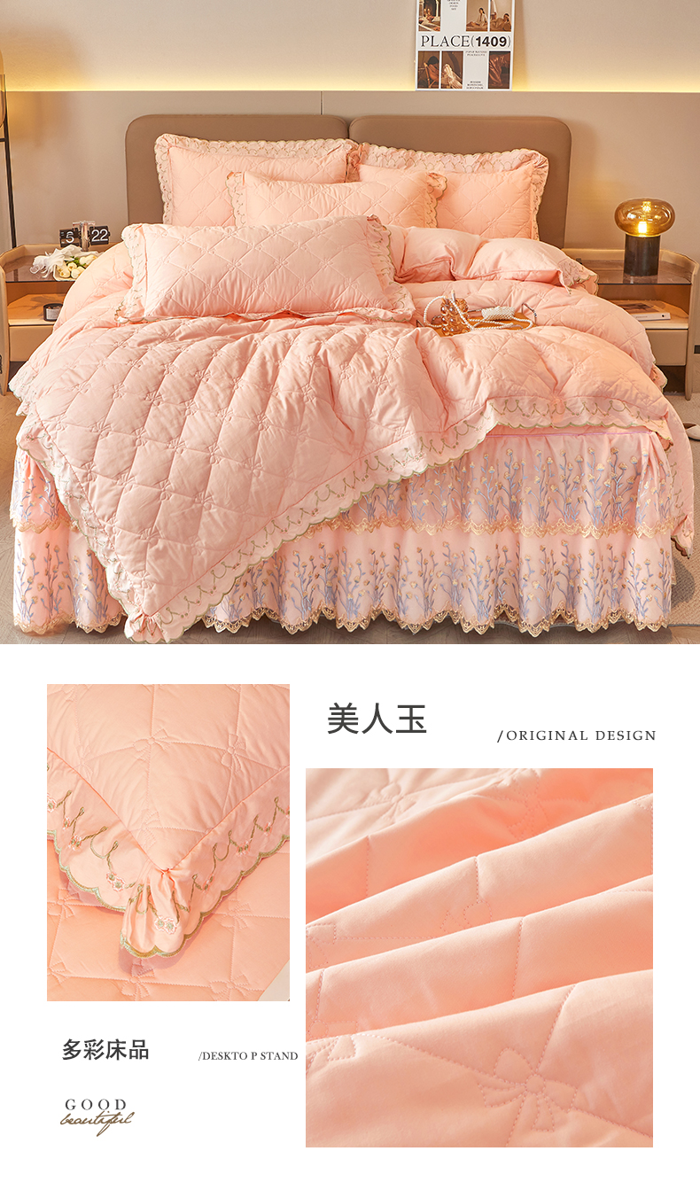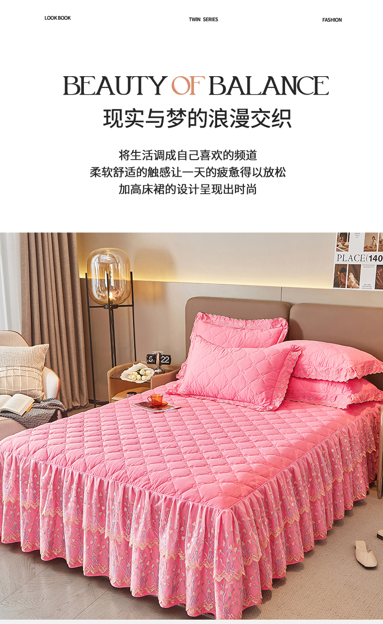 (总)恒爱家纺 2025新款牛奶绒贴布绣夹棉床裙四件套,豆沙红,浪漫紫,天空蓝,温馨粉,象牙白