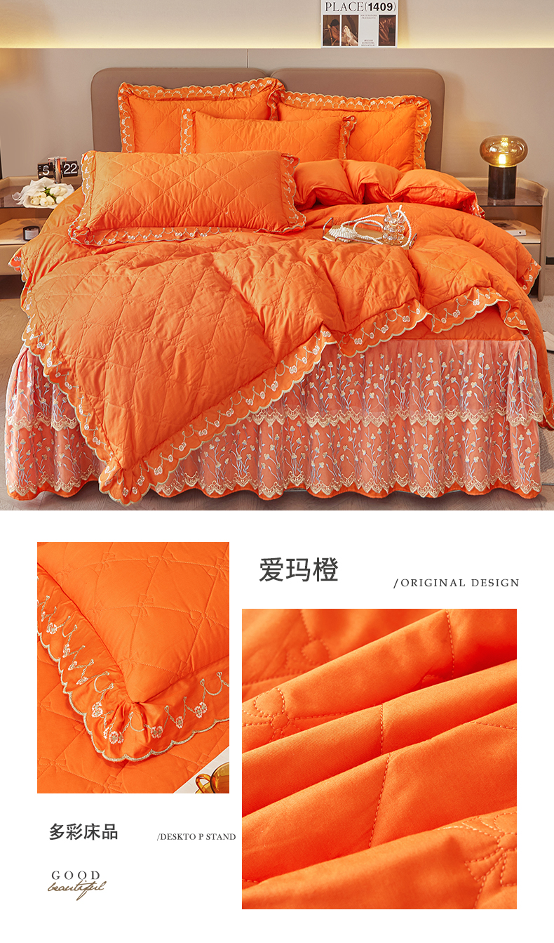 (总)恒爱 2022秋冬水晶绒翩翩花舞夹棉床裙四件套,大红色,豆沙红,橄榄绿,公主粉,桔色,咖啡色,孔雀绿,拉菲红,罗兰紫,玫红色,美人玉,米白色,米驼色,抹茶绿,浅灰色,紫色
