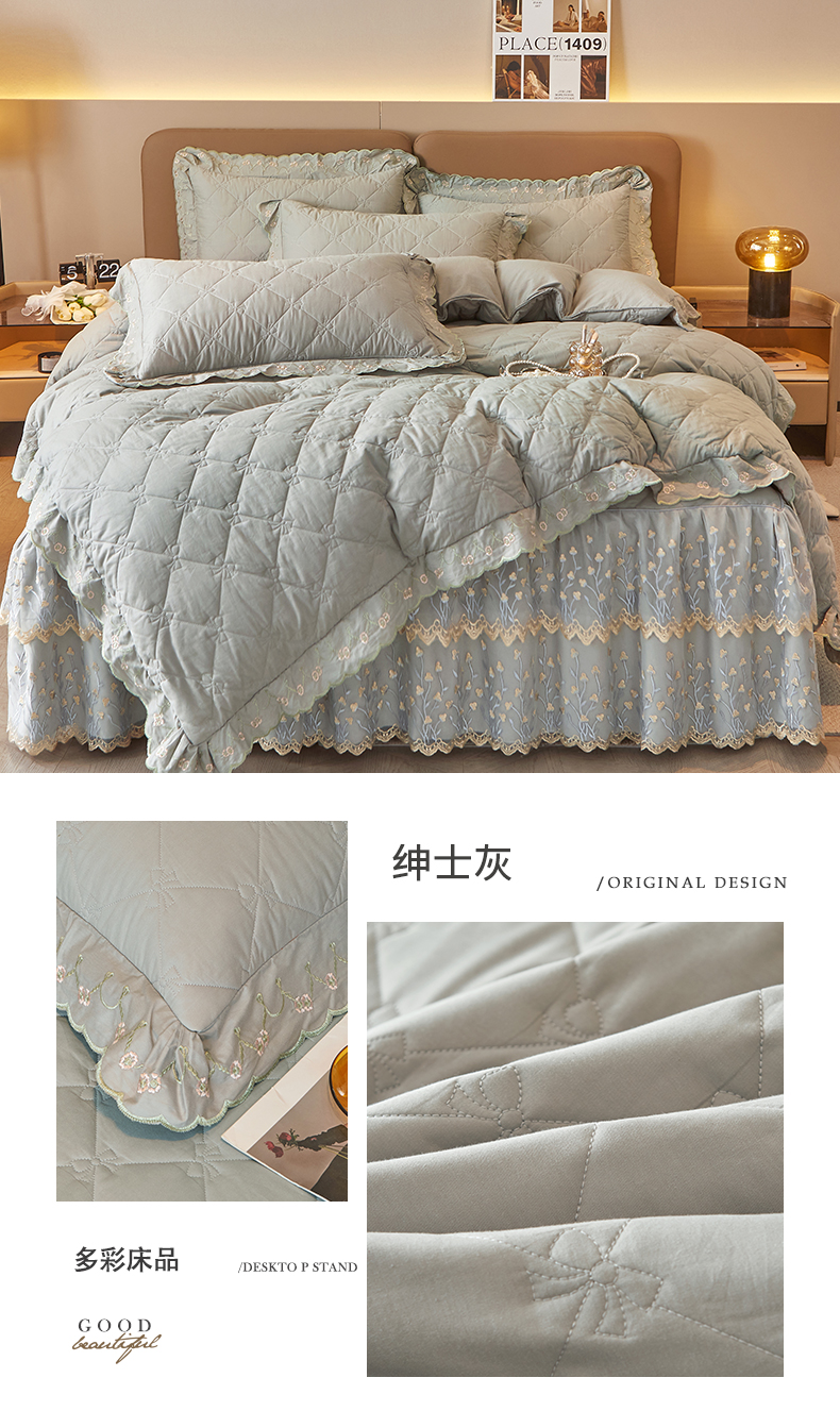 (总)恒爱家纺 2025新款全棉绗绣单品床笠,米驼,奶油粉,米杏,嫩绿,水柿粉,牛油果绿,梧桐灰