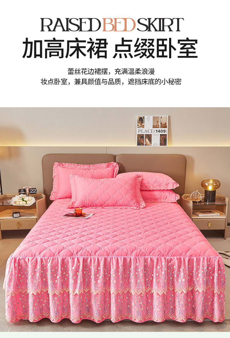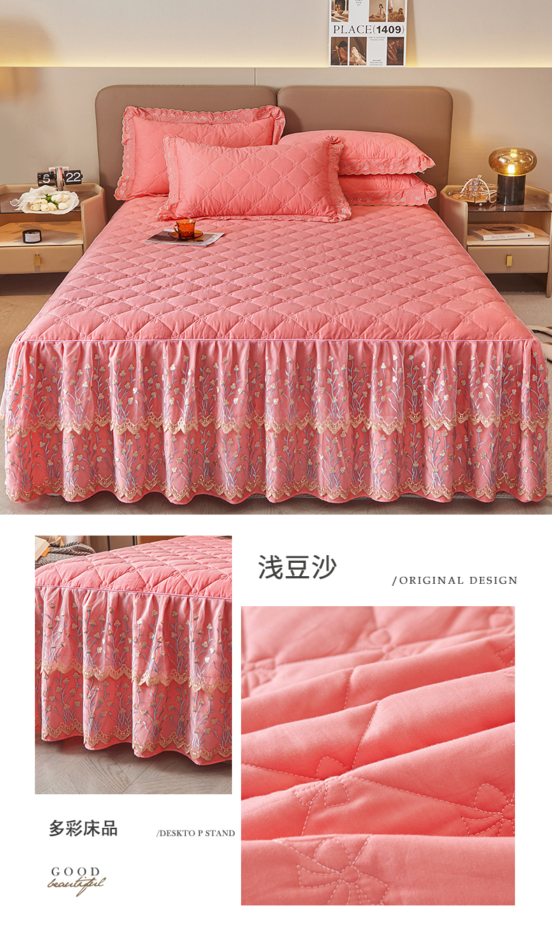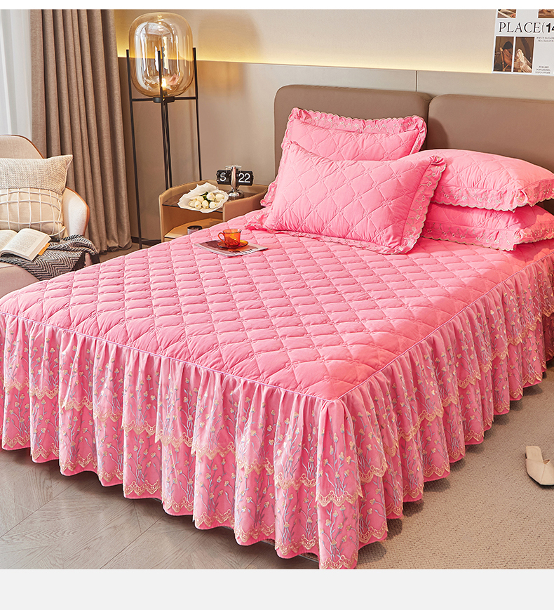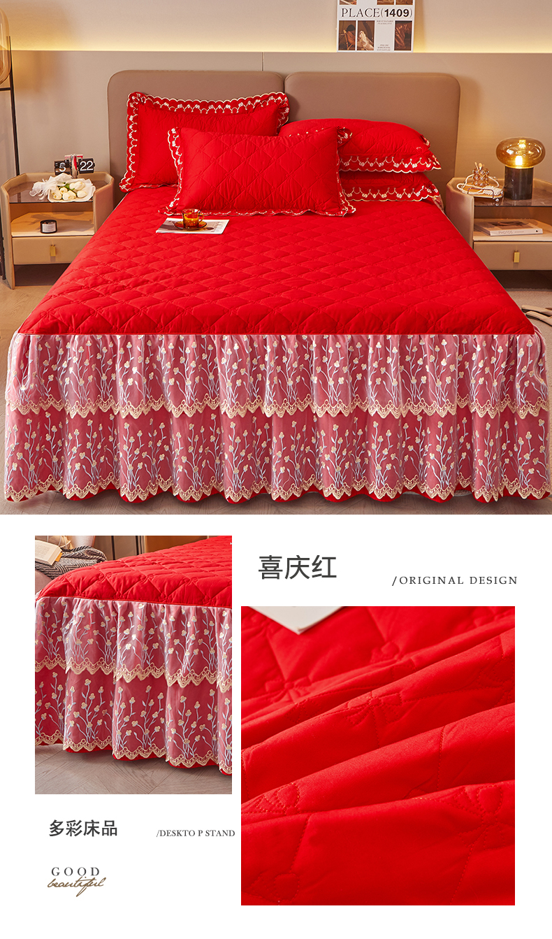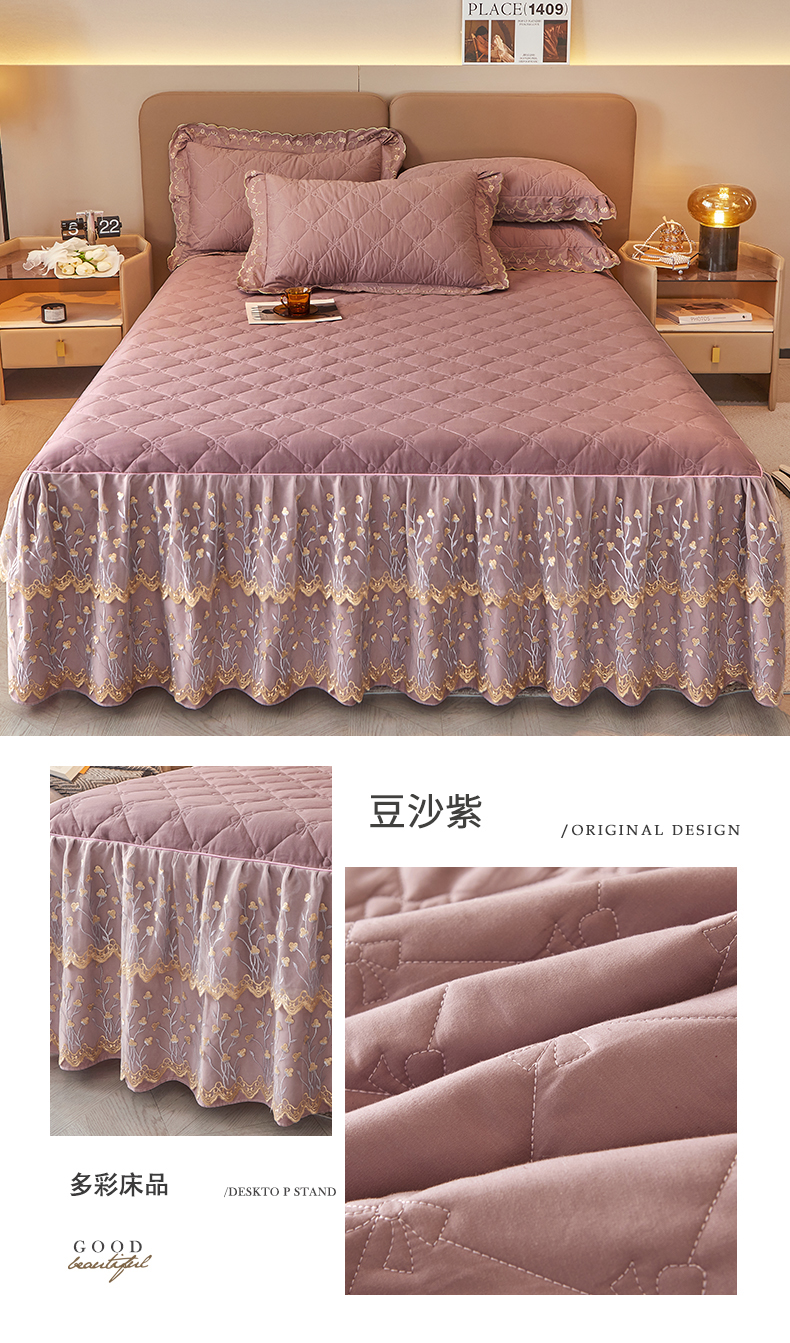 (总)恒爱 2022秋冬水晶绒翩翩花舞夹棉床裙四件套,大红色,豆沙红,橄榄绿,公主粉,桔色,咖啡色,孔雀绿,拉菲红,罗兰紫,玫红色,美人玉,米白色,米驼色,抹茶绿,浅灰色,紫色
