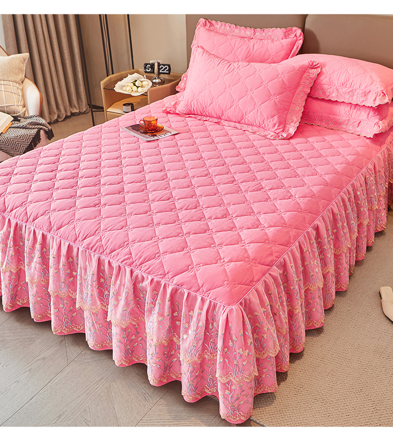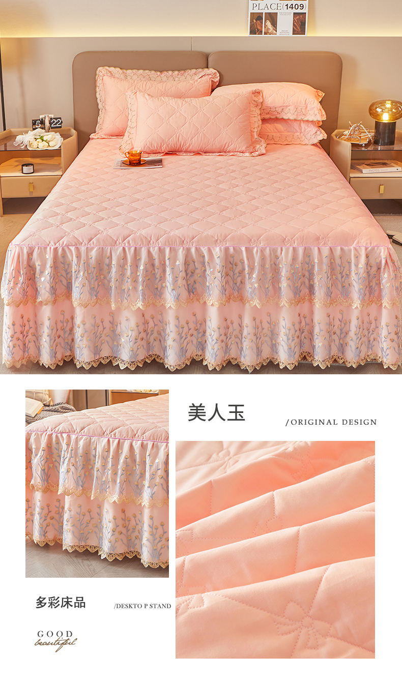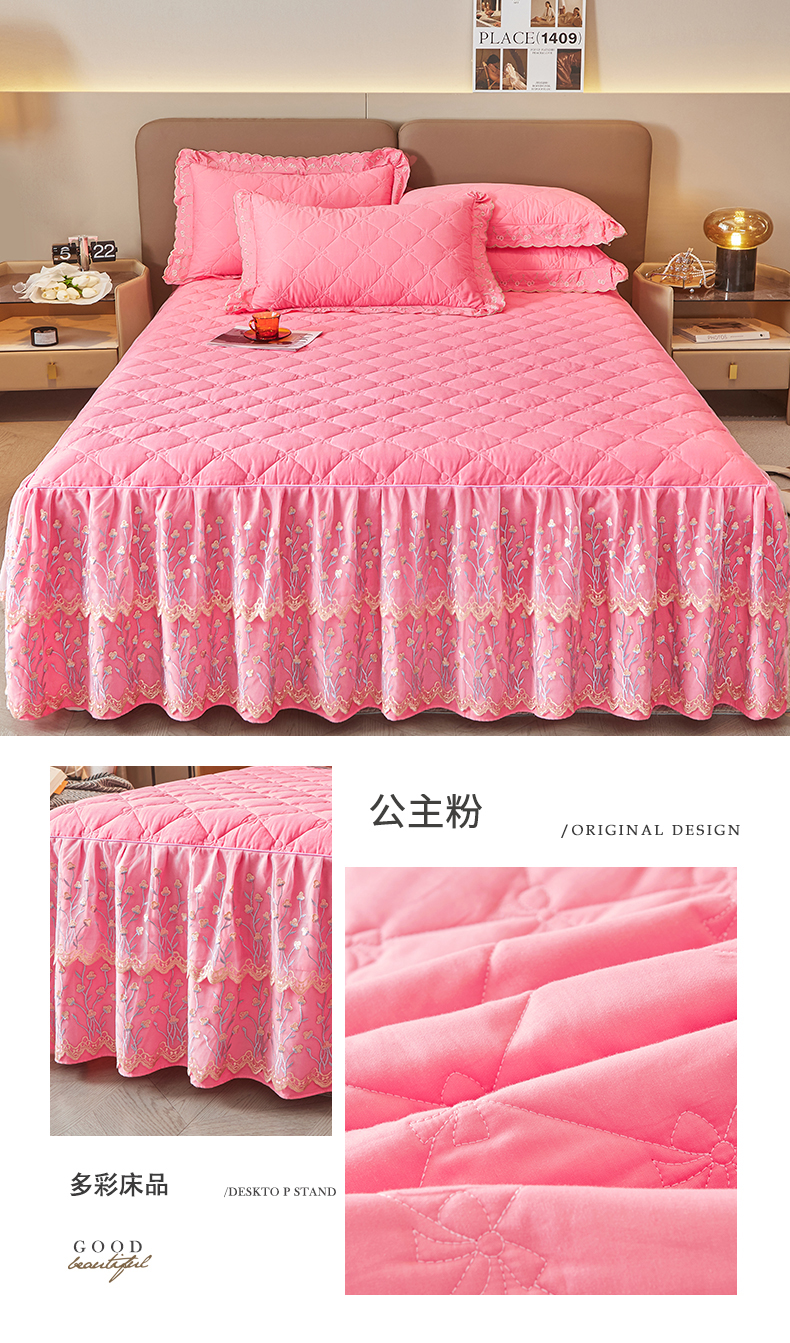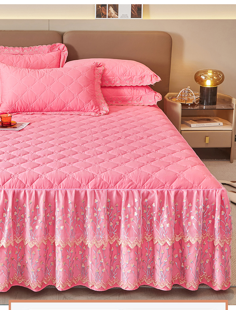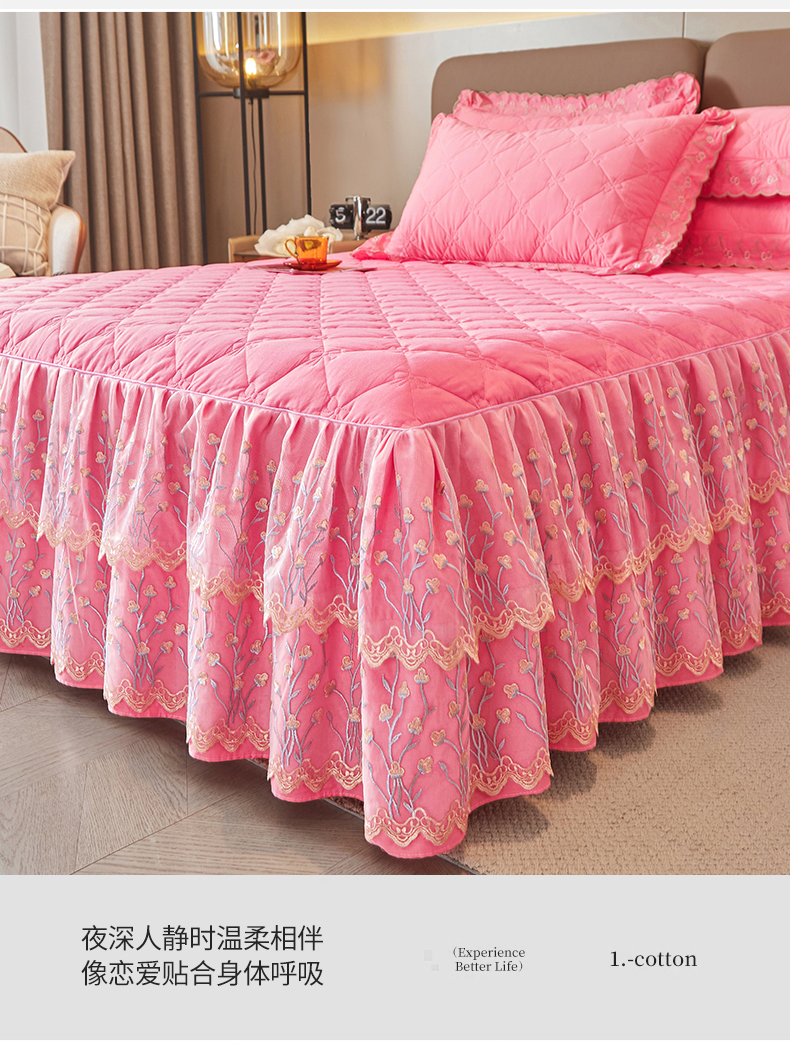 (总)恒爱家纺 2025新款牛奶绒贴布绣夹棉床裙四件套,豆沙红,浪漫紫,天空蓝,温馨粉,象牙白