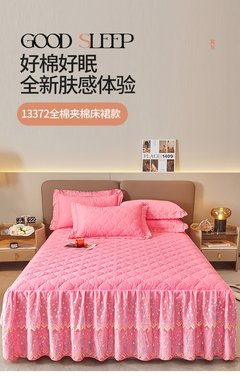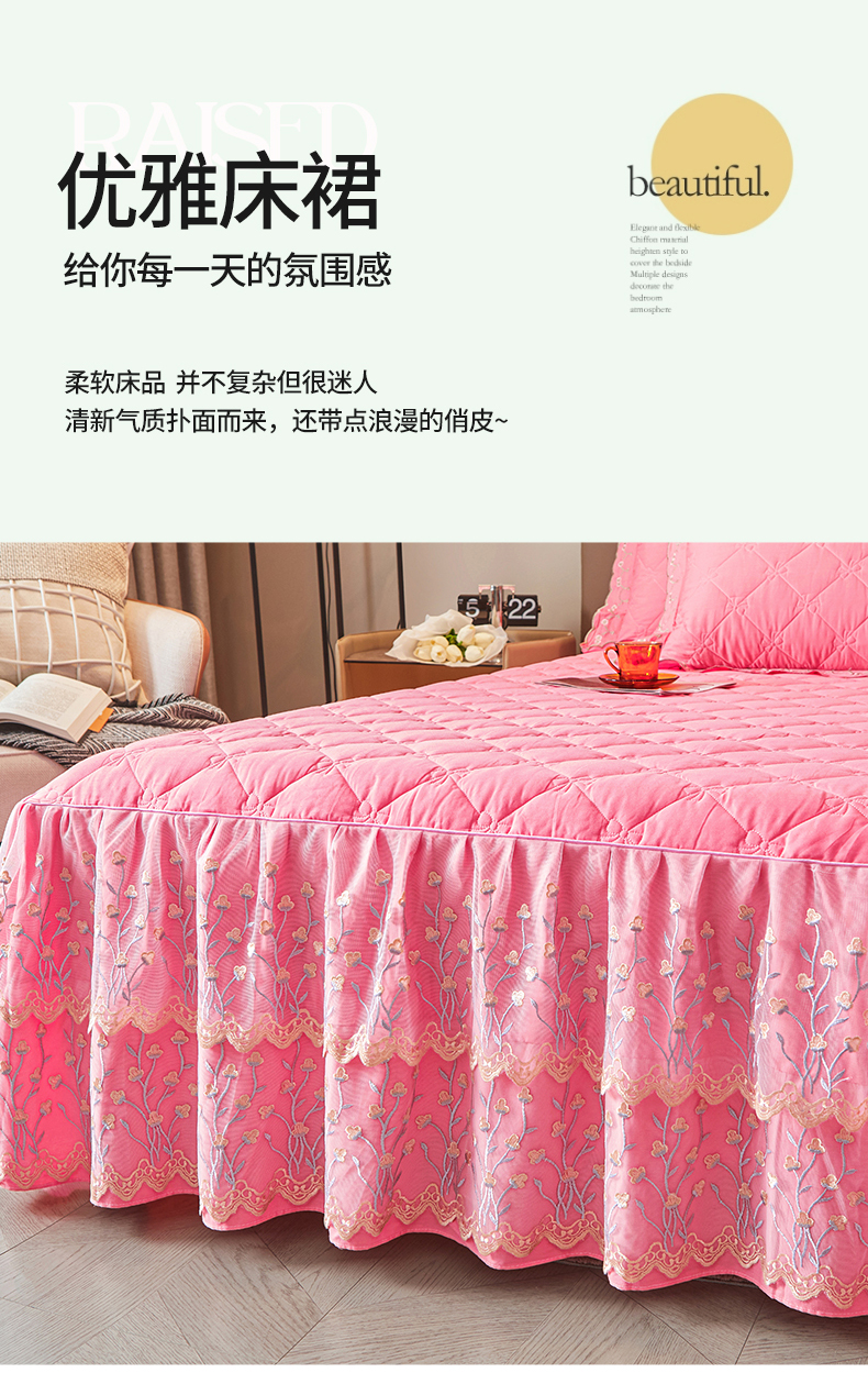(总)恒爱 2022秋冬水晶绒翩翩花舞夹棉单床裙,大红色,豆沙红,橄榄绿,公主粉,桔色,咖啡色,孔雀绿,拉菲红,罗兰紫,玫红色,美人玉,米白色,米驼色,抹茶绿,浅灰色,紫色