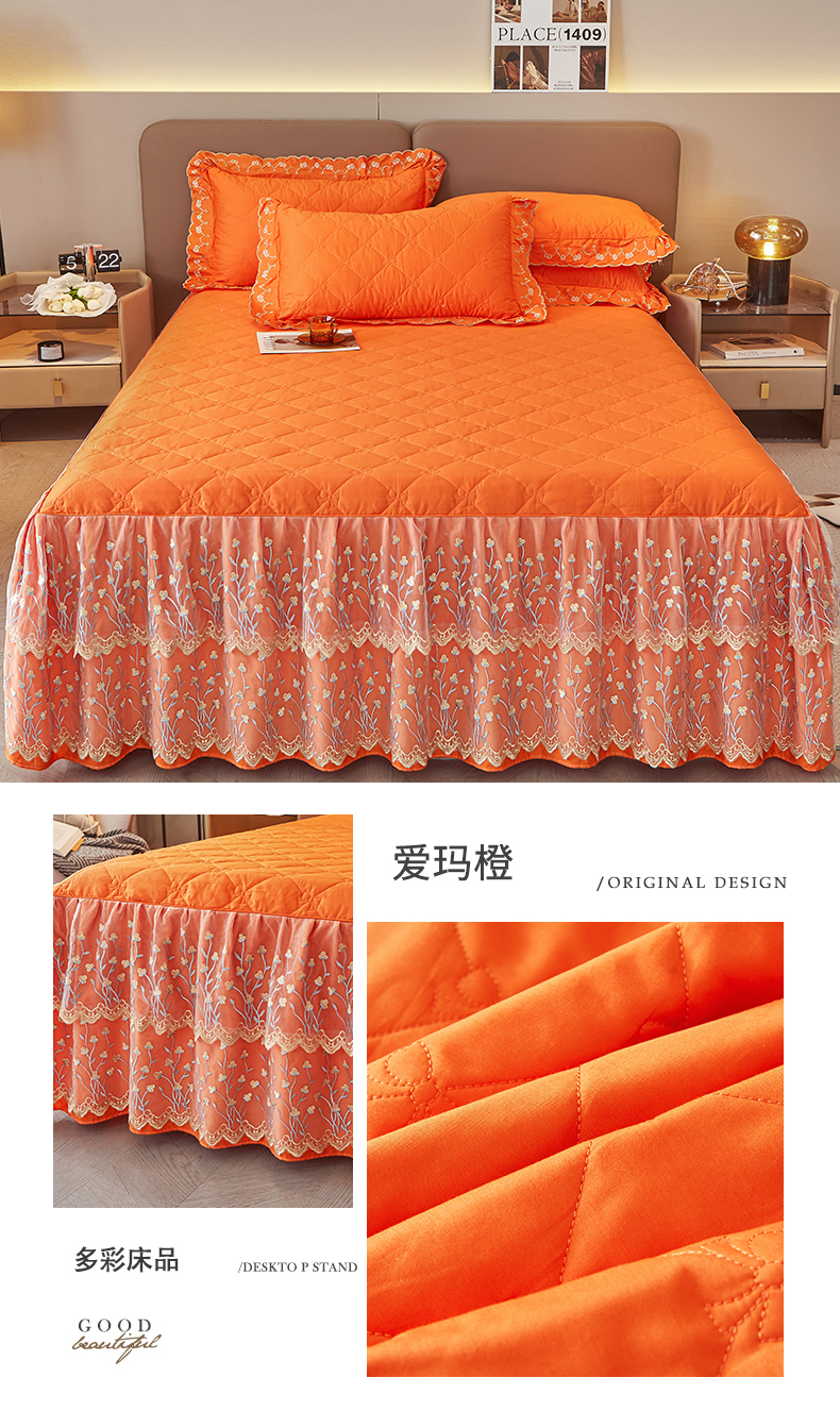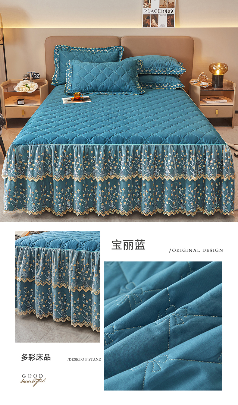 (总)恒爱 2022新款秋冬轻奢宝宝绒刺绣单床裙,爱玛橙,宾利蓝,豆沙红,橄榄绿,高级灰,酒红,梦想粉,浅灰蓝,温馨粉,喜庆红,香妃粉,香芋紫
