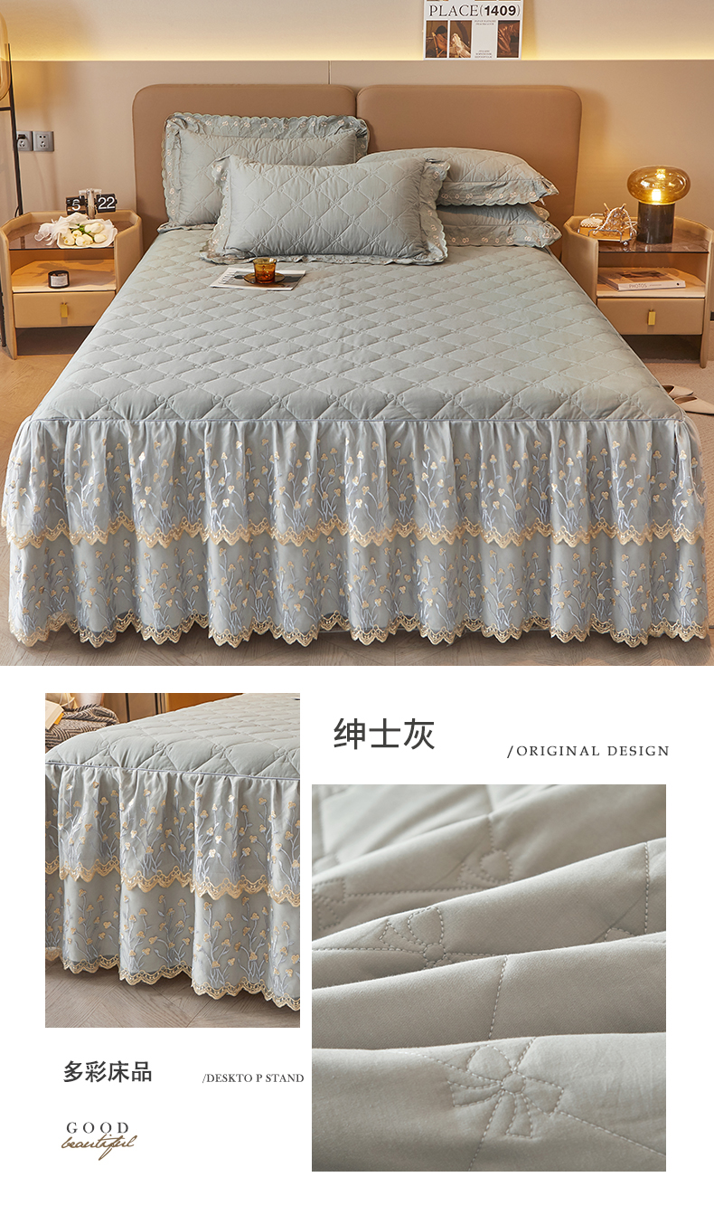 (总)恒爱家纺 2025新款全棉绗绣单品床笠,米驼,奶油粉,米杏,嫩绿,水柿粉,牛油果绿,梧桐灰
