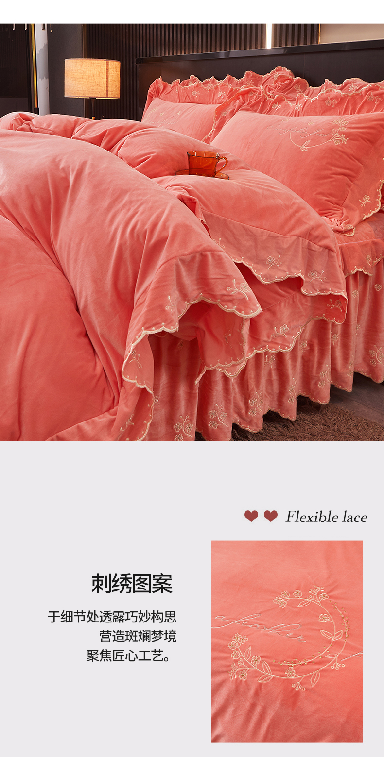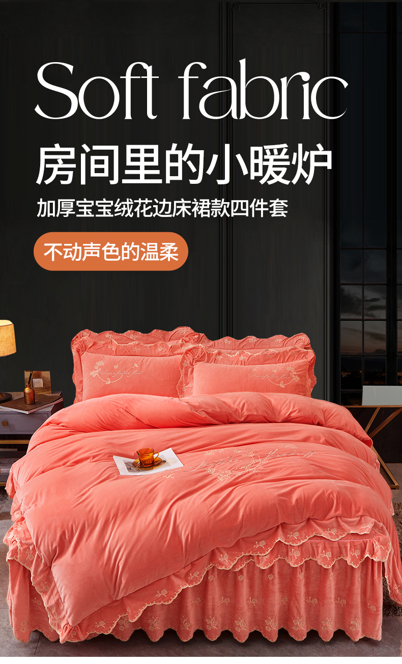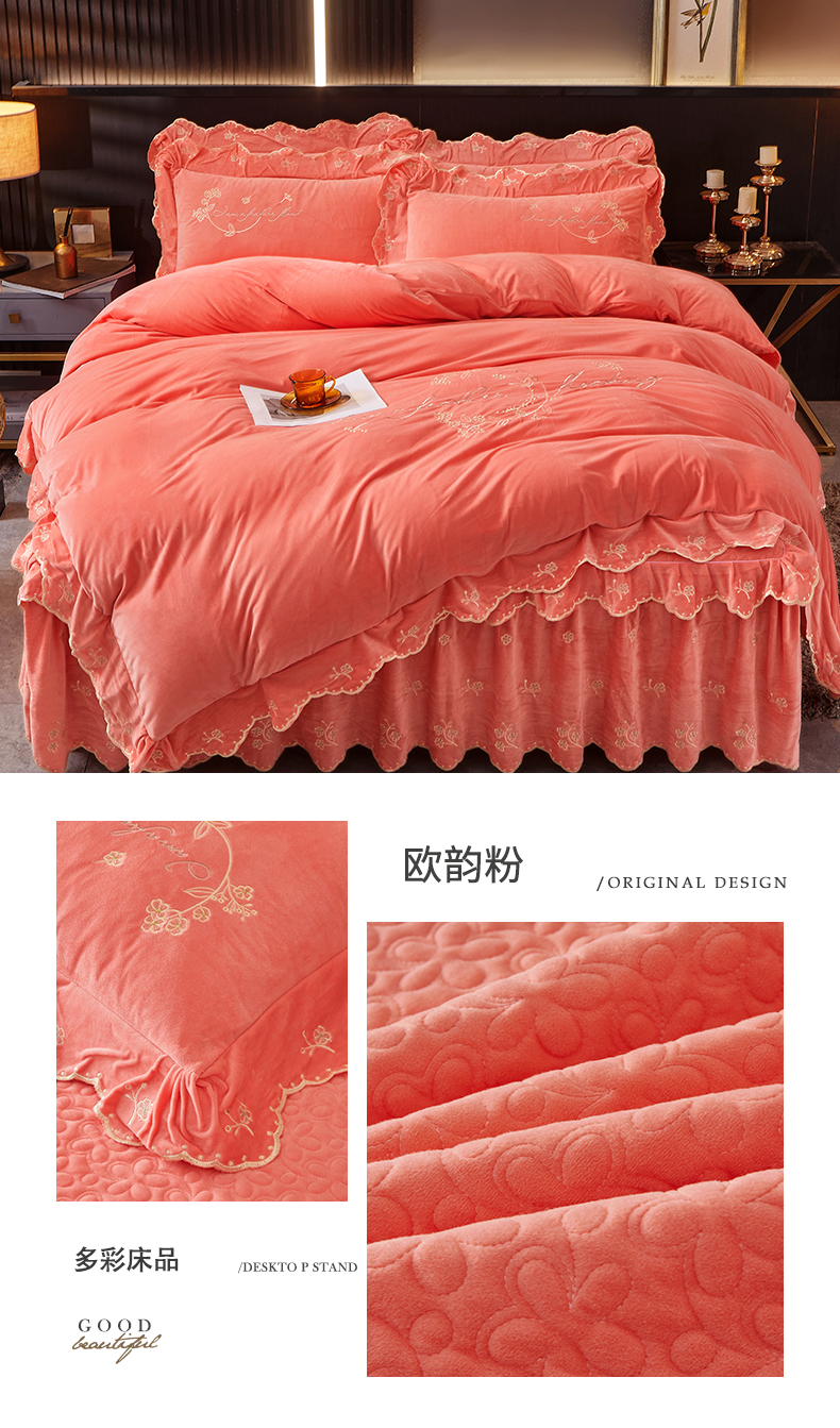 当前位置: 91家纺网 > 商品网购 > 床品套件 > 四件套 > 宝宝绒四件套 > 2023 恒爱家纺 花好月圆宝宝绒床裙四件套 欧韵粉