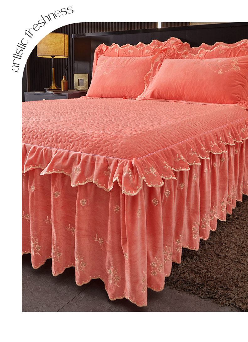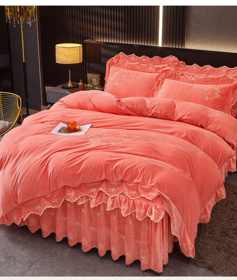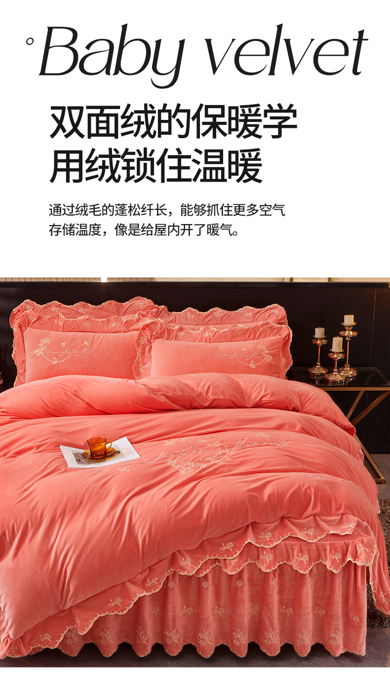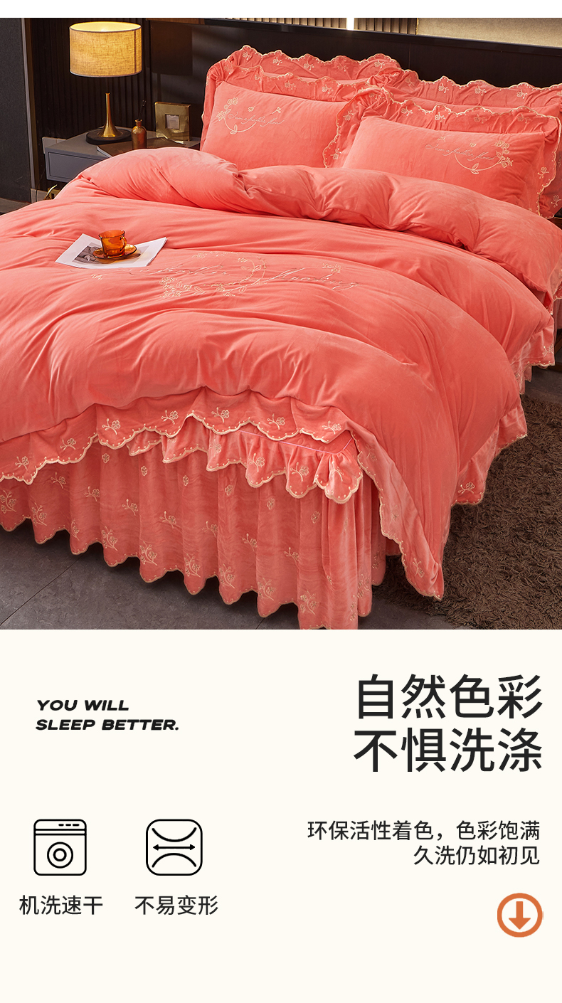 当前位置: 91家纺网 > 商品网购 > 床品套件 > 四件套 > 宝宝绒四件套 > 2023 恒爱家纺 花好月圆宝宝绒床裙四件套 欧韵粉