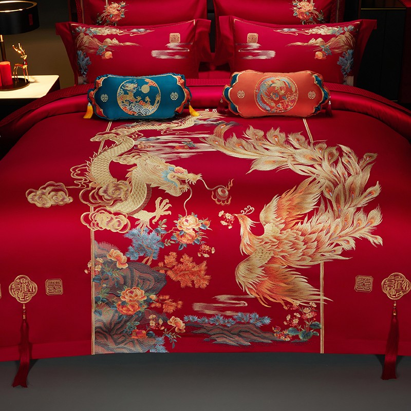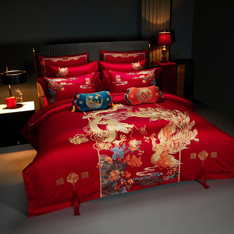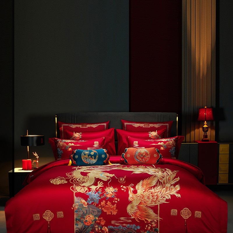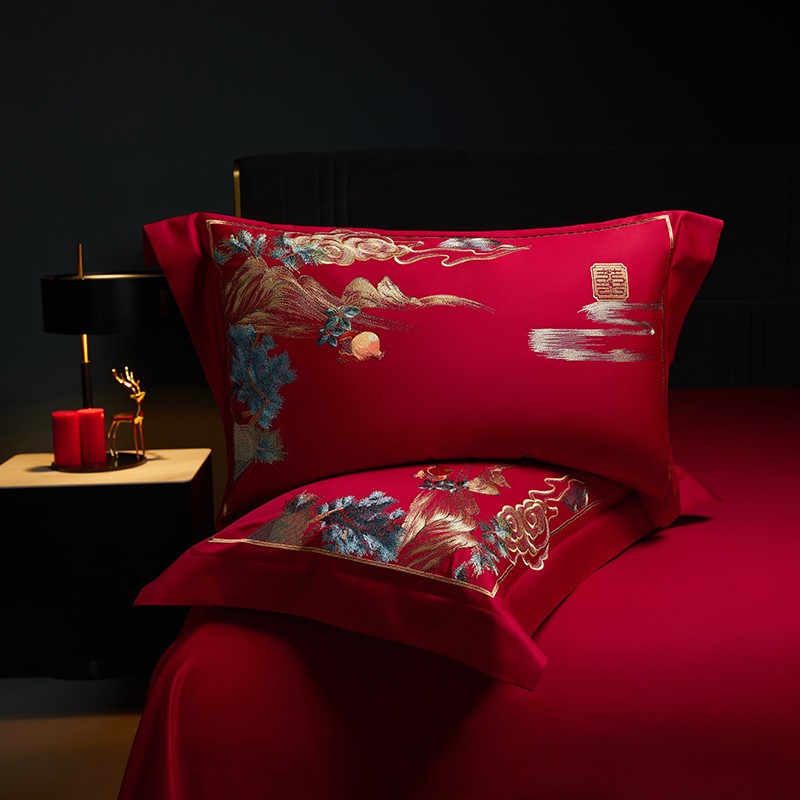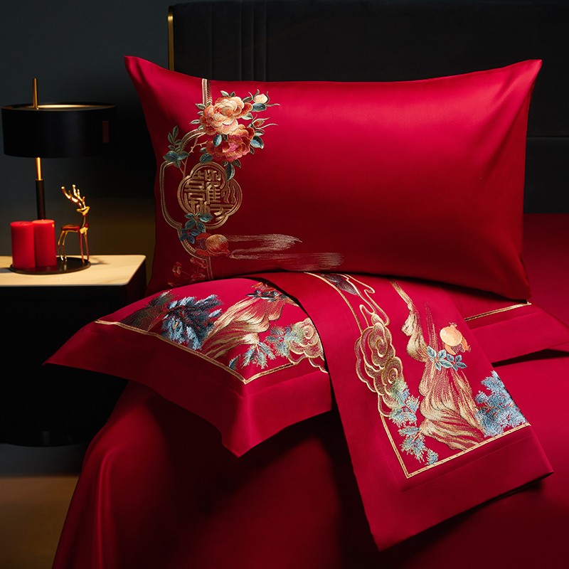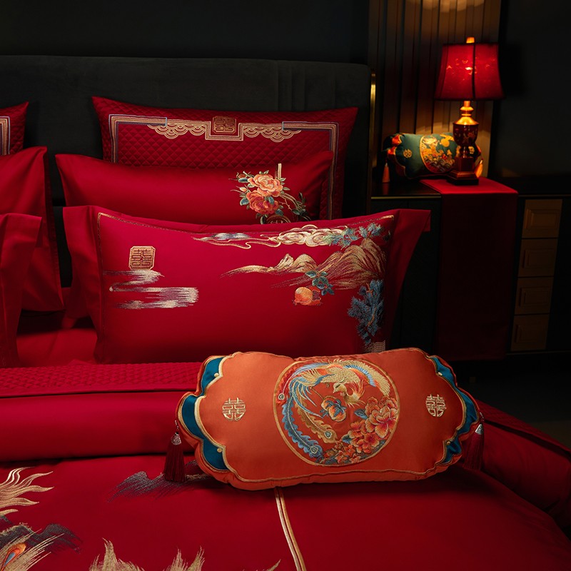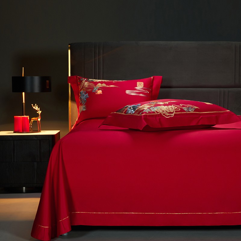 当前位置: 91家纺网 > 商品网购 > 床品套件 > 四件套 > 长绒棉四件套 > 缔缦 2023新款100s全棉长绒棉刺绣四件套婚庆 爱的盛宴