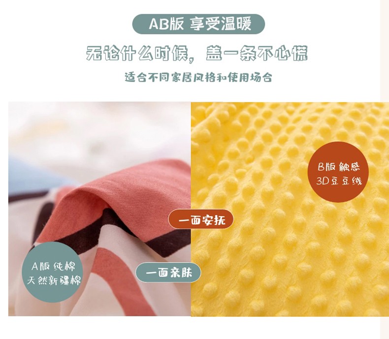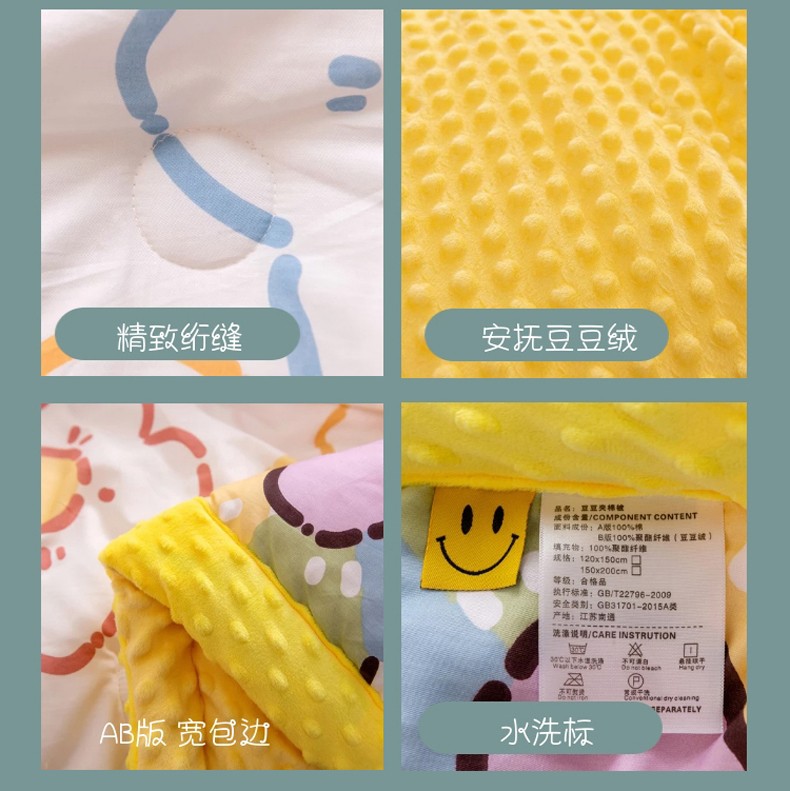 商品名称:十九色 2024新款双人全棉夹棉安抚豆豆毯豆豆被 蛋黄花