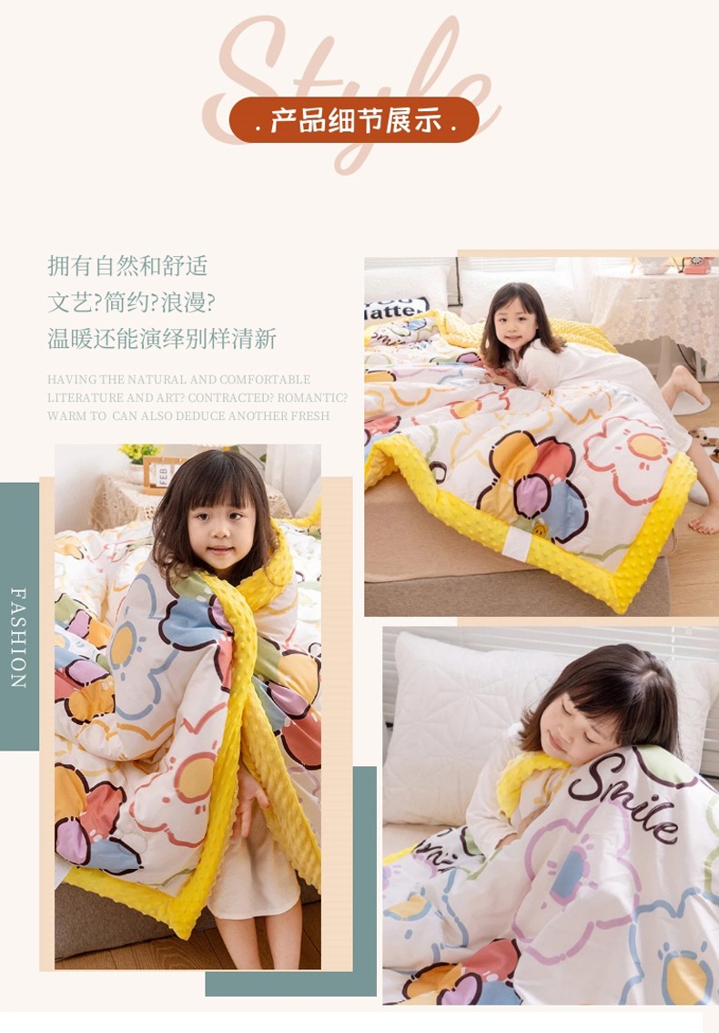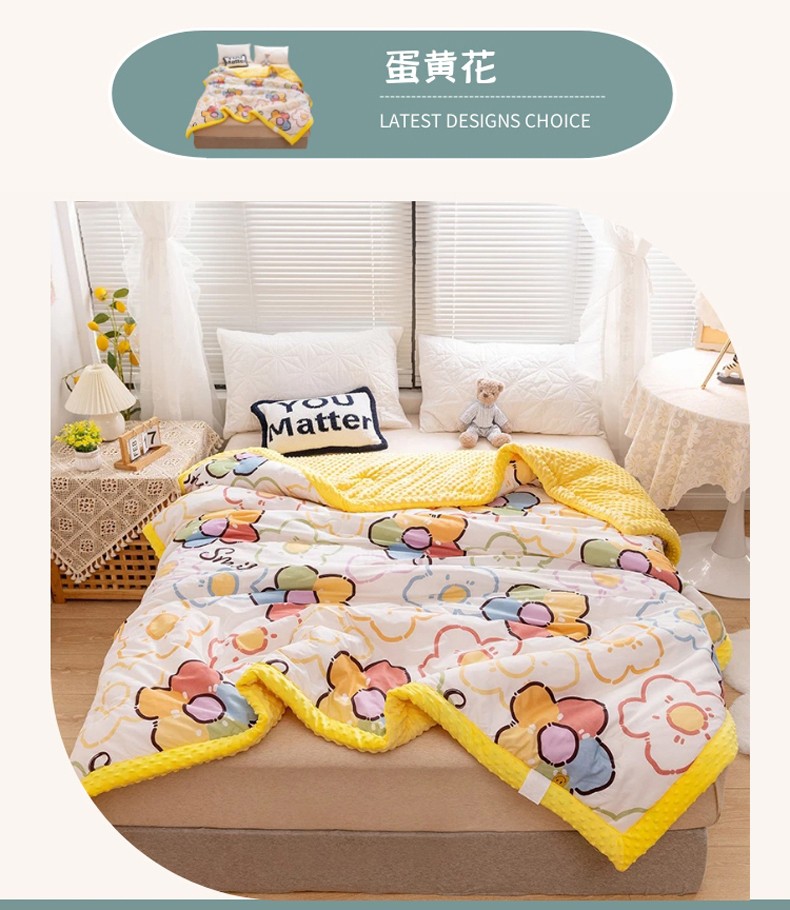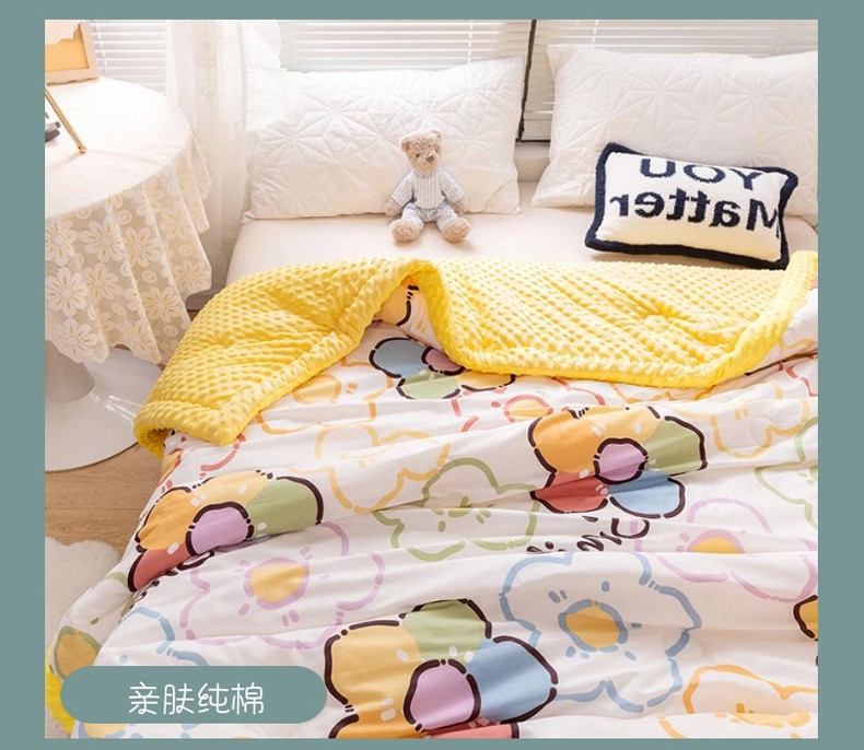 十九色 2024新款双人全棉夹棉安抚豆豆毯豆豆被 蛋黄花