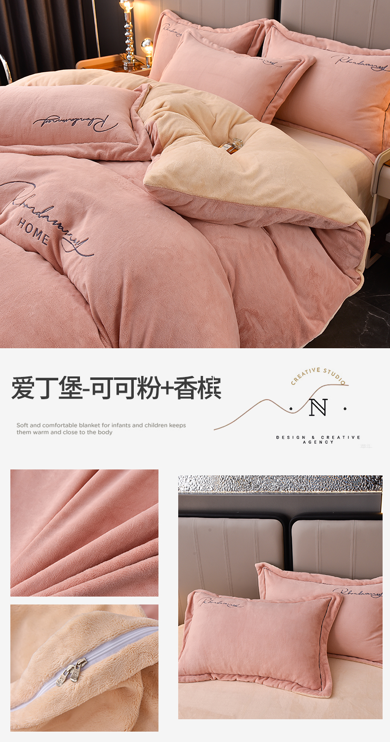 当前位置: 91家纺网 > 商品网购 > 床品套件 > 四件套 > 牛奶绒四件套 > 笙意家纺 2025新款牛奶绒刺绣四件套-爱丁堡系列 爱丁堡-可可粉+香槟