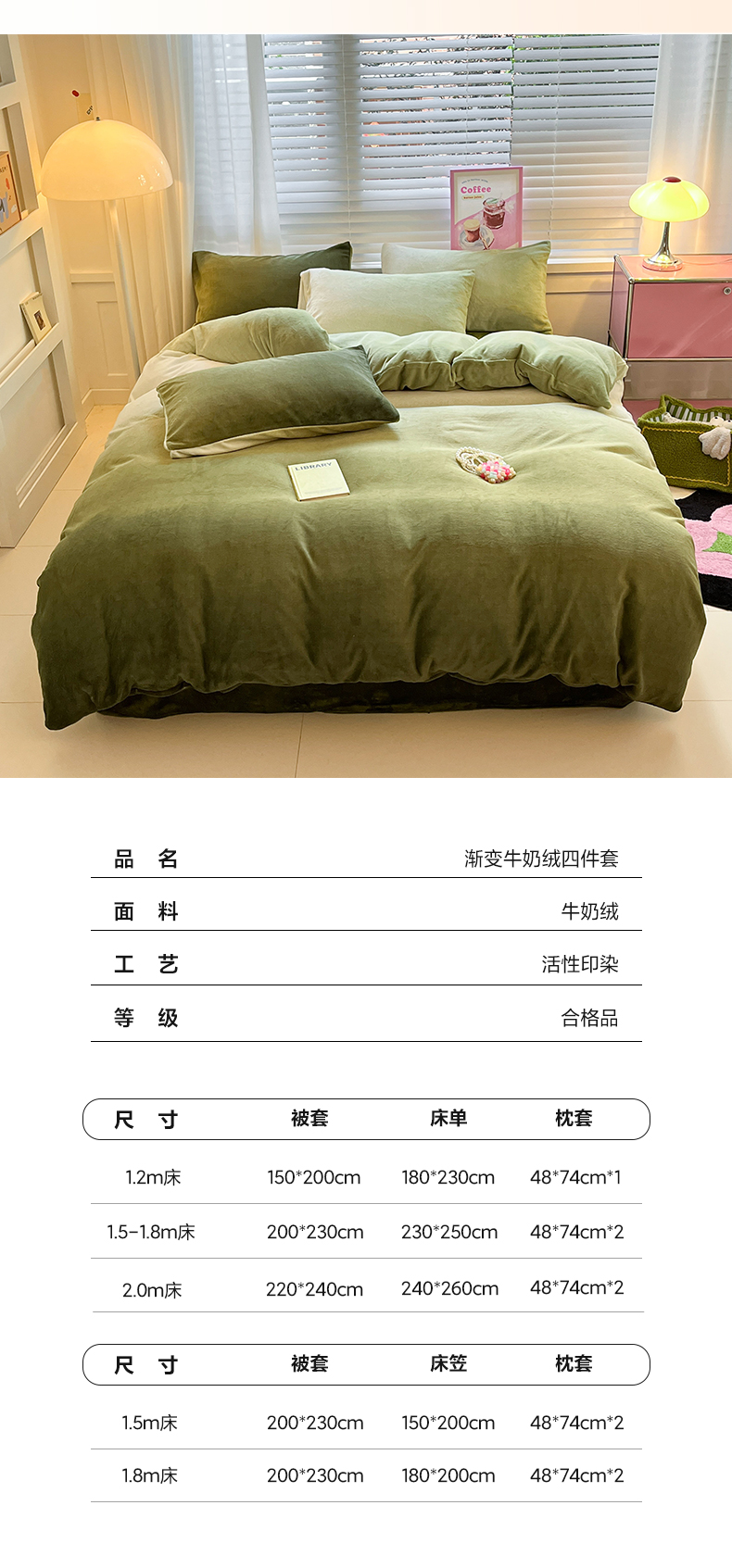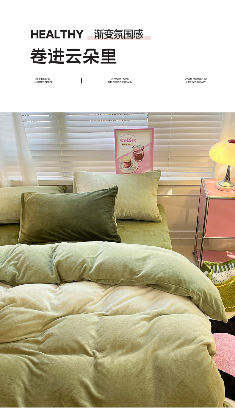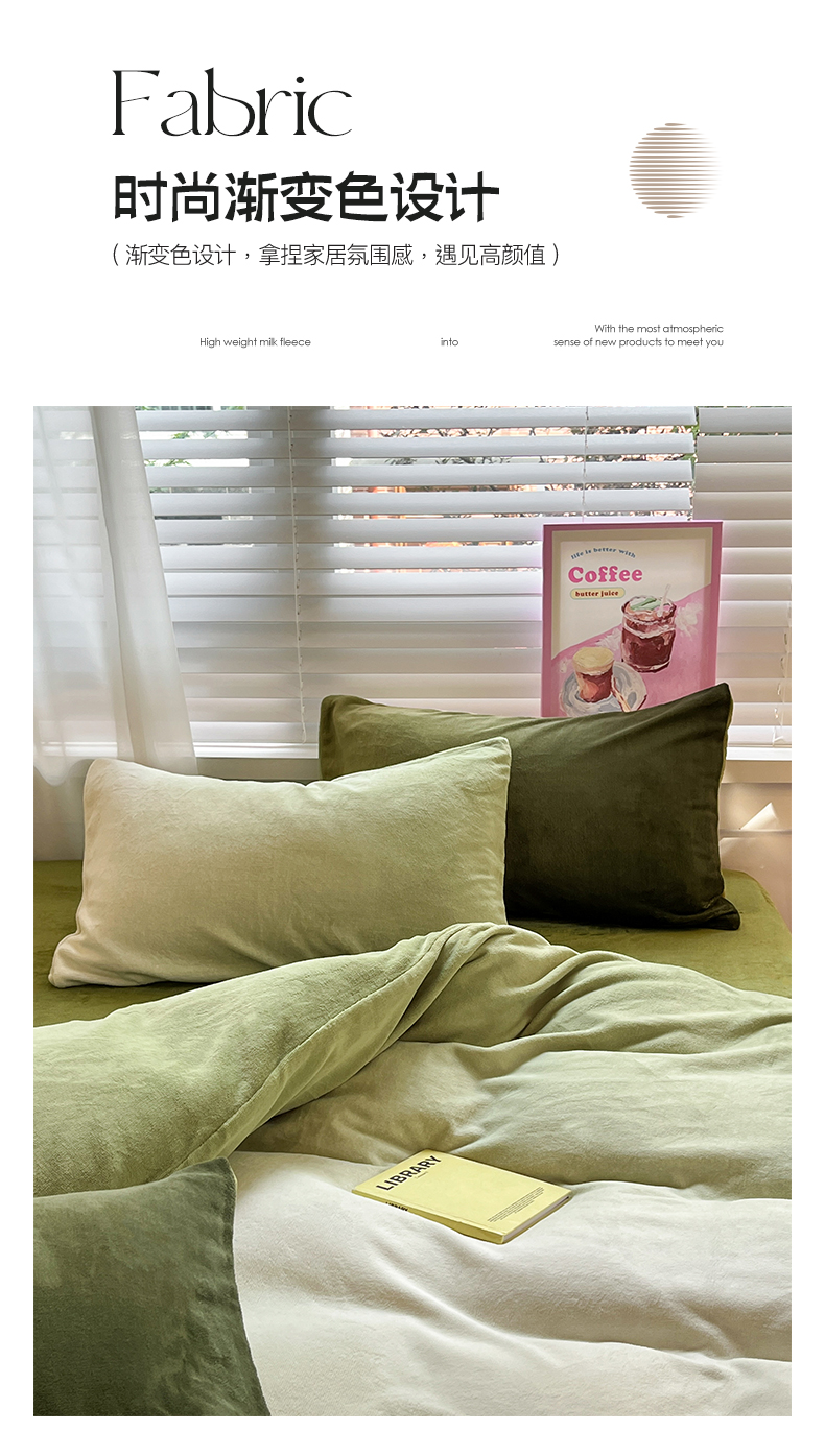 商品名称:雅居纺家纺 2023渐变系列牛奶绒四件套 渐变绿