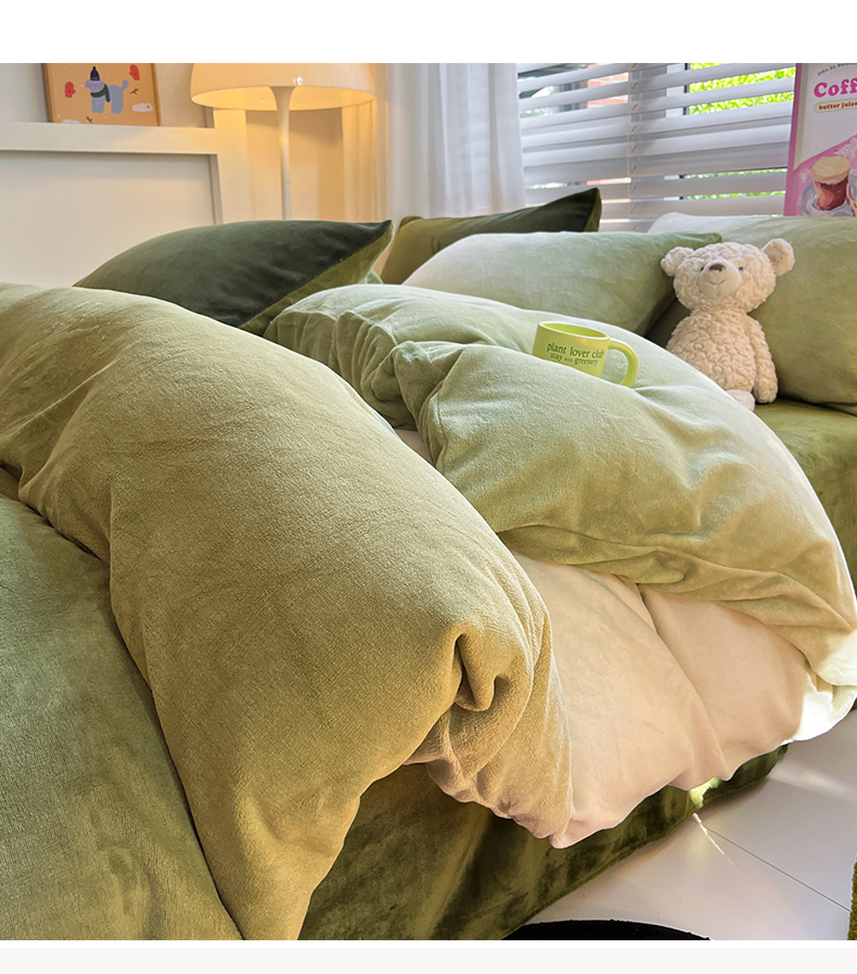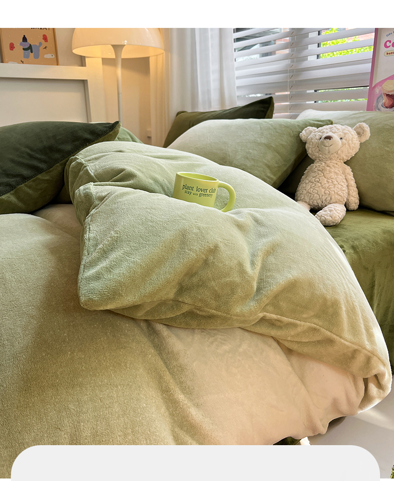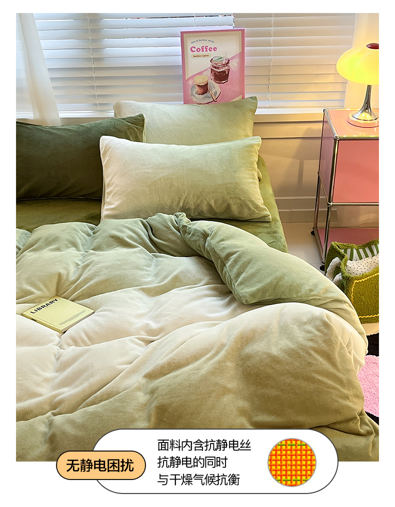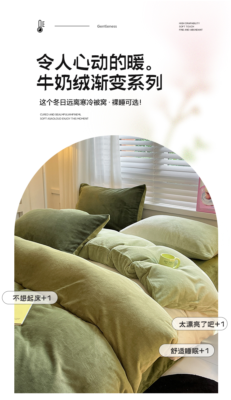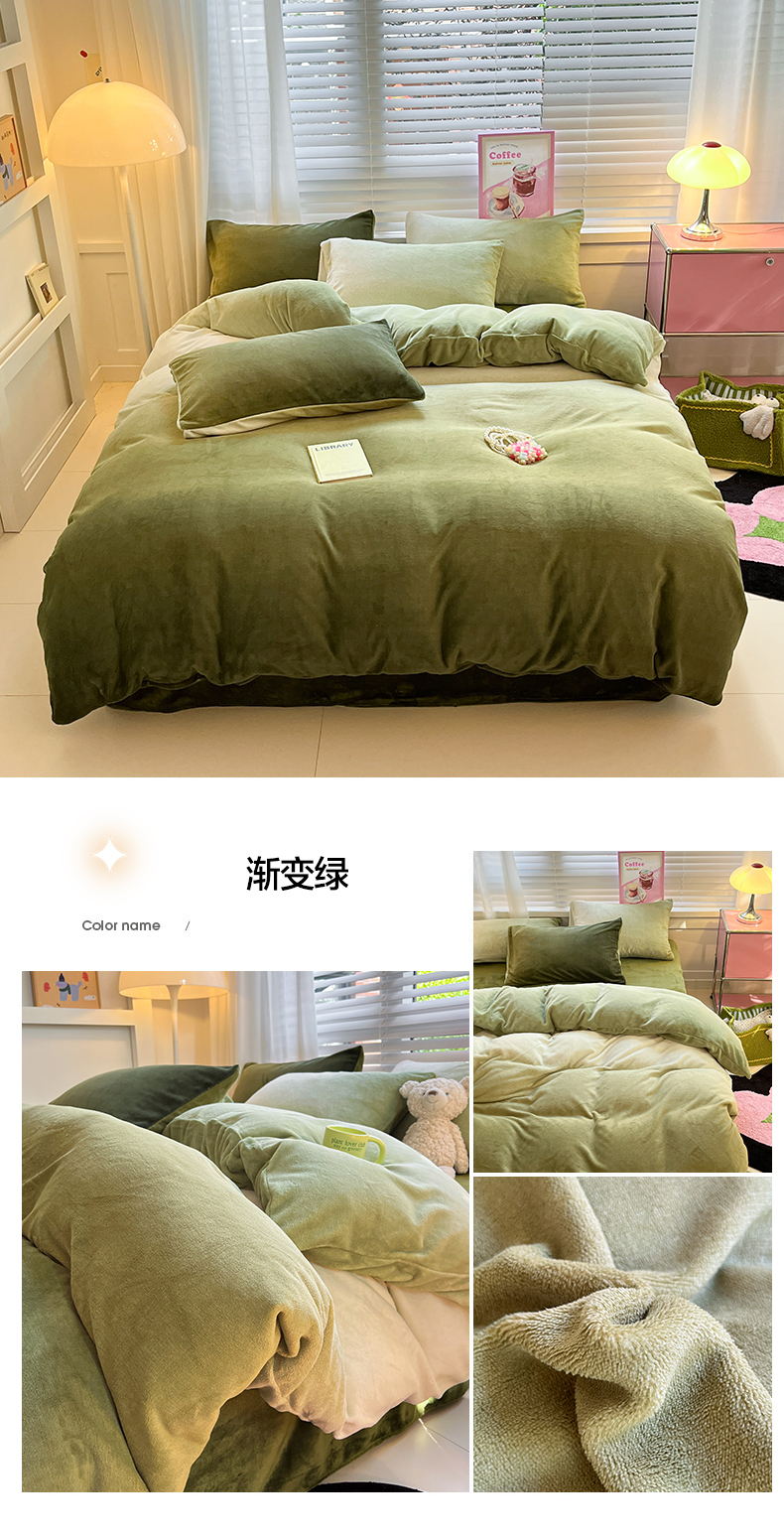 商品名称:雅居纺家纺 2023渐变系列牛奶绒四件套 渐变绿
