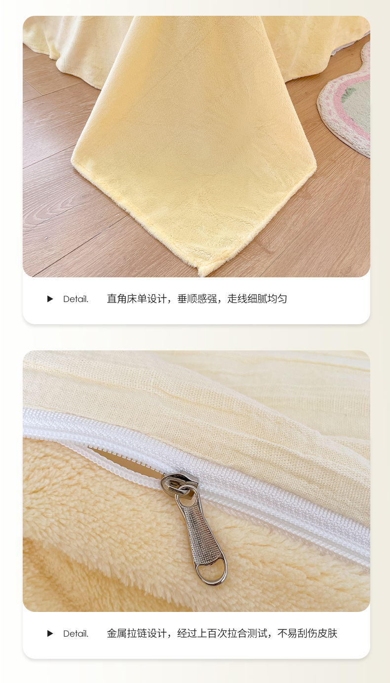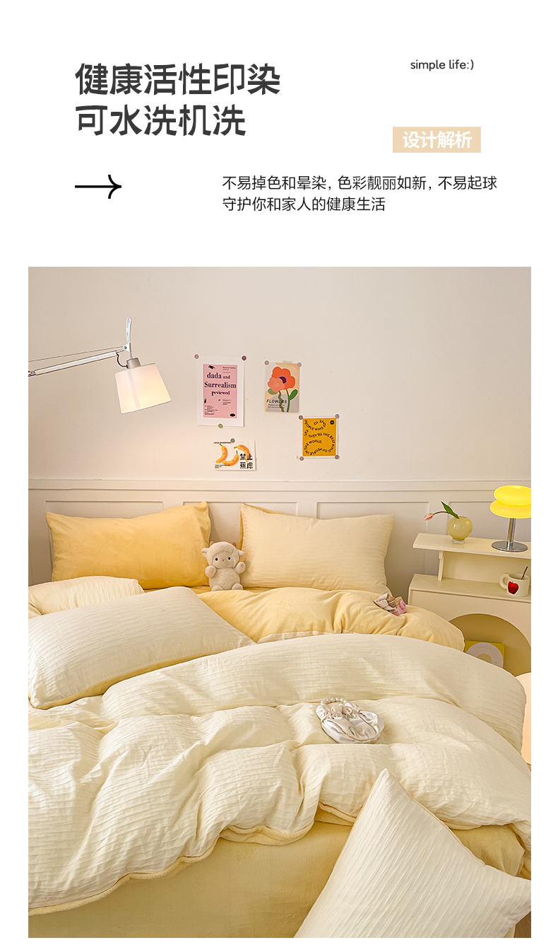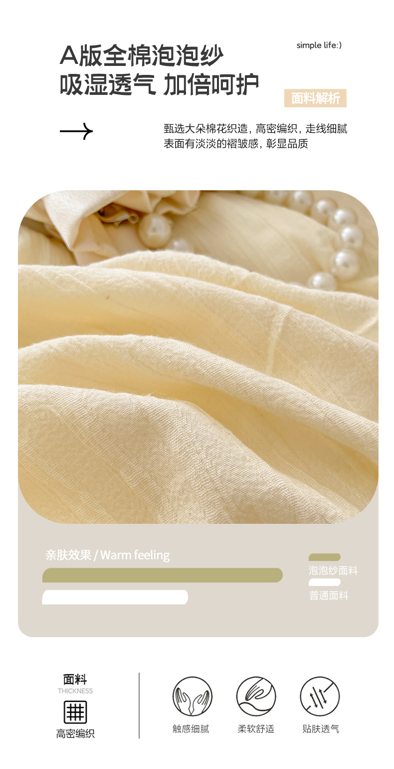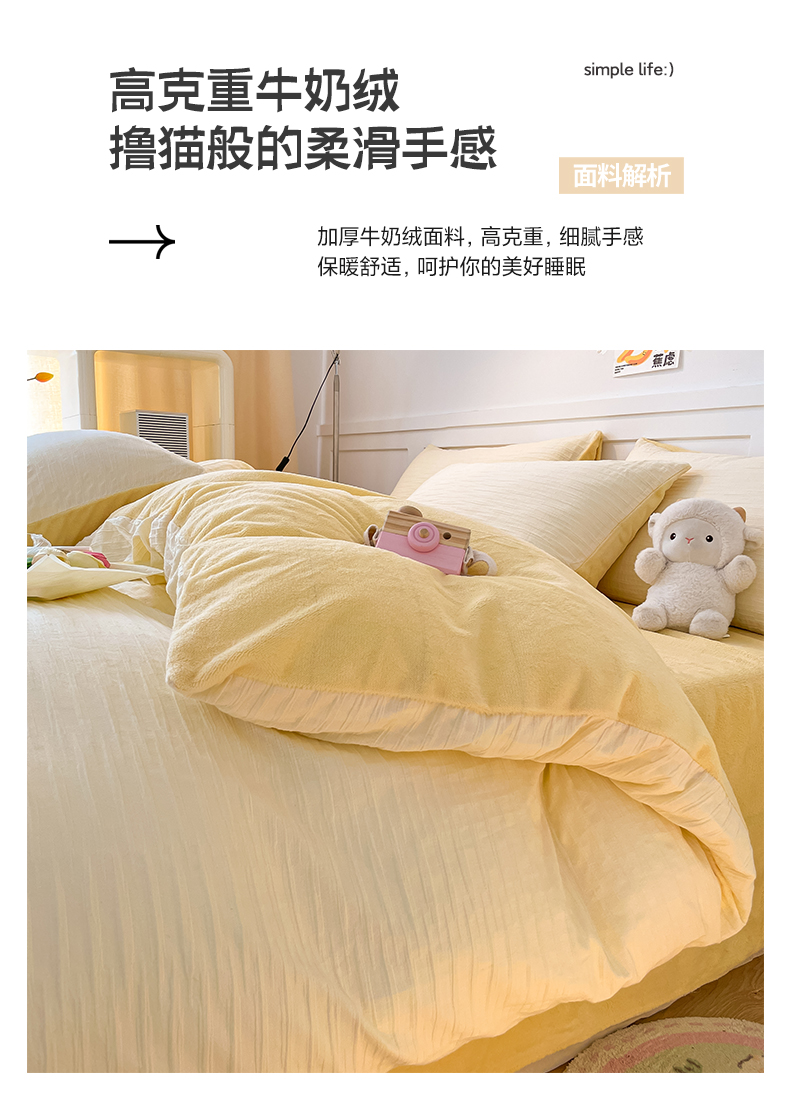 商品名称:雅居纺家纺 2023新款全棉泡泡纱牛奶绒四件套 泡泡纱+绒-奶酪黄