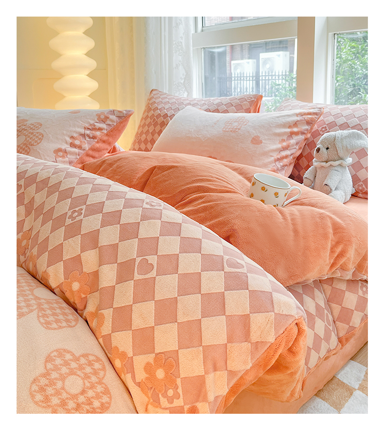 商品名称:雅居纺家纺 2023新款立体雕花牛奶绒幸运花系列 幸运花-桔