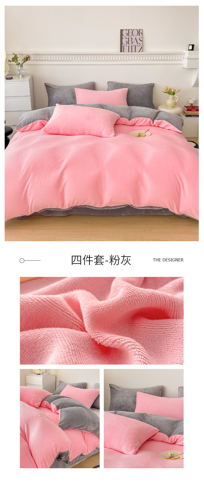 当前位置: 91家纺网 > 商品网购 > 床品套件 > 四件套 > 化纤普通四件套 > 莎臣豹 2025新款牛奶绒双拼撞色系四件套 粉灰
