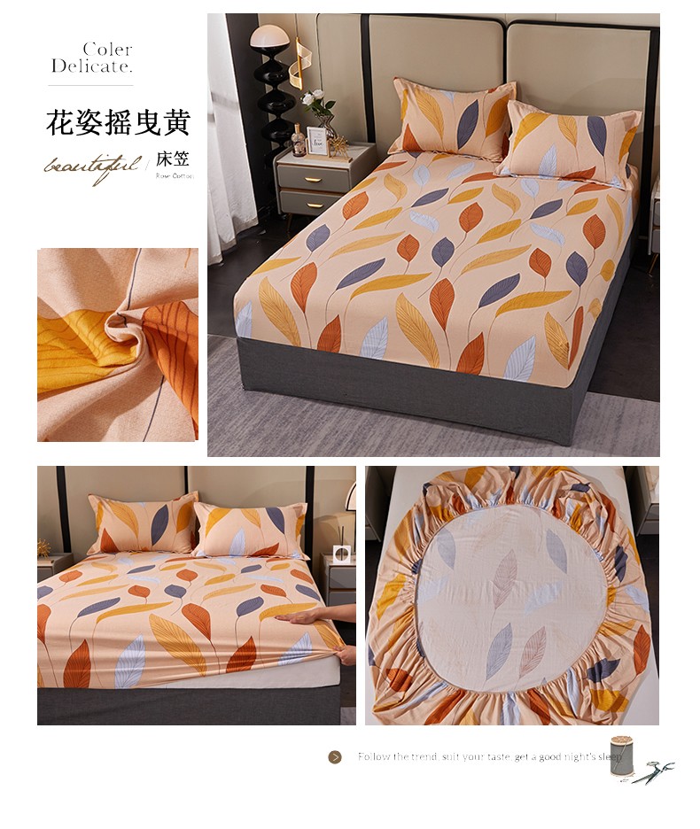 商品名称:晶缦 2023新款格林系列全棉活性磨毛多规格床笠 花姿摇曳黄
