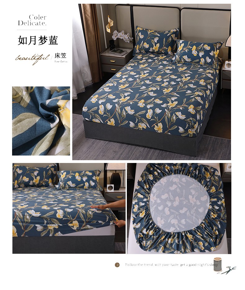 商品名称:晶缦 2023新款格林系列全棉活性磨毛多规格床笠 如月梦蓝