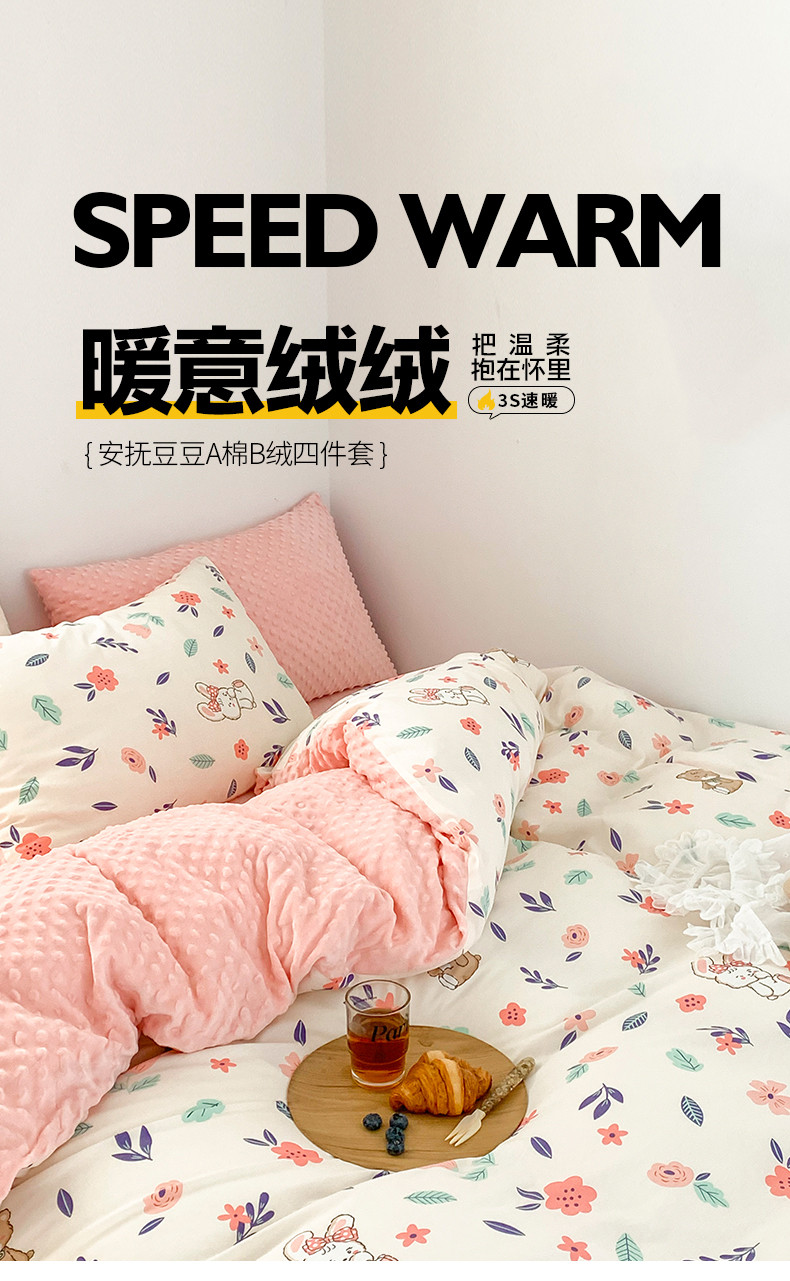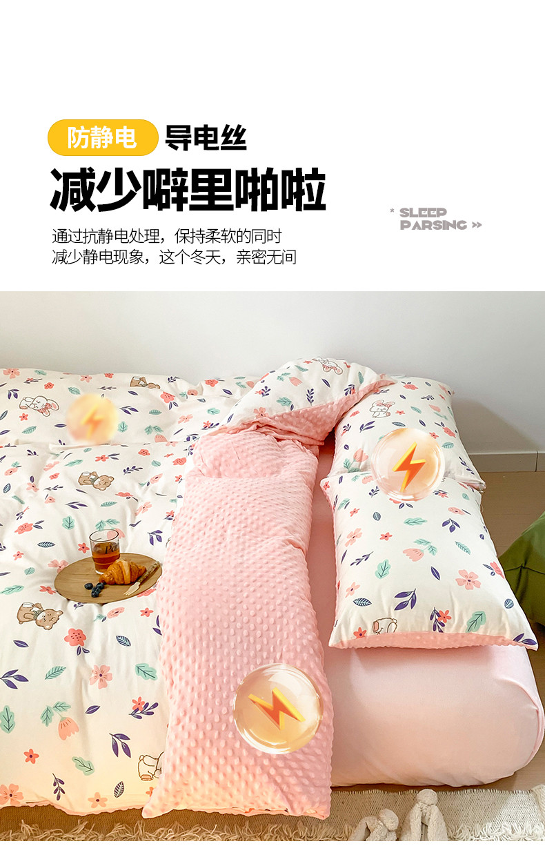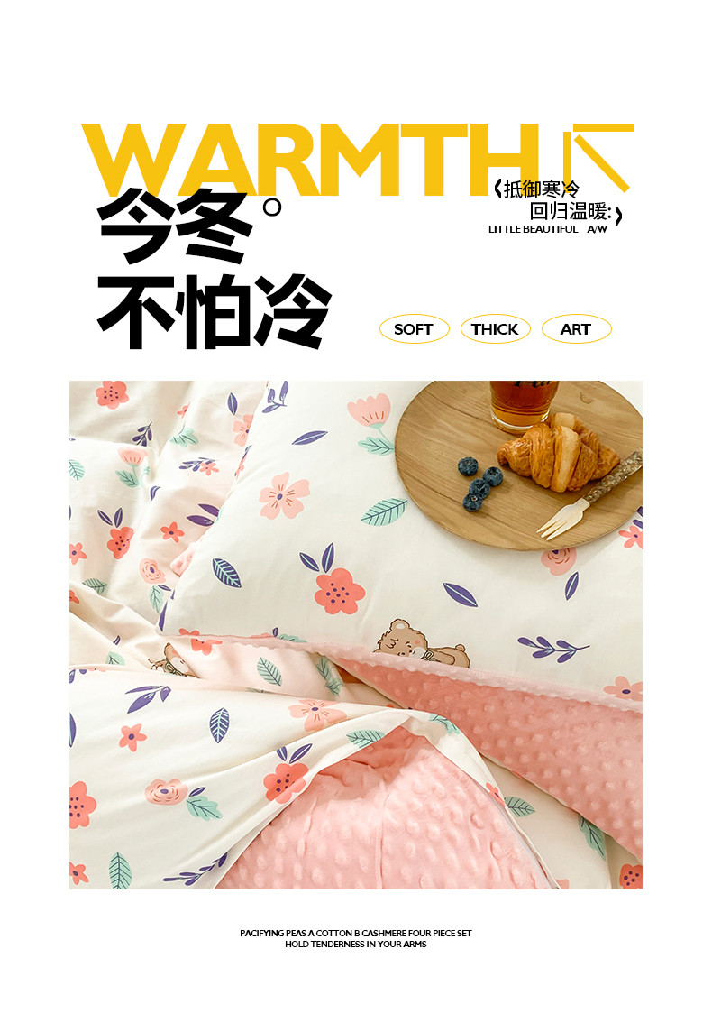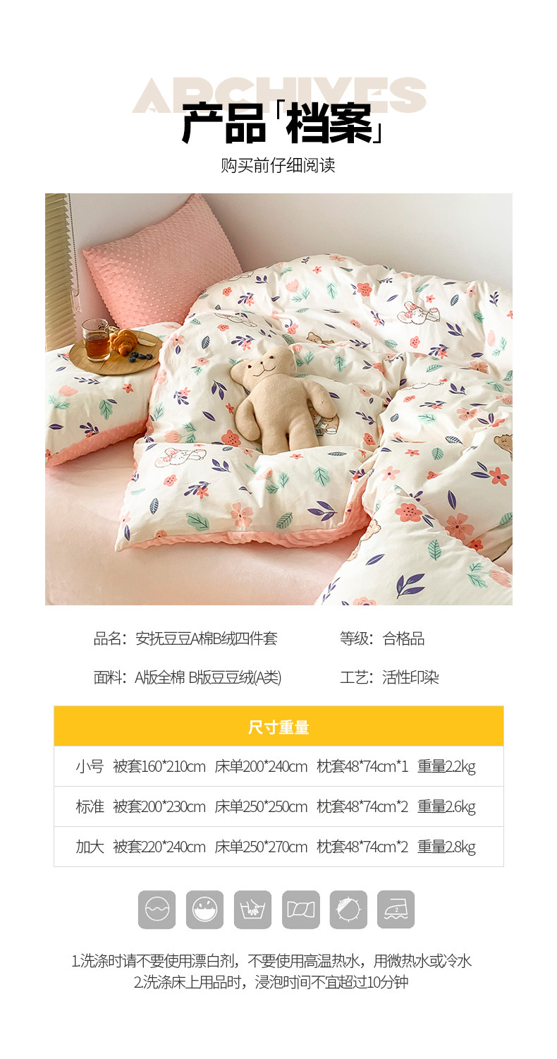 商品名称:金奇达 2023新款豆豆棉绒四件套 花花熊