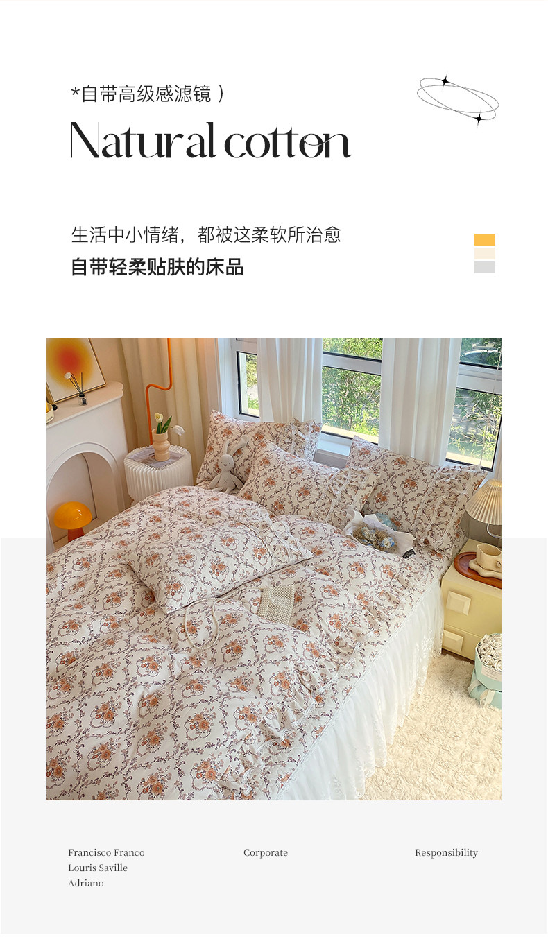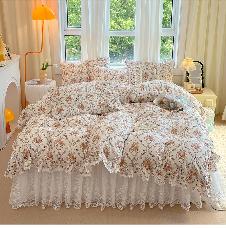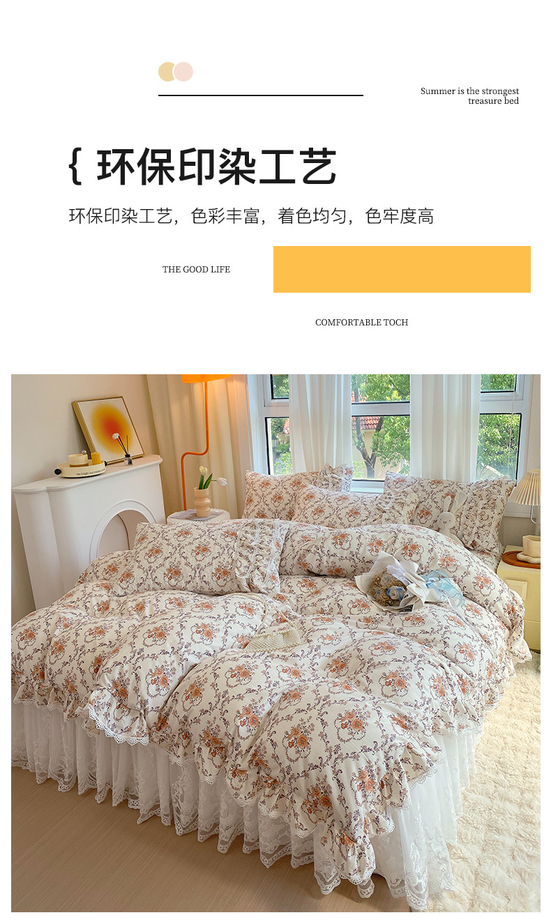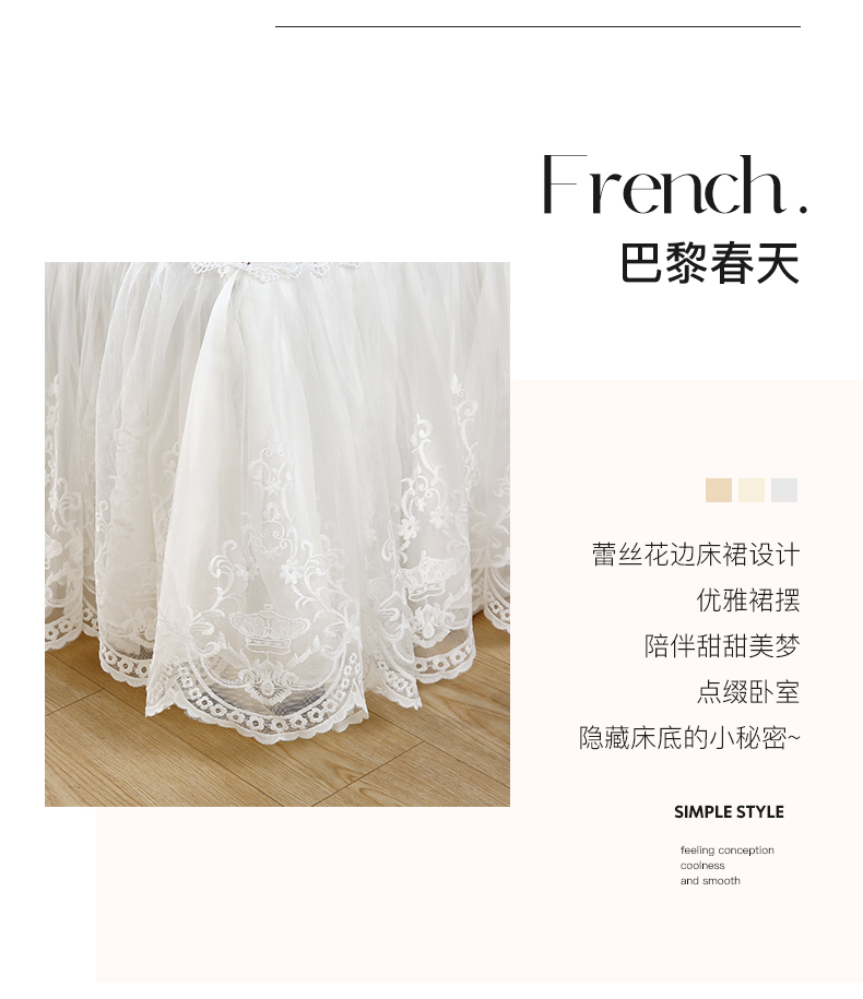 当前位置: 91家纺网 > 商品网购 > 床品套件 > 四件套 > 全棉普通四件套 > 罗艺轩 2024新款全棉蕾丝夹棉床裙巴黎春天系列四件套 赛娅
