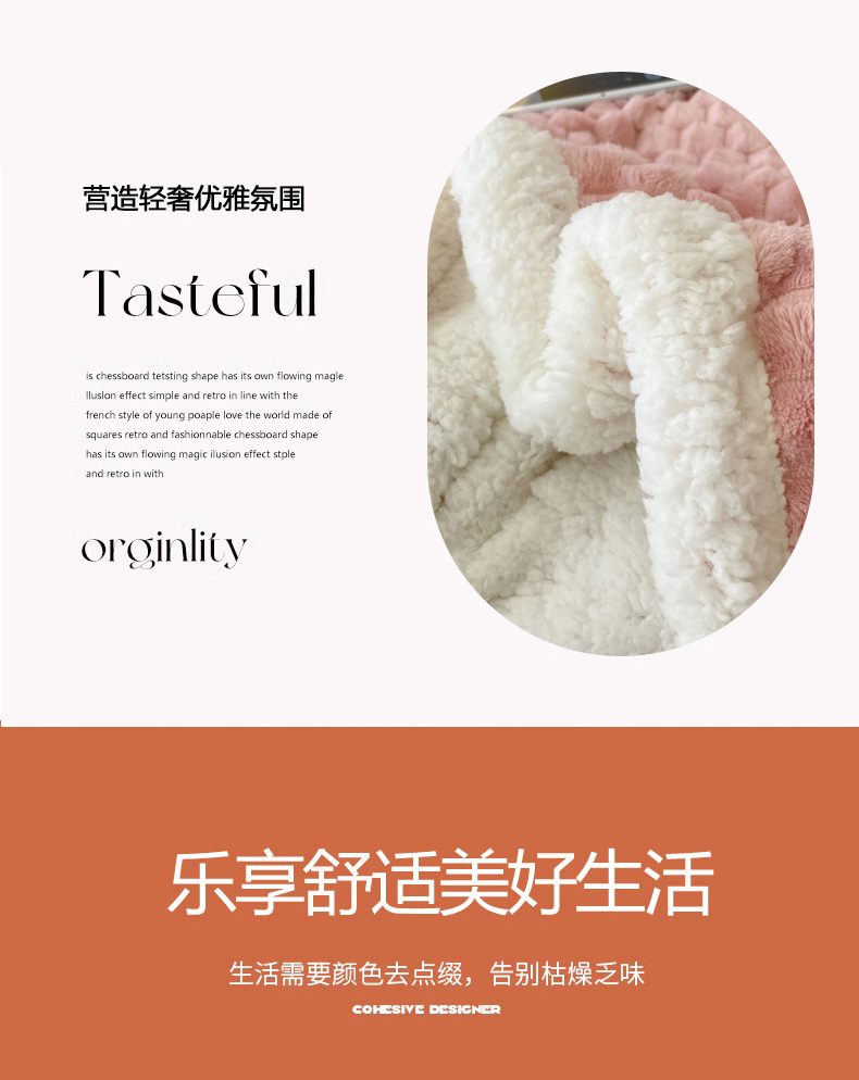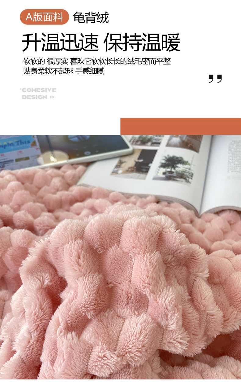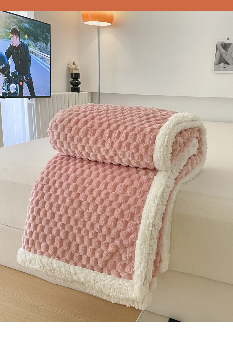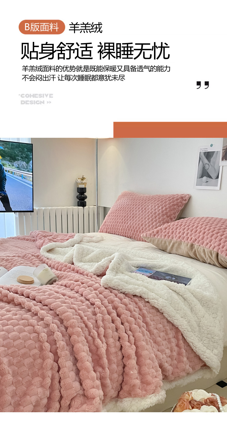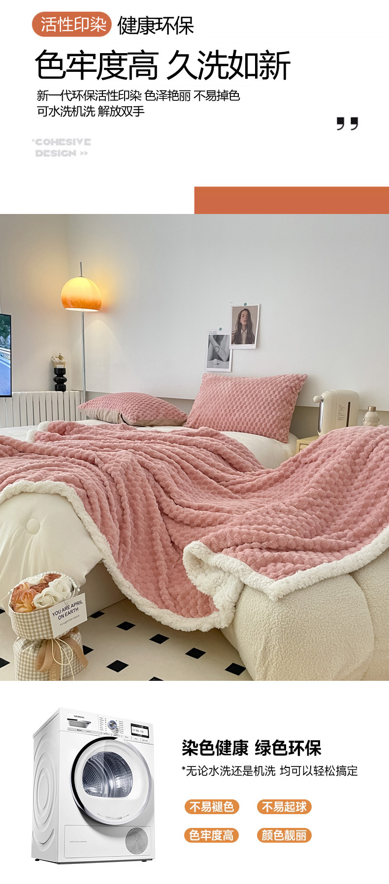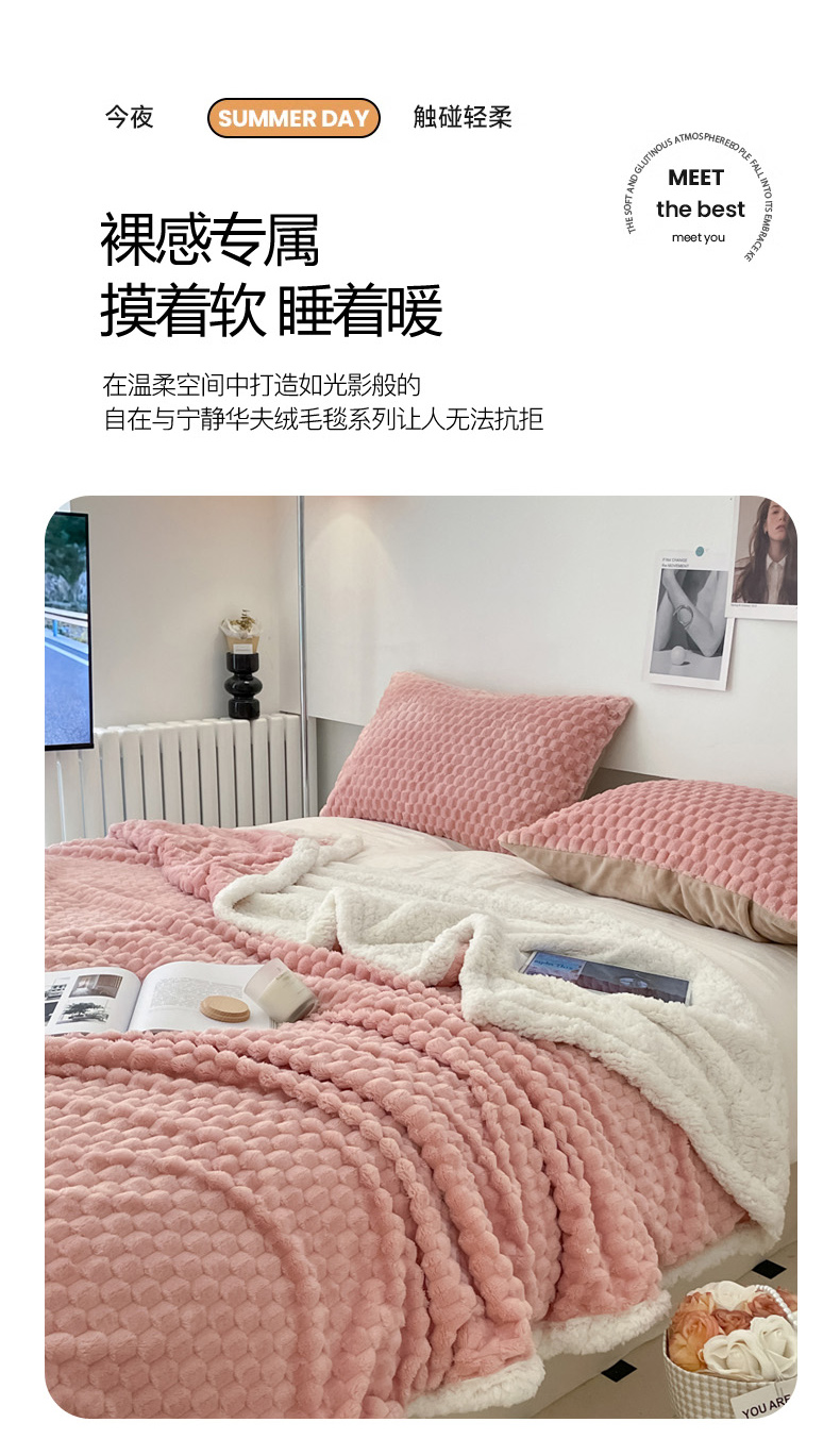 商品名称:沐慕 2023新款纯色简约龟背绒拼羊羔绒毛毯 樱花粉