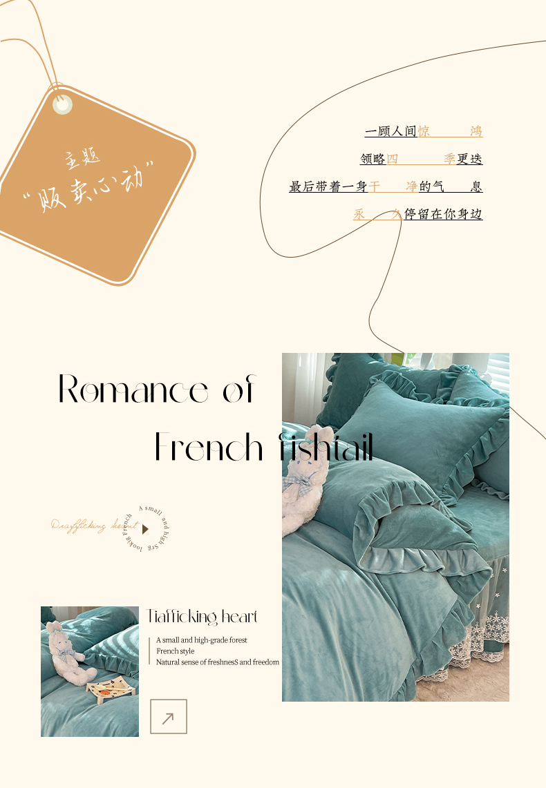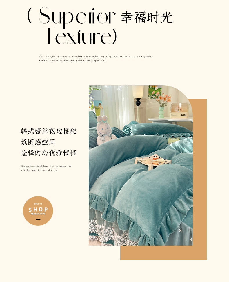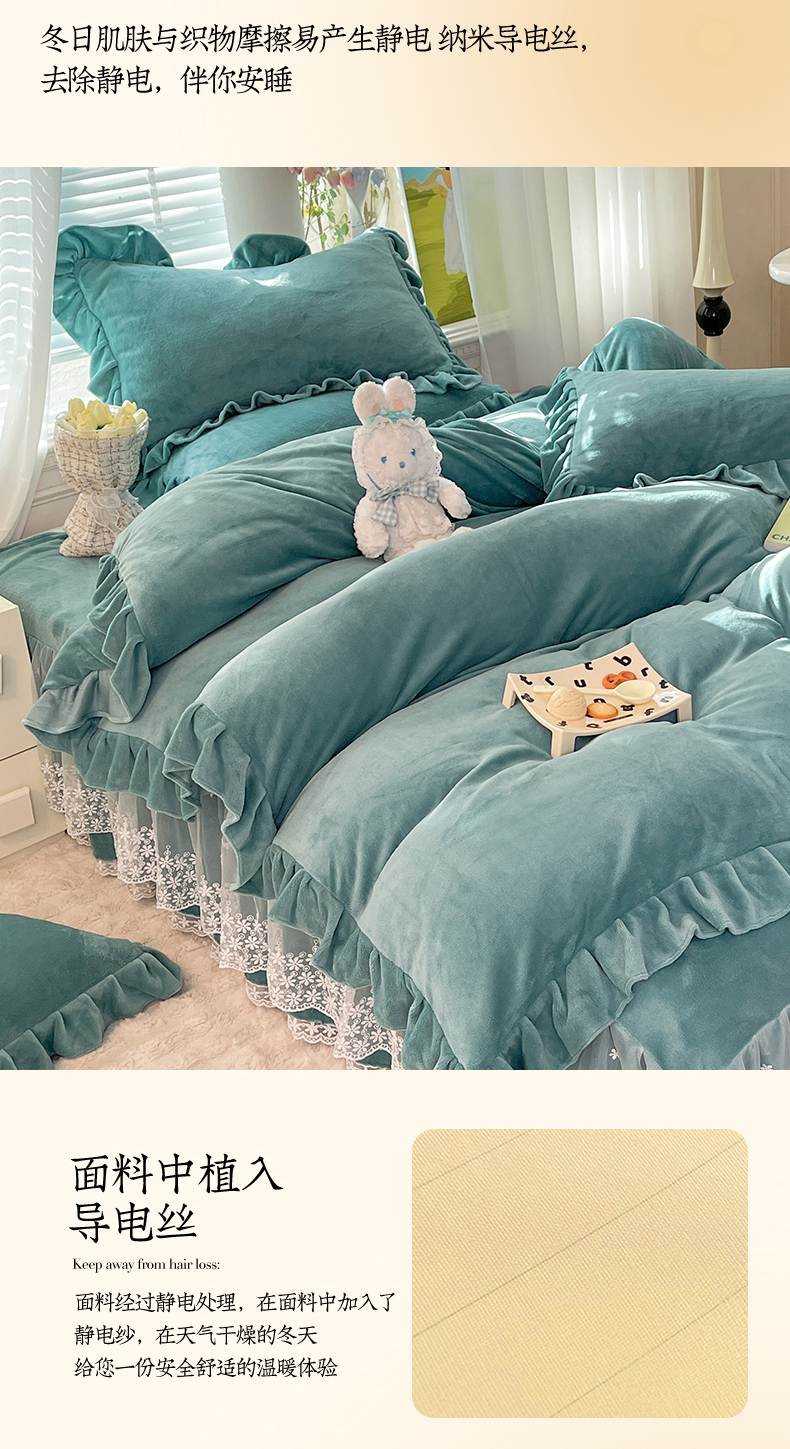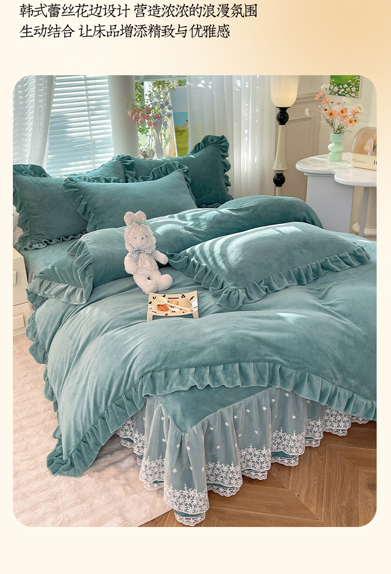 商品名称:【8斤重】2025新款秋冬加厚牛奶绒床裙款四件套法式浪漫蕾丝花边工艺-遇见系列 遇见-温绿