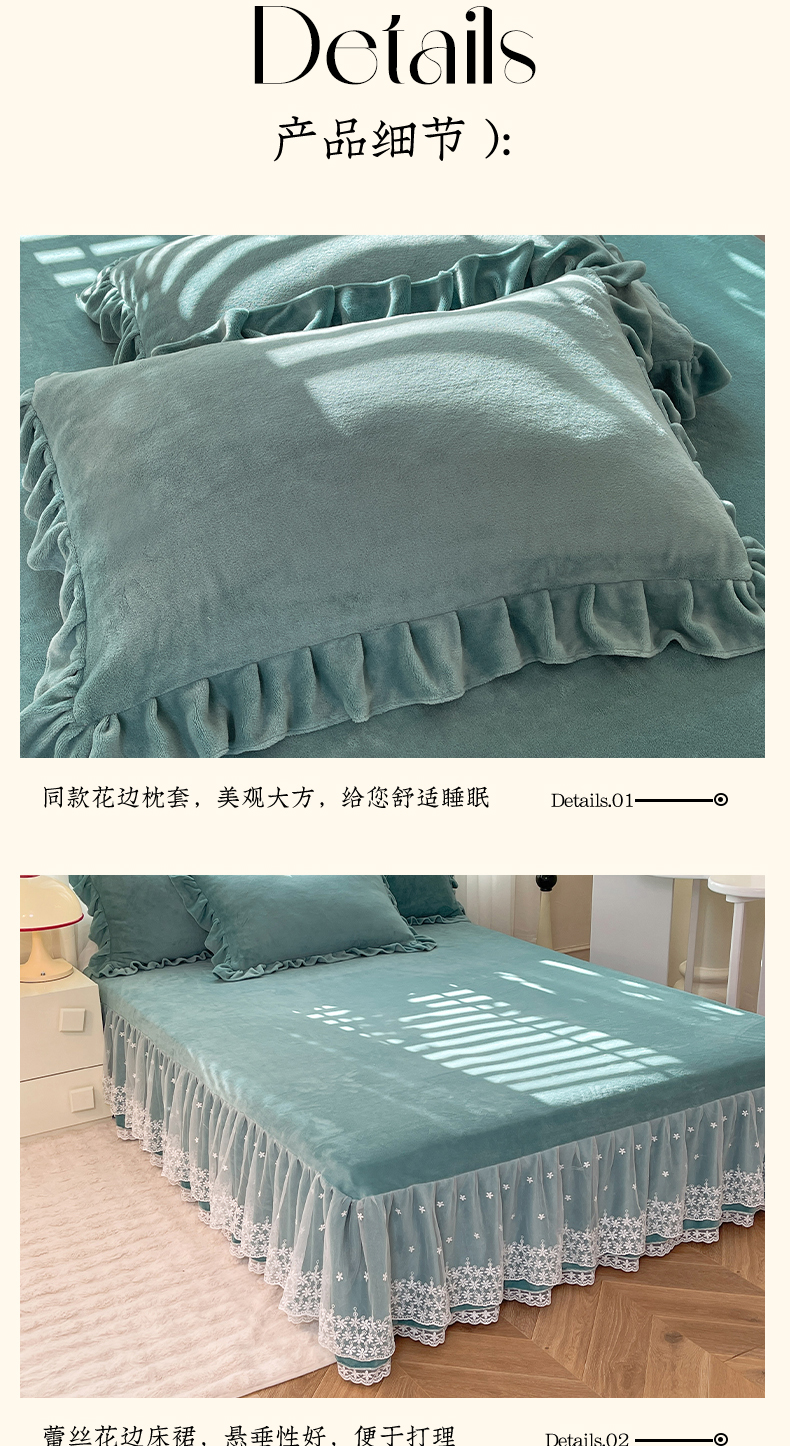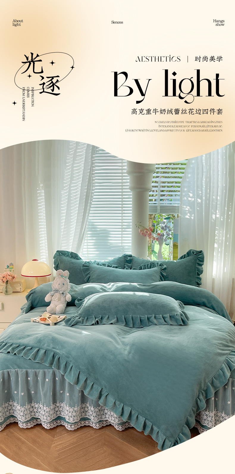 总【8斤重】2025新款秋冬加厚牛奶绒床裙款四件套法式浪漫蕾丝花边工艺-遇见系列,遇见-薄荷绿,遇见-高级灰,遇见-红豆沙,遇见-浪漫紫,遇见-天空蓝,遇见-温绿,遇见-香妃橙,遇见-玉色,遇见-暖黄