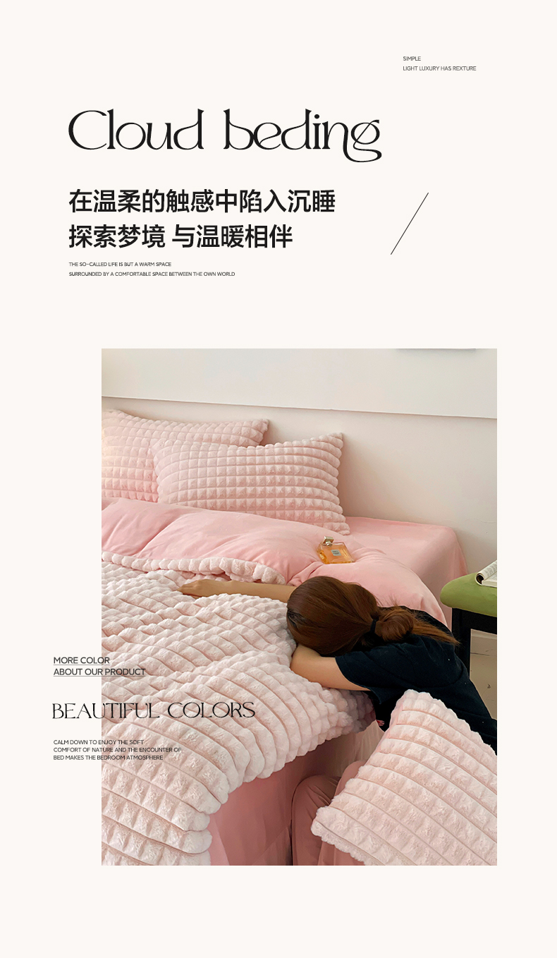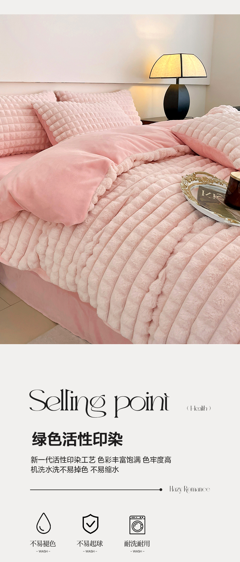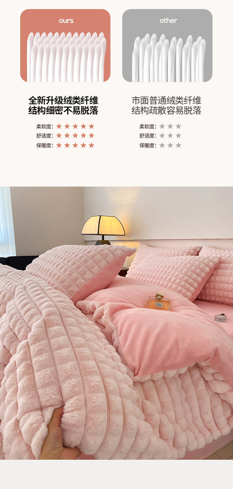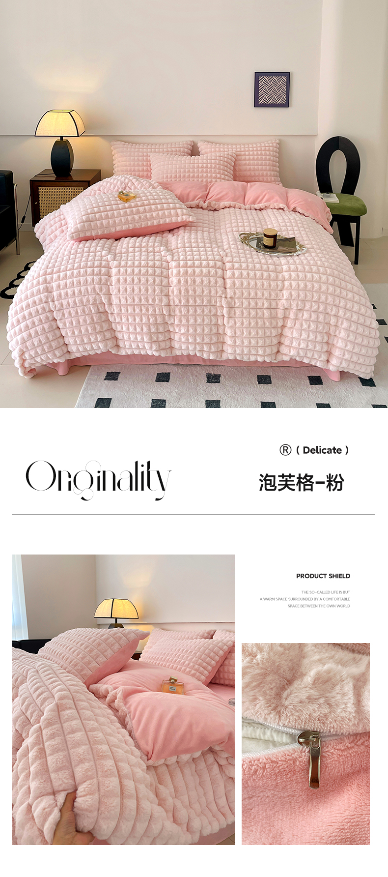 商品名称:民新家纺 2024新款A类母婴级兔毛绒四件套 格子-粉色