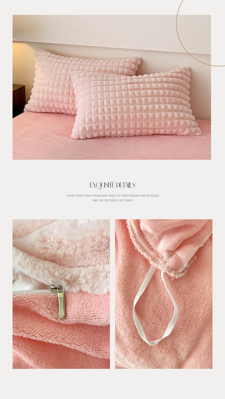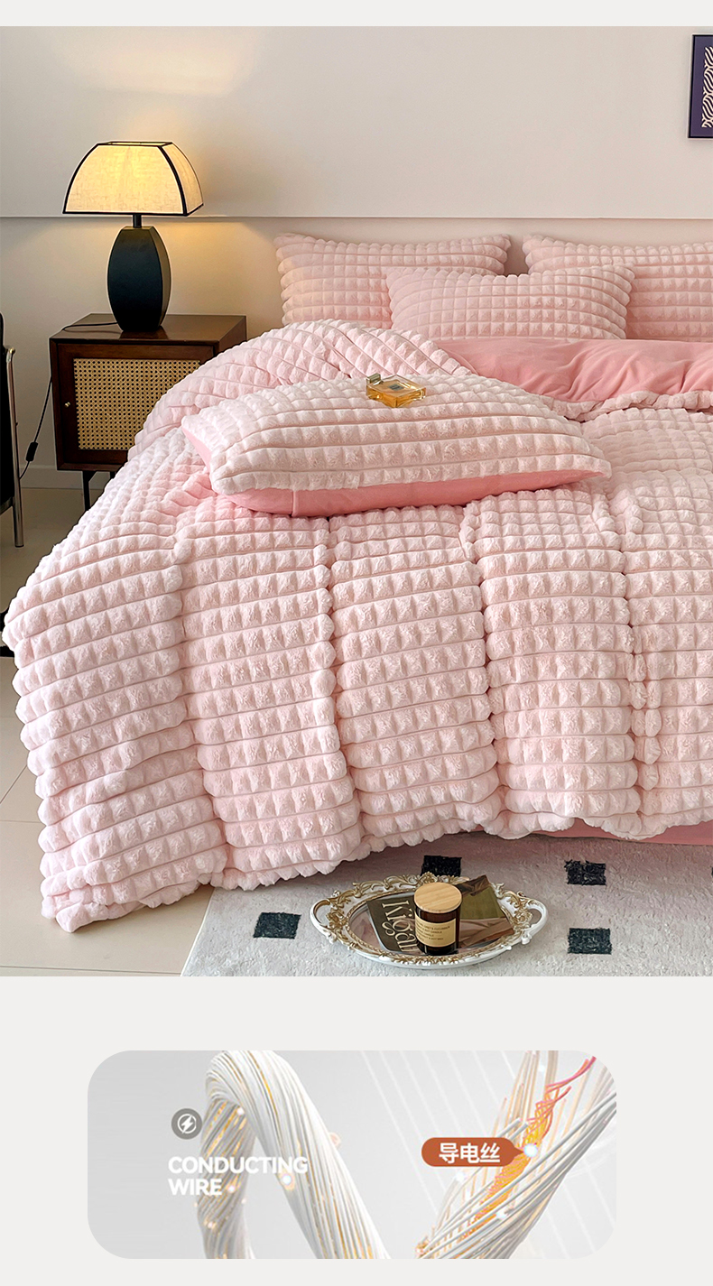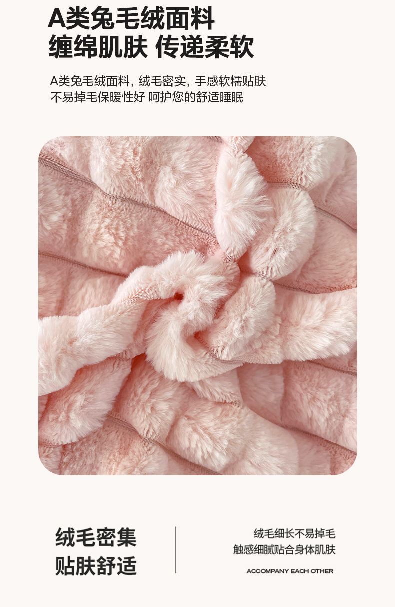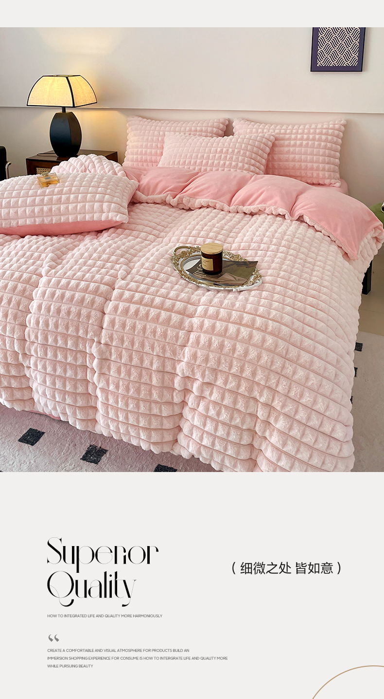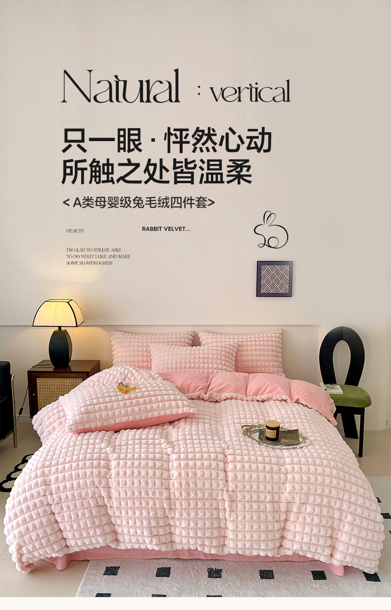 商品名称:民新家纺 2024新款A类母婴级兔毛绒四件套 格子-粉色