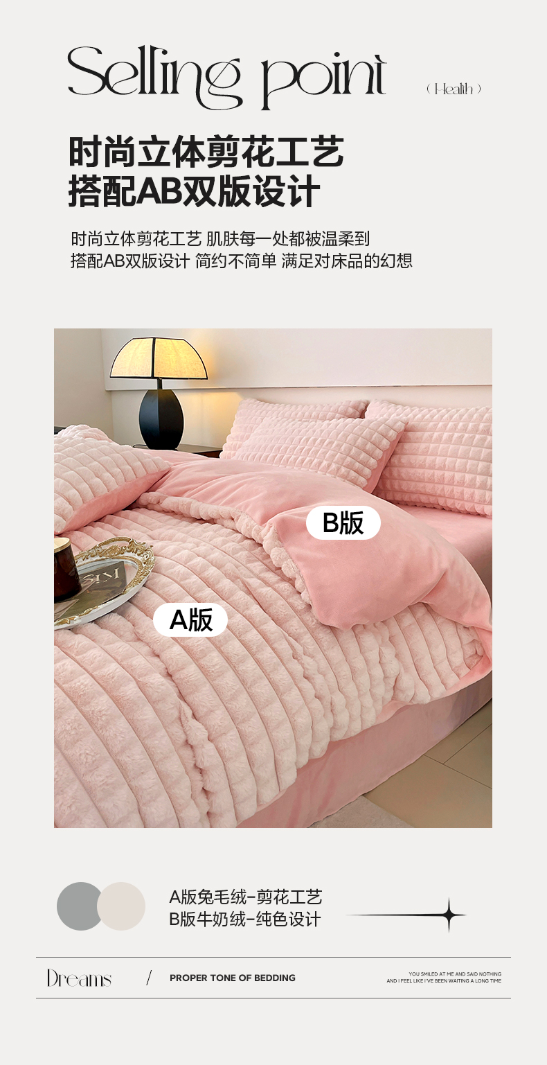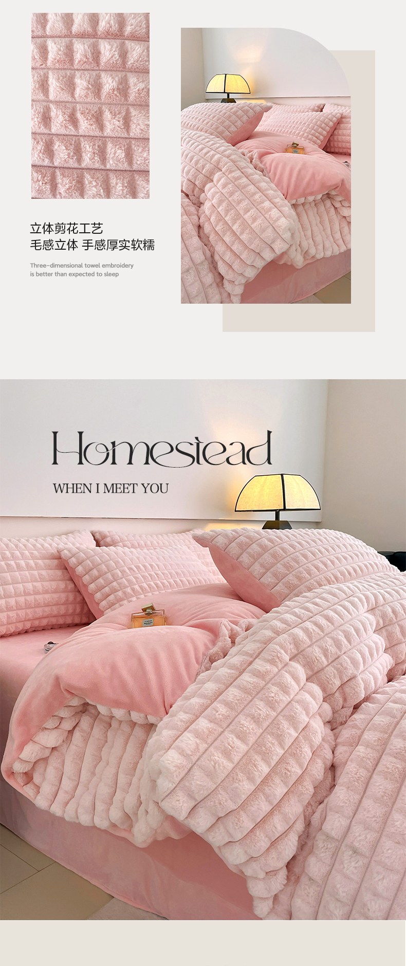(总)民新家纺 2025新款立体烂花兔毛包边款四件套,经典玫瑰-樱花粉,经典玫瑰-浅蓝,经典玫瑰-浅米黄,经典玫瑰-浅紫,经典玫瑰-青柠绿
