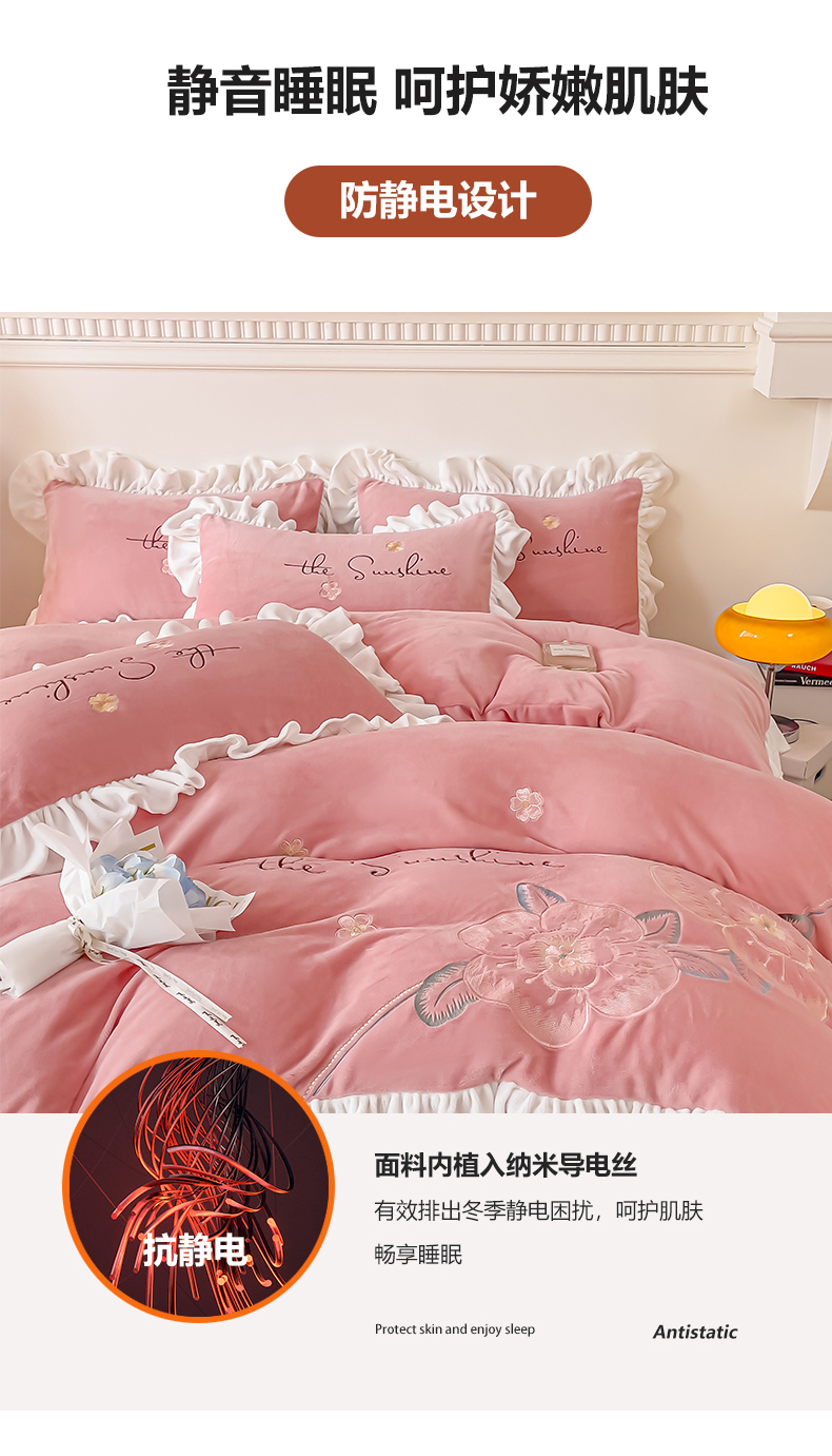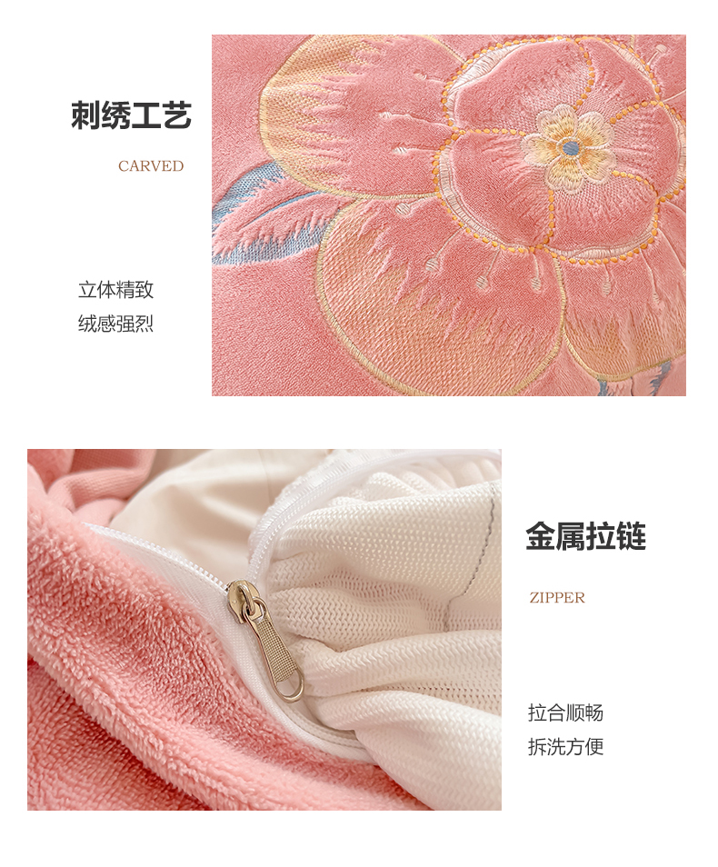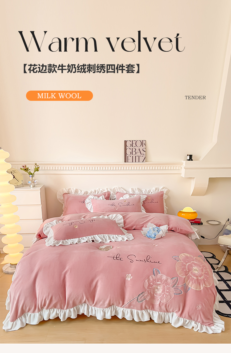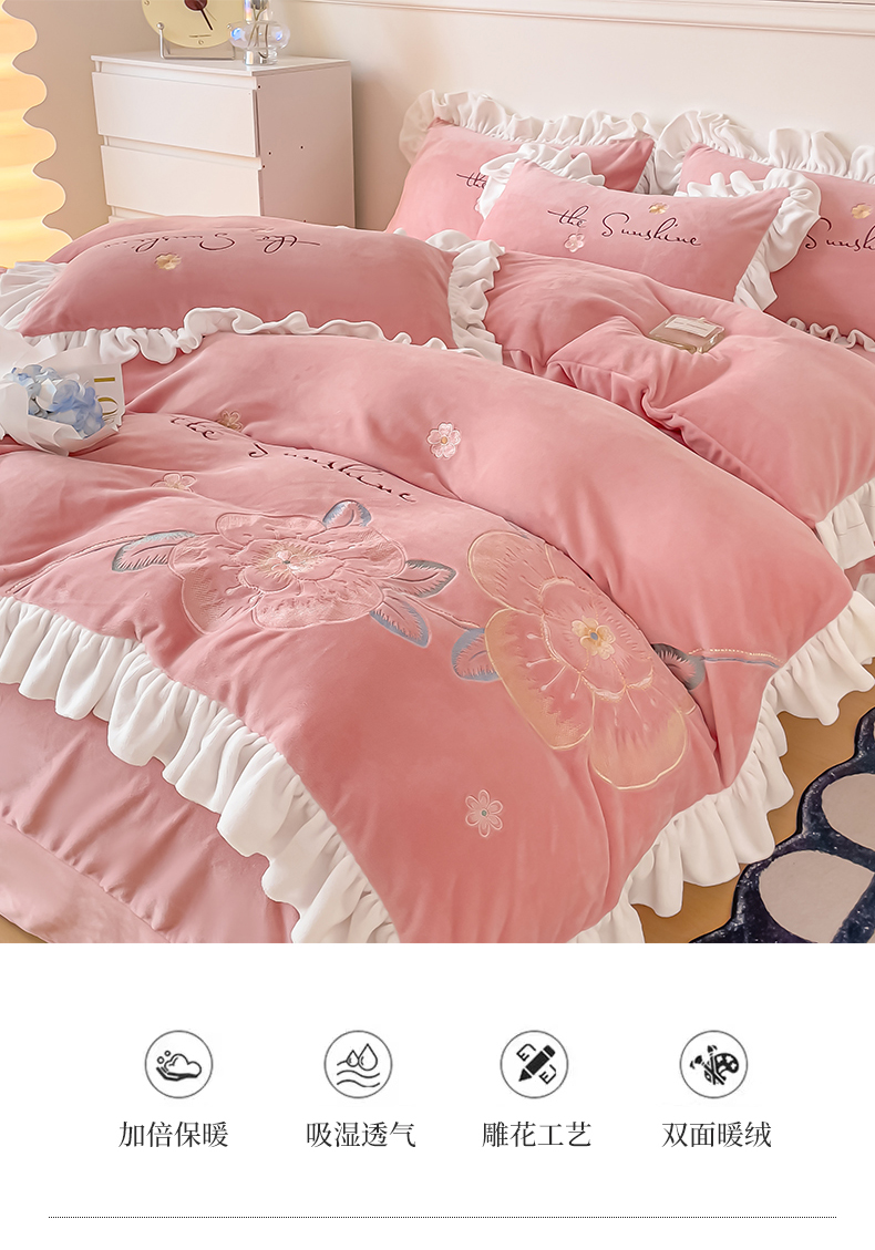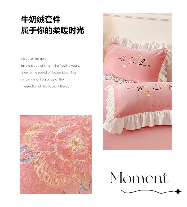 凯美家居 2023新款牛奶绒刺绣四件套 浪漫花语 豆沙