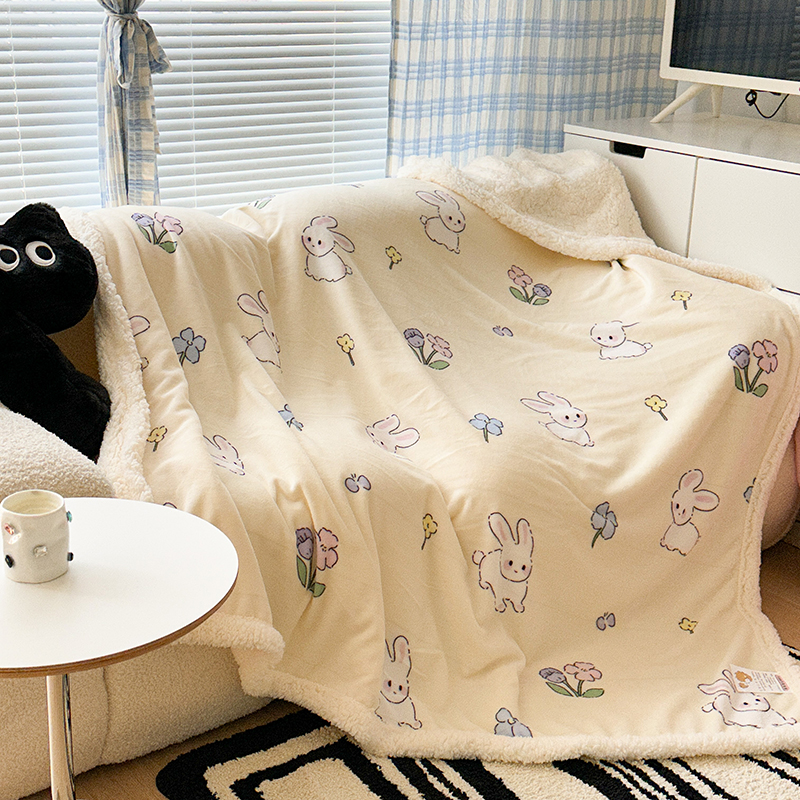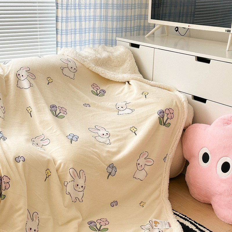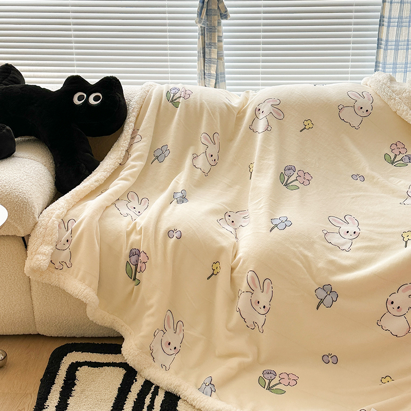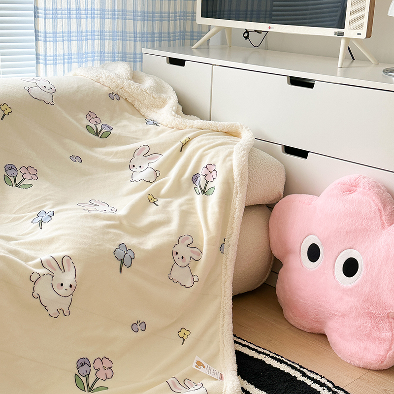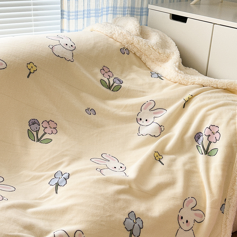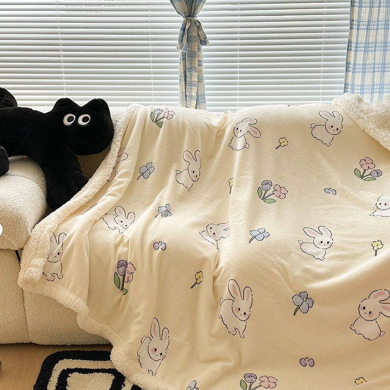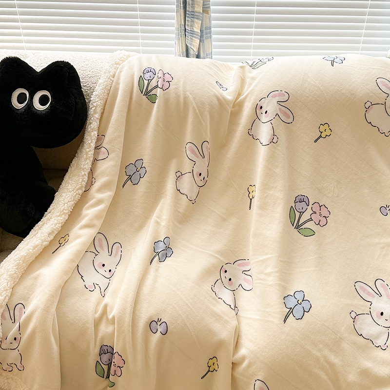 昔可家纺 2023新款ins风牛奶绒羊羔绒印花毛毯(风格二) 花小兔