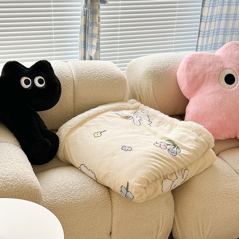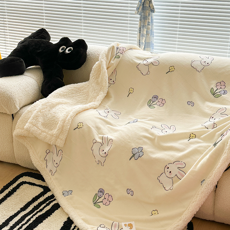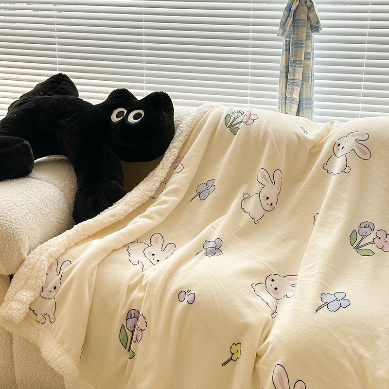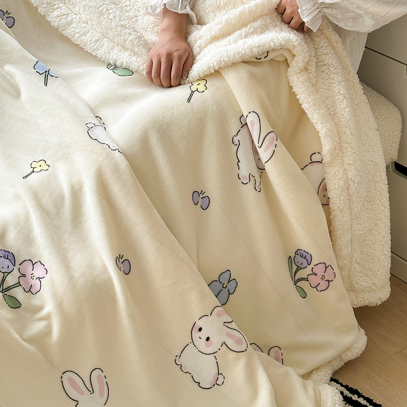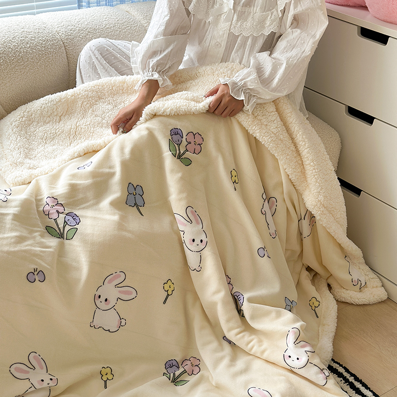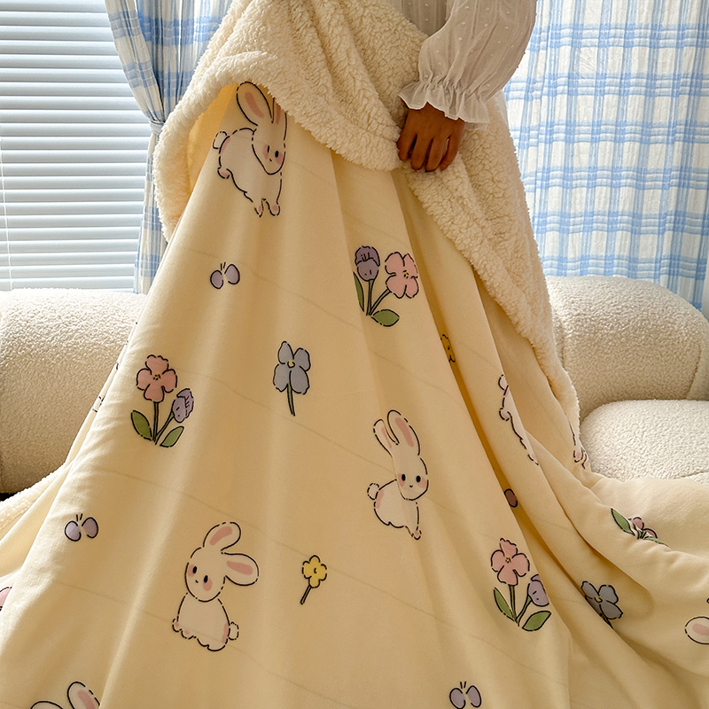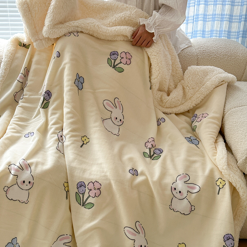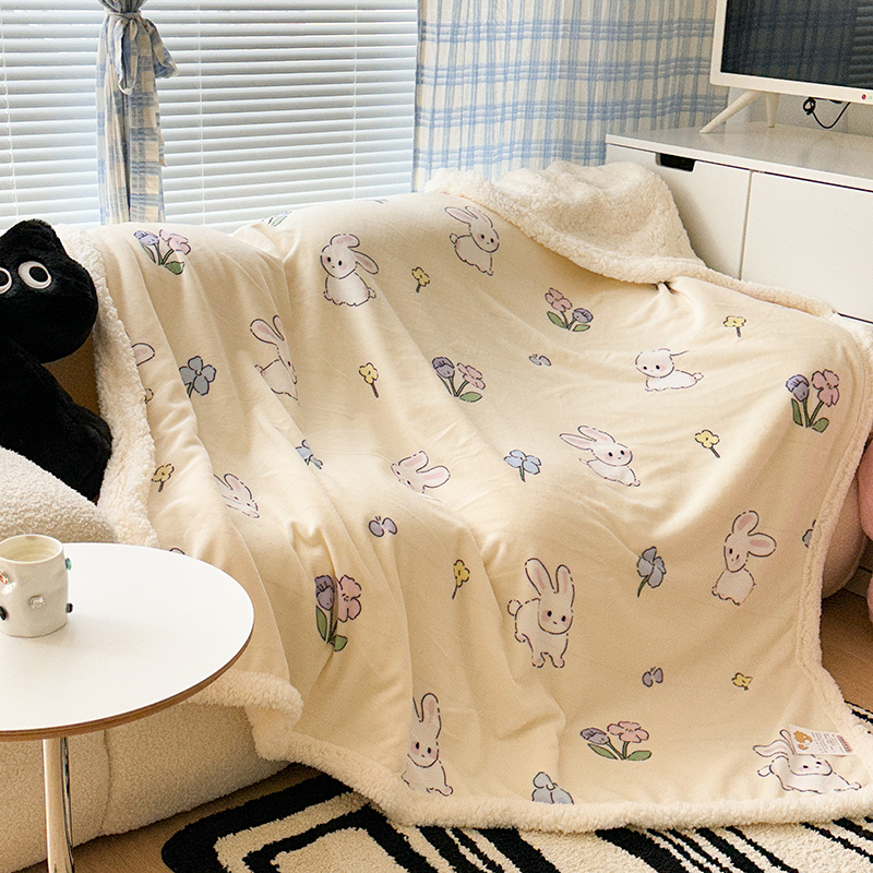 昔可家纺 2023新款ins风牛奶绒羊羔绒印花毛毯(风格二) 花小兔