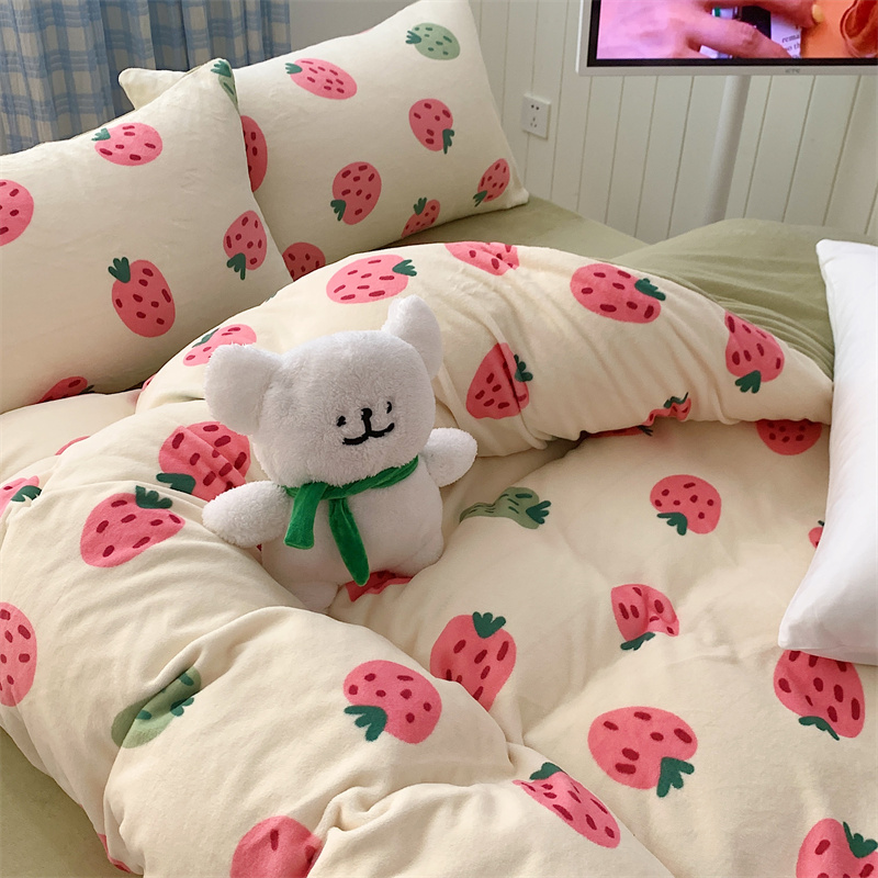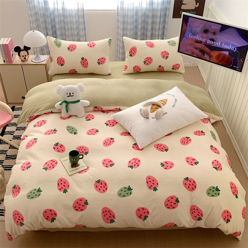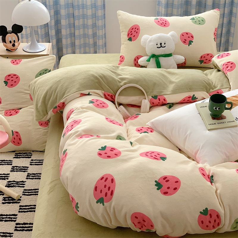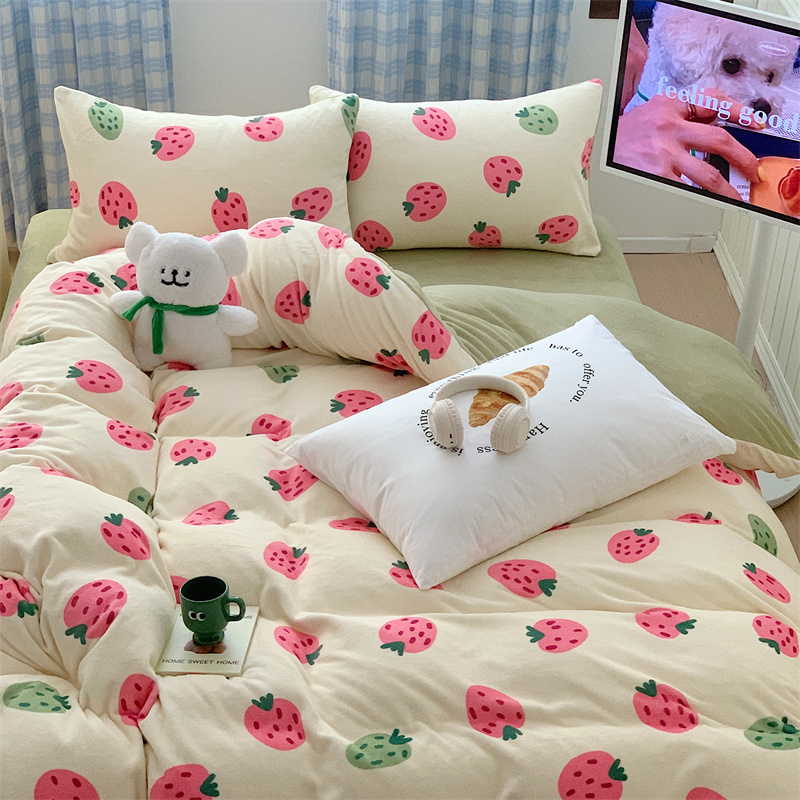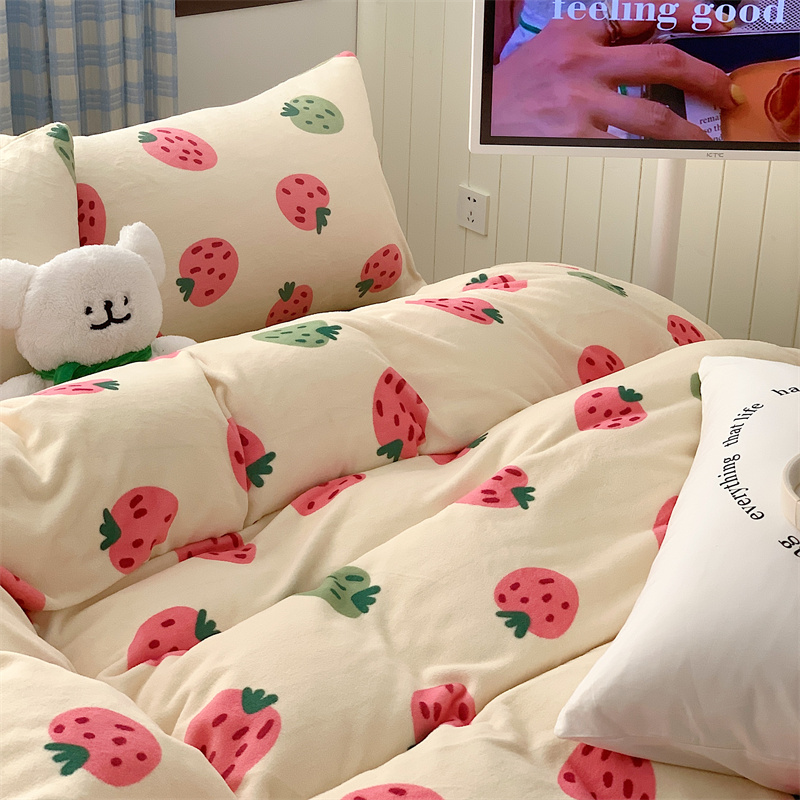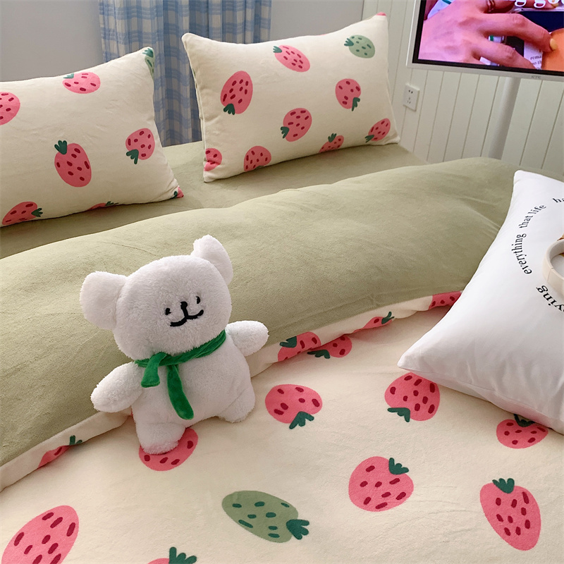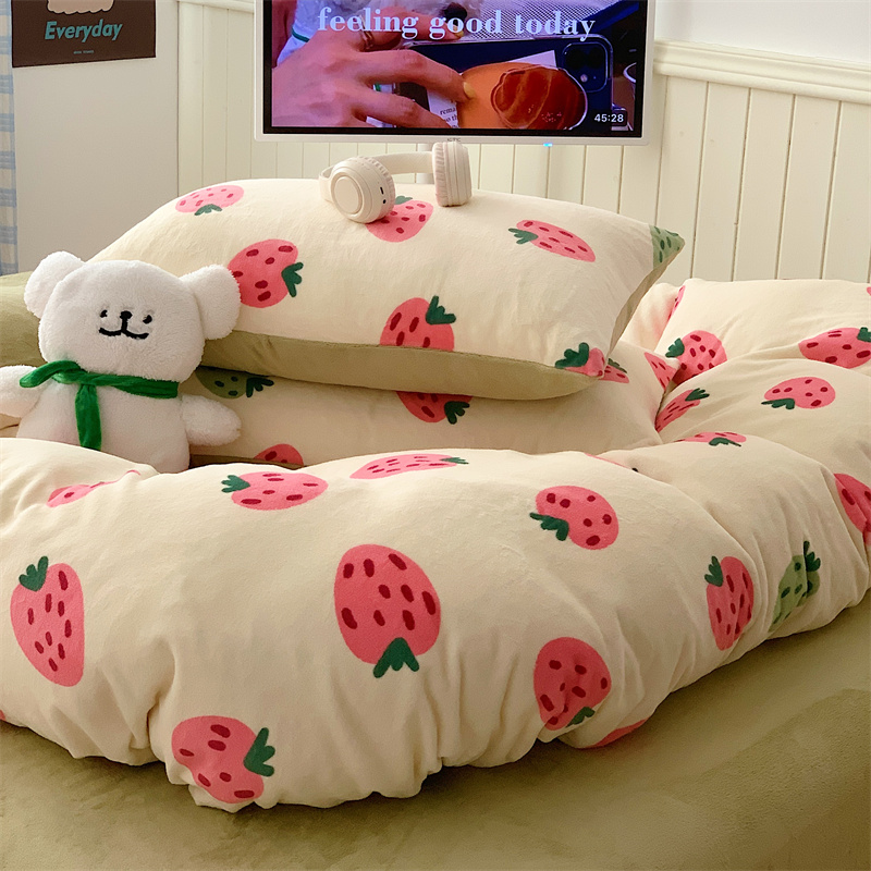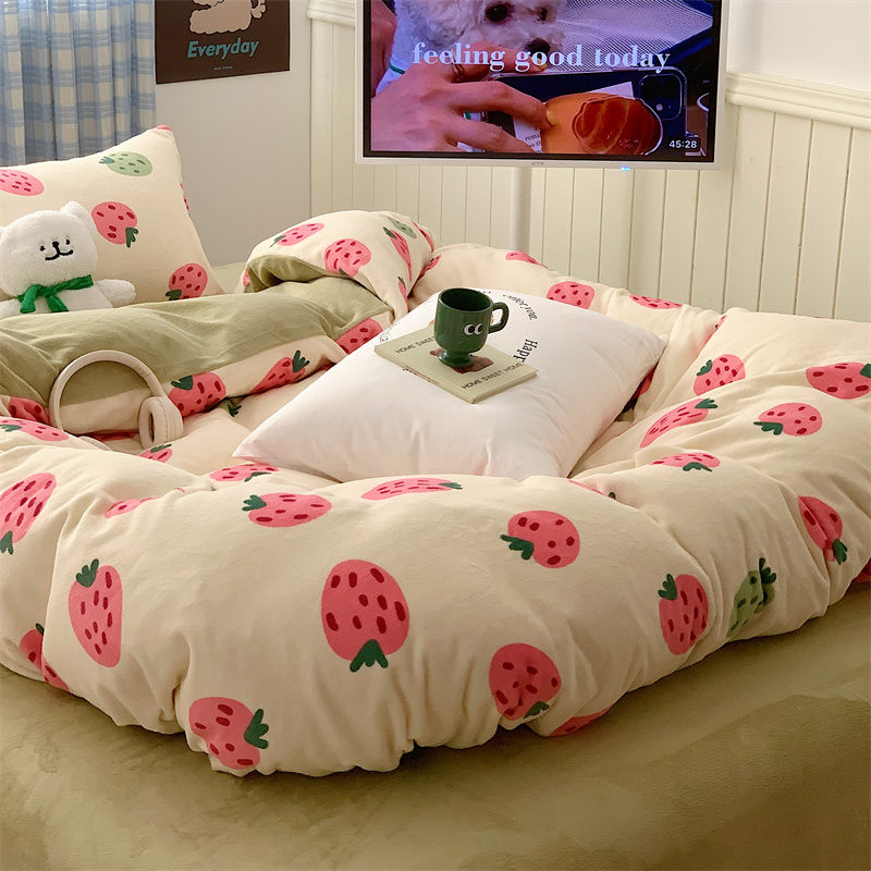 商品名称:星期八 2023新款210g双面牛奶绒印花四件套 小草莓