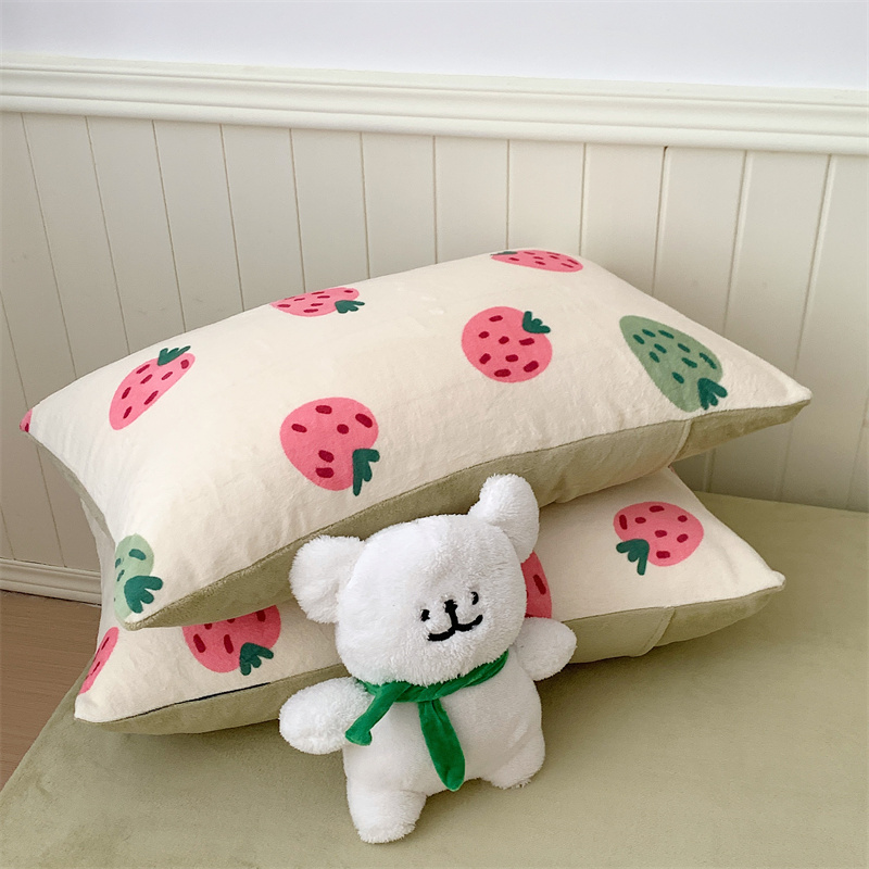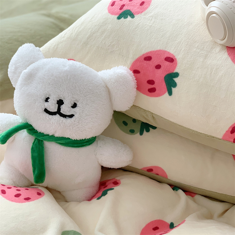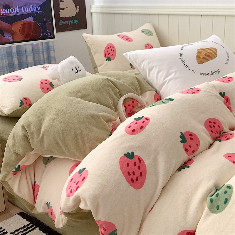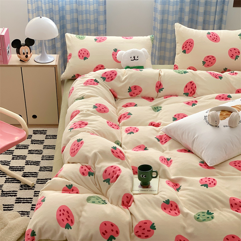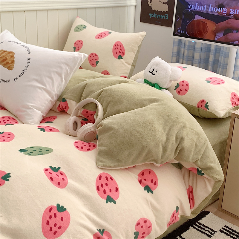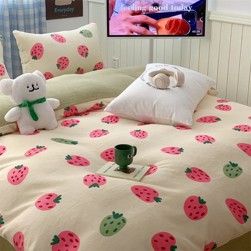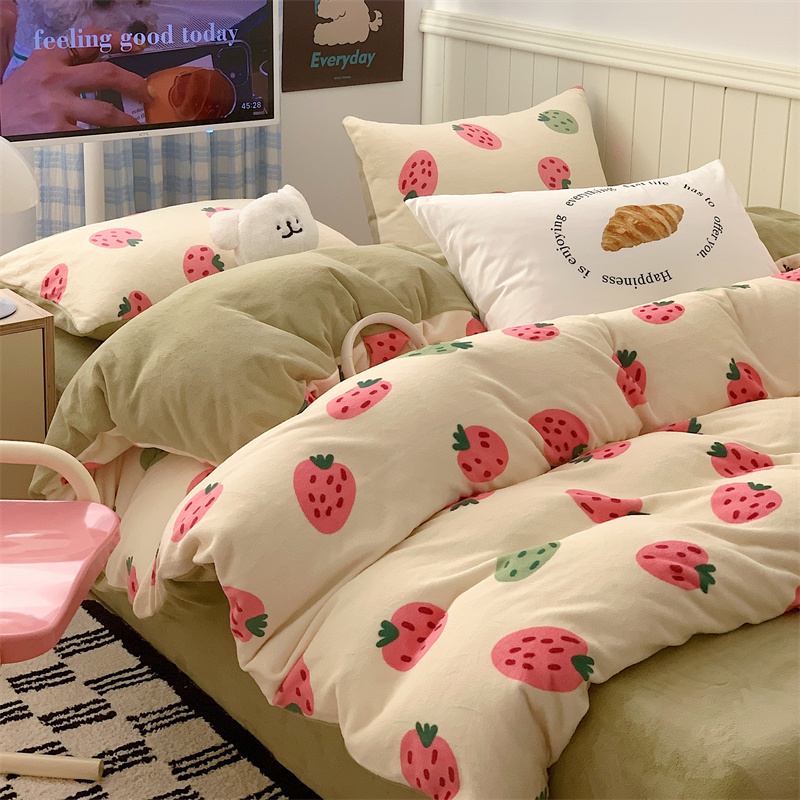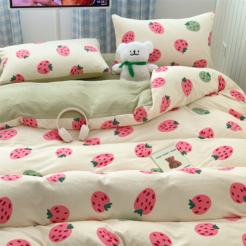 商品名称:星期八 2023新款210g双面牛奶绒印花四件套 小草莓