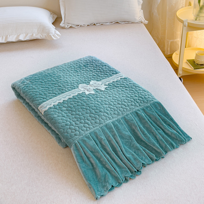 2023直播爆款纯色牛奶绒床盖床裙款蕾丝边素色婴儿绒床盖 蝴蝶结-橄榄绿