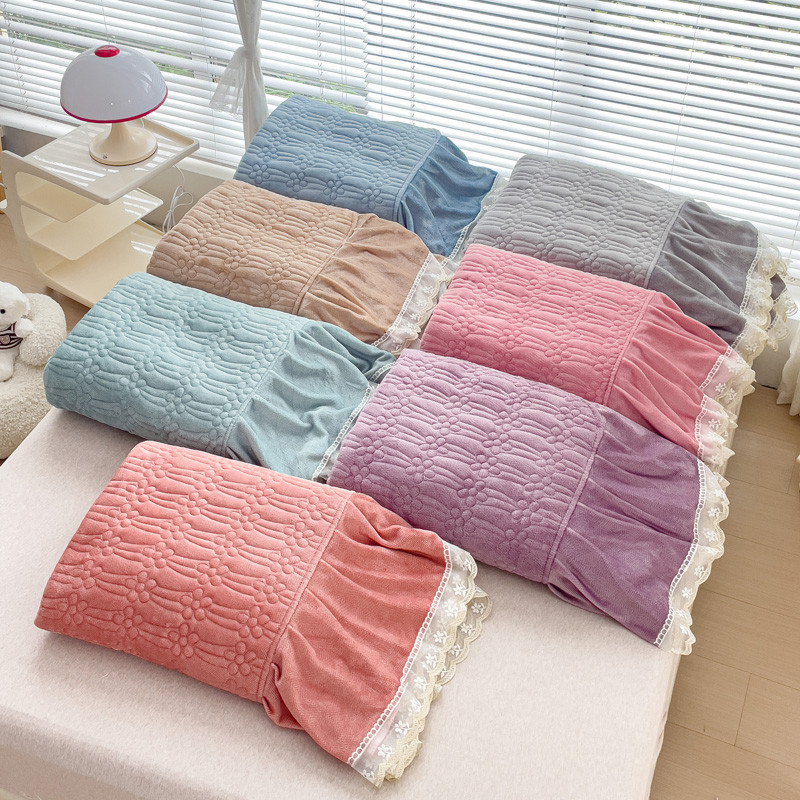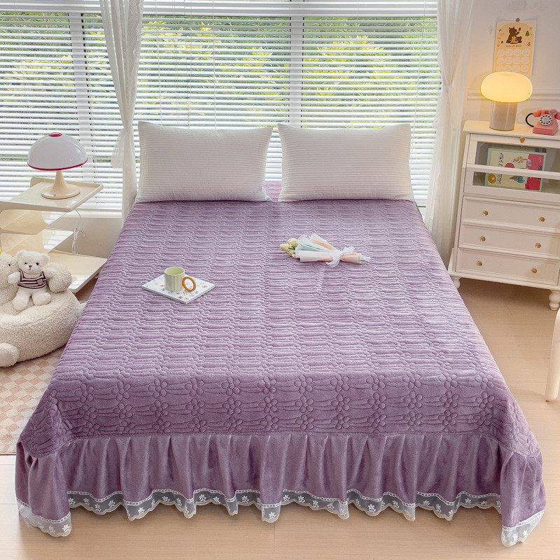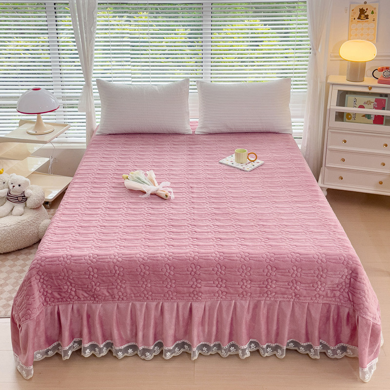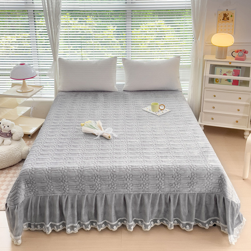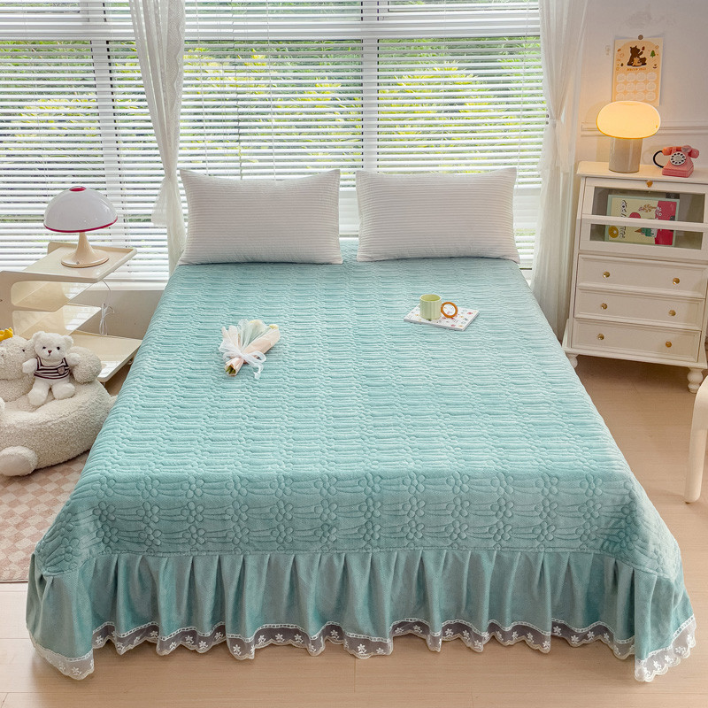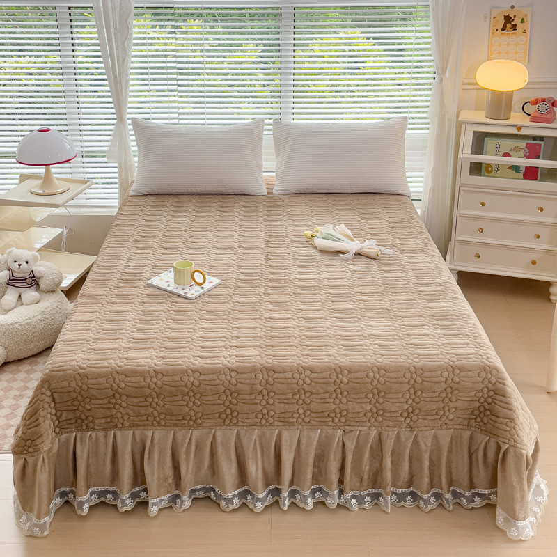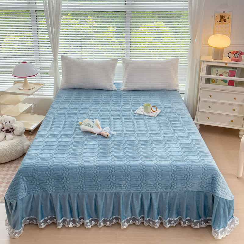 (总)雅眠居 2023直播爆款纯色牛奶绒床裙款床盖肌理纹夹棉床单