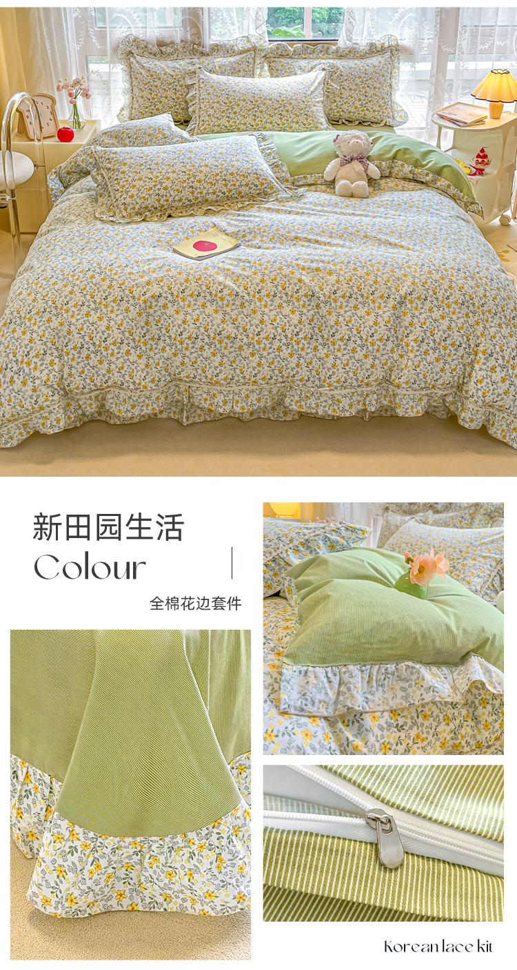 (总)艾唯希家纺 2025新款全棉双层花边四件套纯棉小碎花10个花型-花边系列,春意萌,恋之晴空,奶芙蓉-绿,奶芙蓉-粉,林间物语-绿,林间物语-紫,花冉,花艺漫漫,梳璃,雾里花